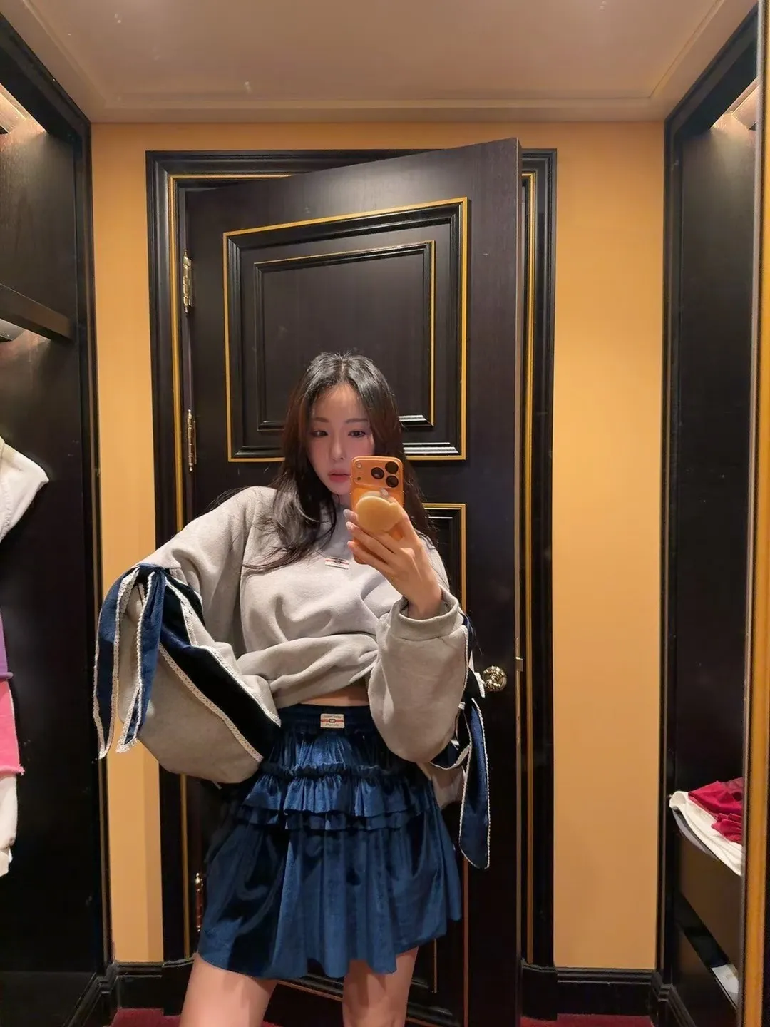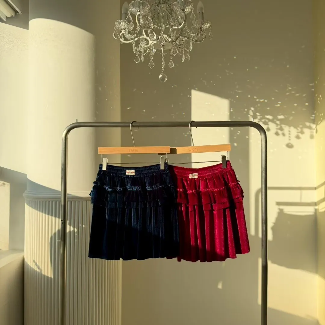 天鵝絨褶皺短褲裙