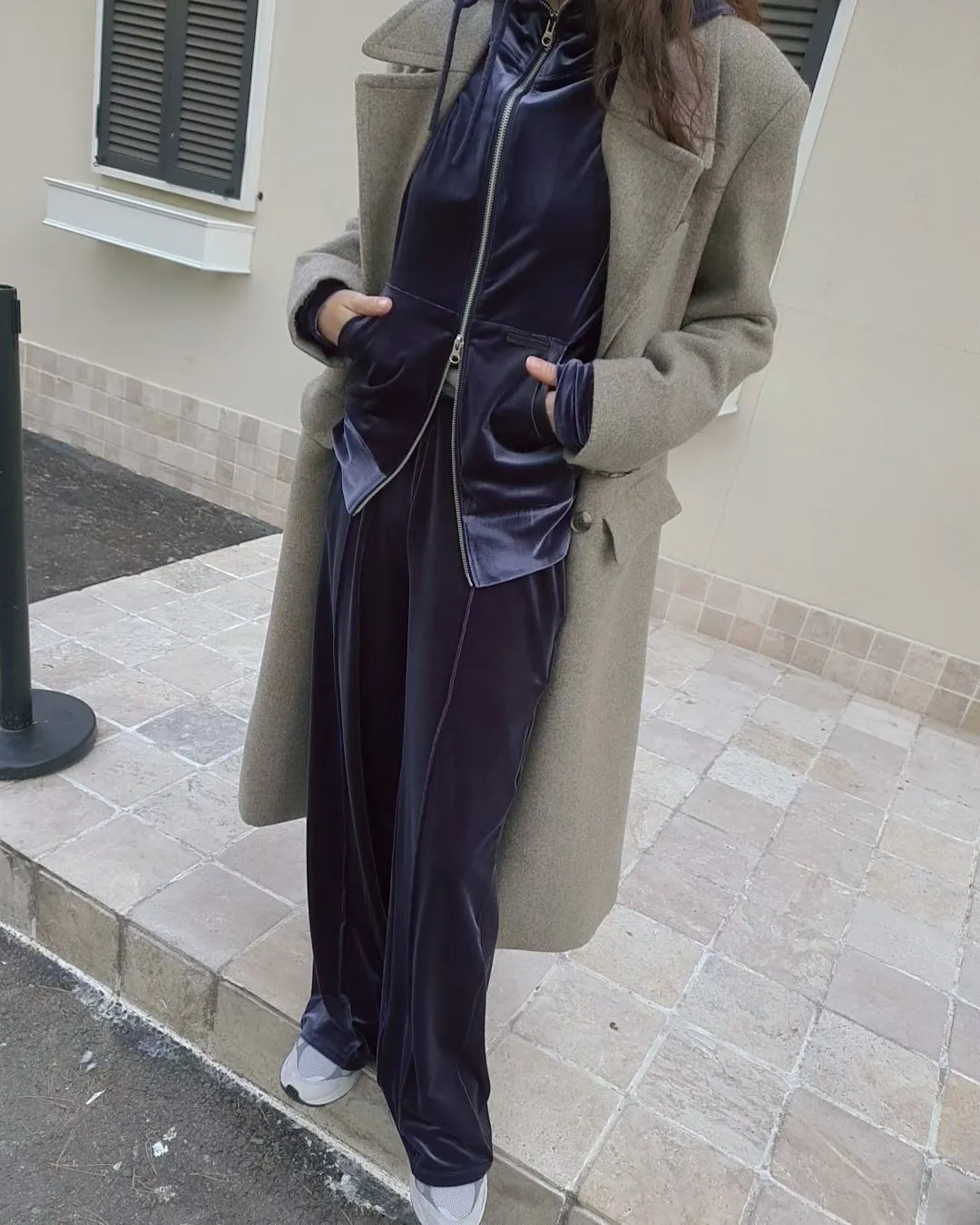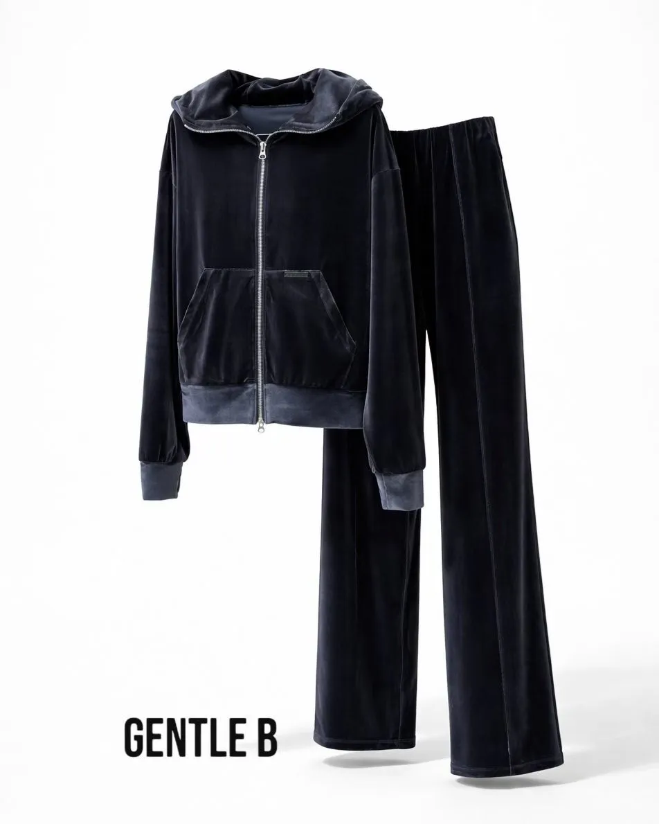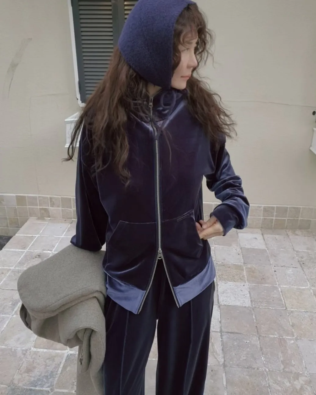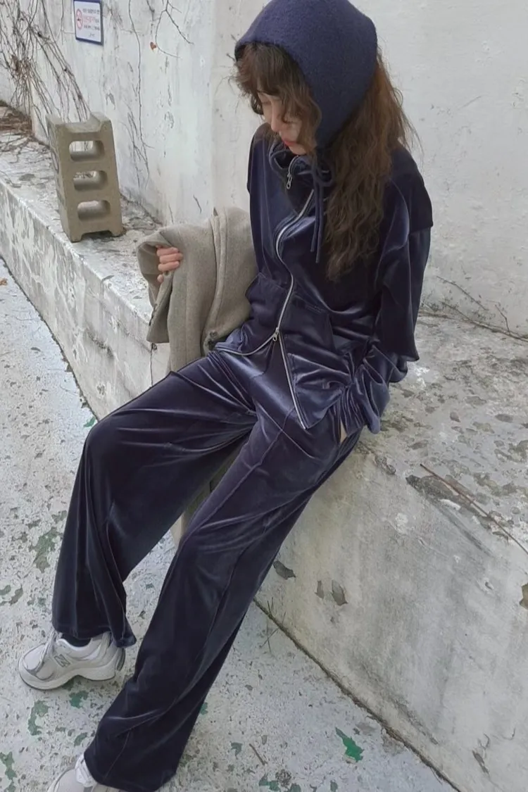 奢柔天鵝絨連帽雙拉鏈連帽外套套裝
