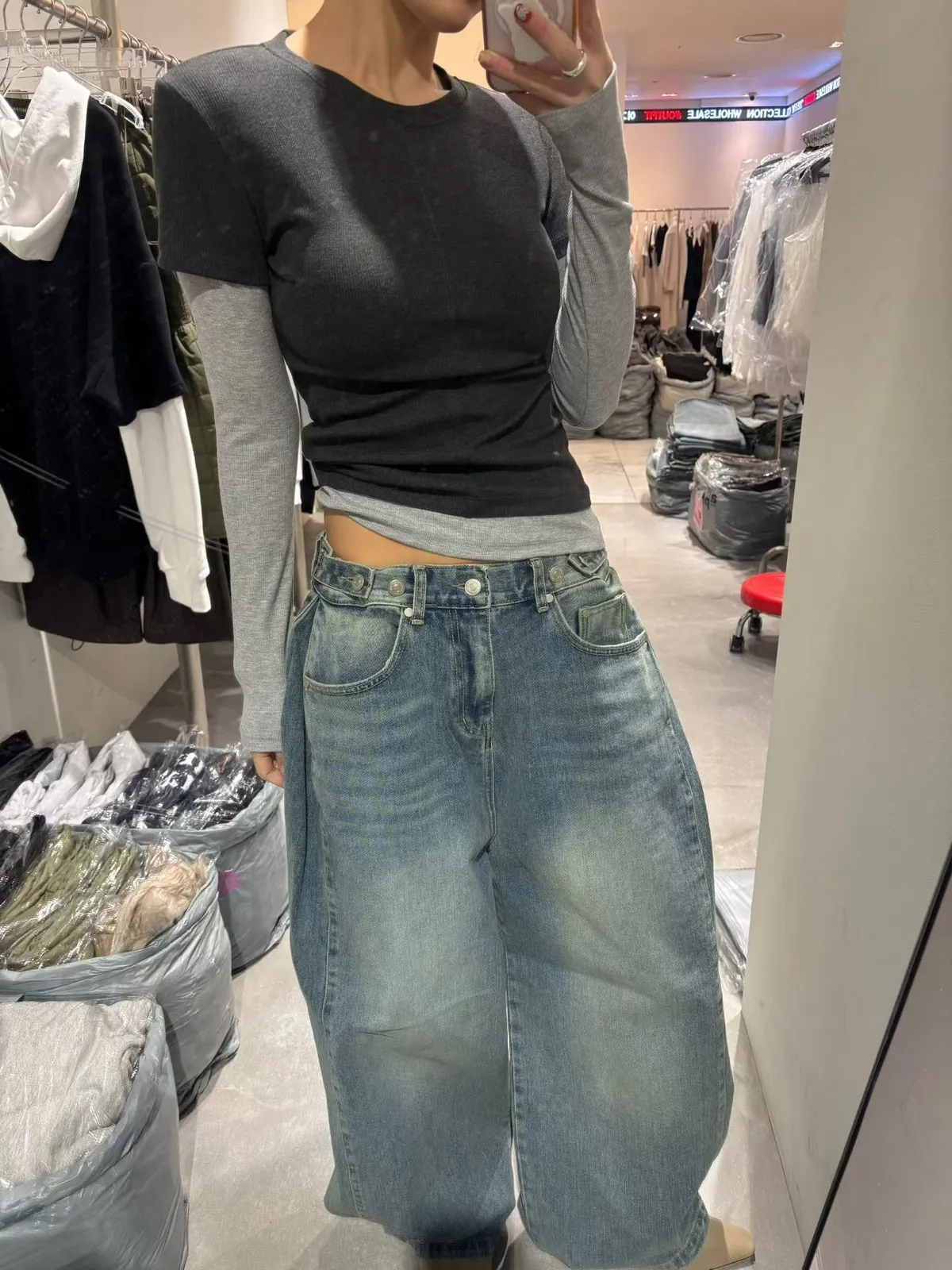拼色假兩件上衣