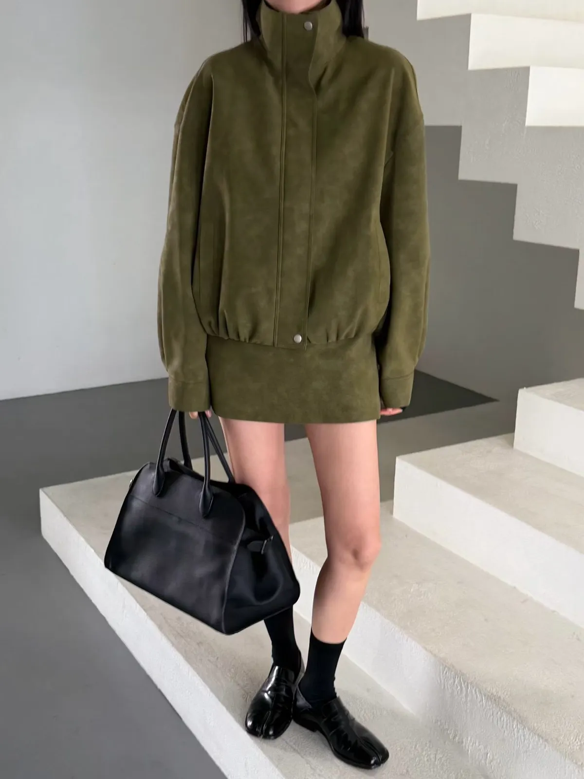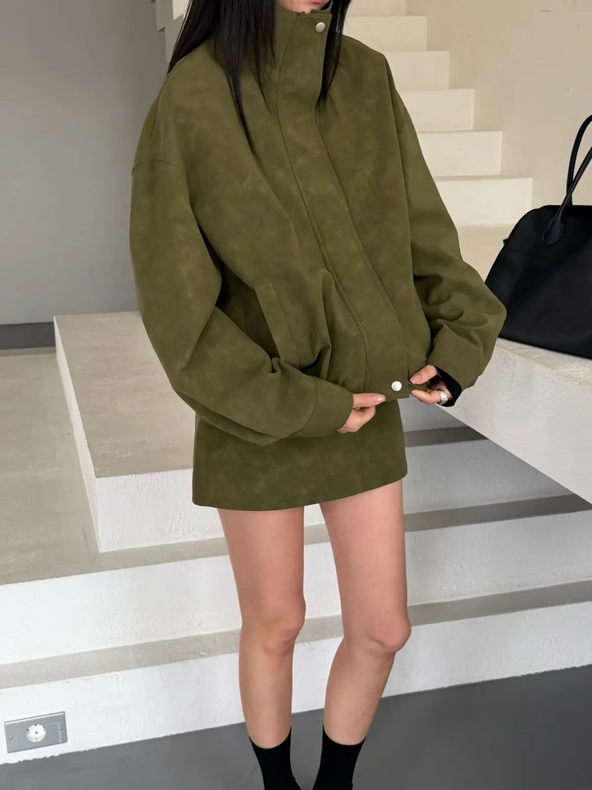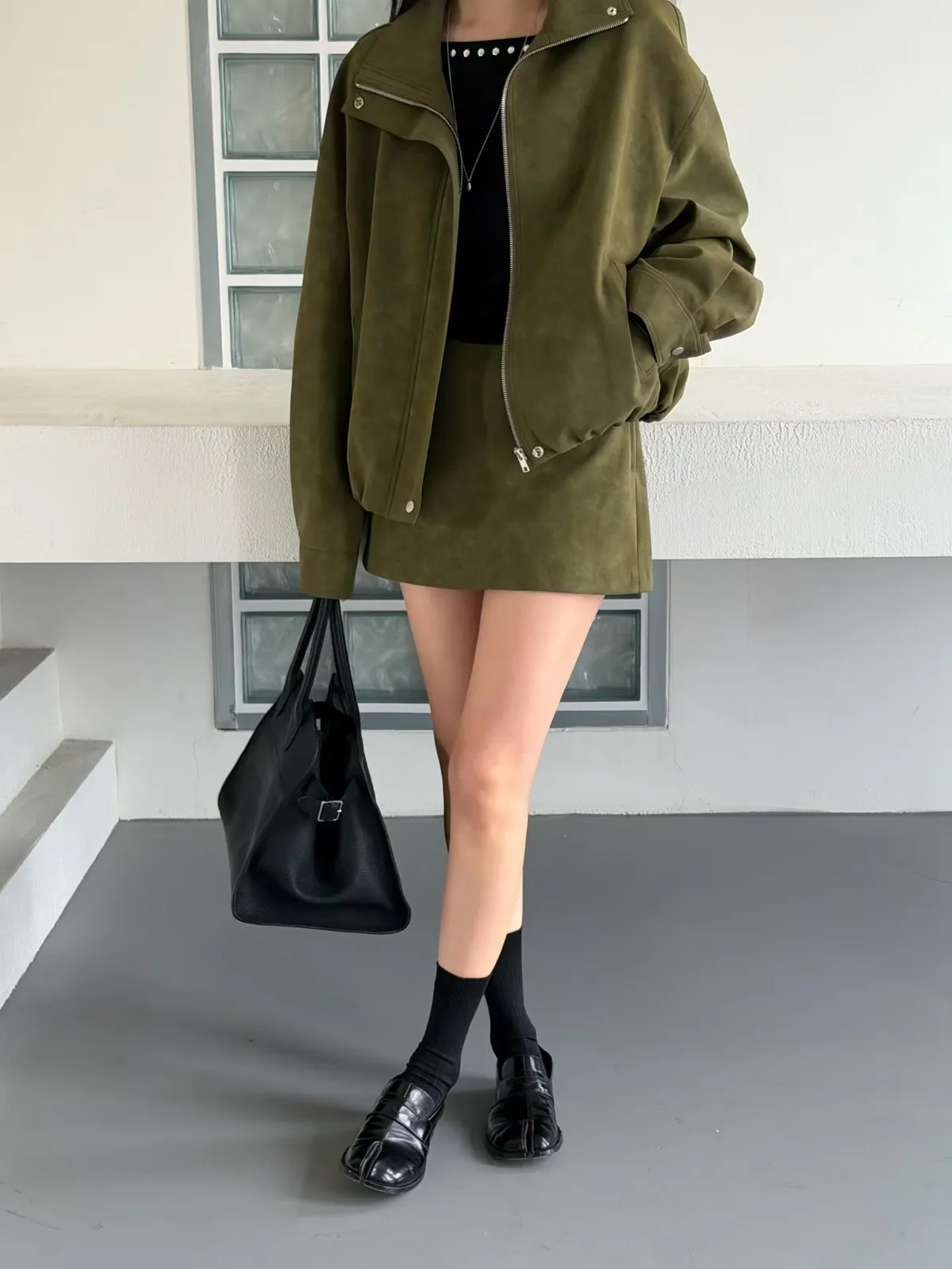 Pu合成皮外套短褲裙套裝