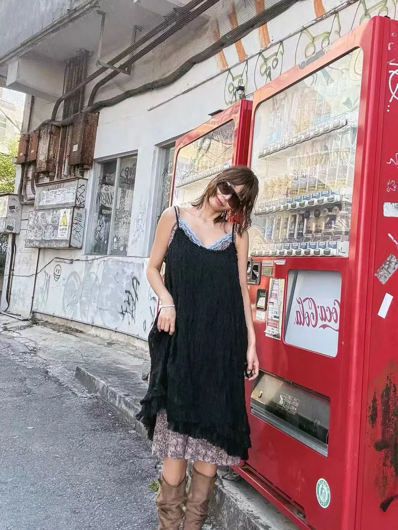 花邊細肩花紋長洋裝