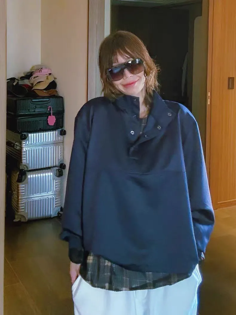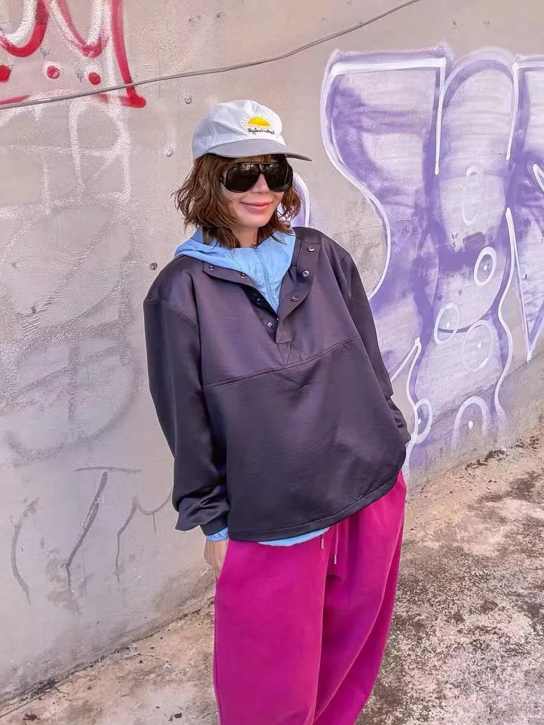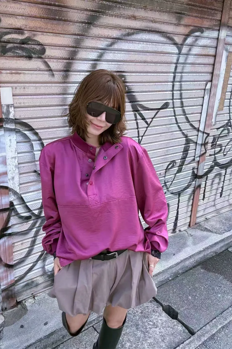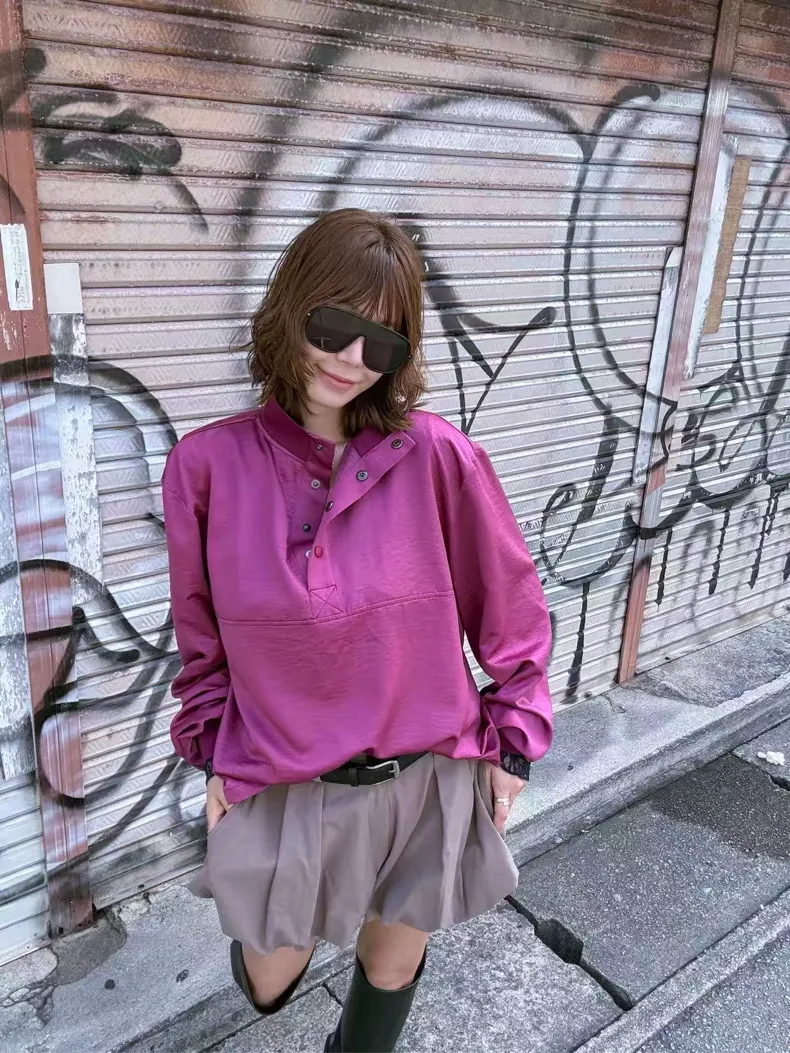 領鈕扣半開襟上衣