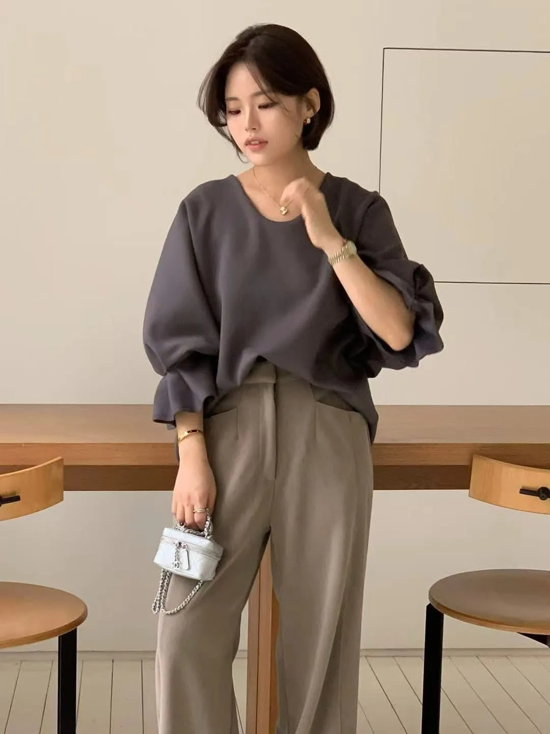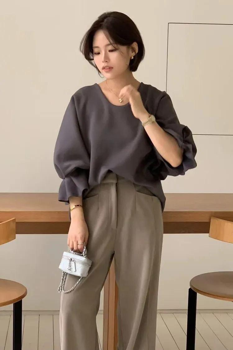 縮袖圓領上衣