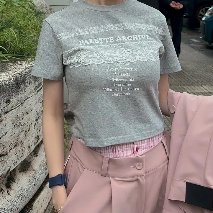蕾絲彈力露臍上衣
