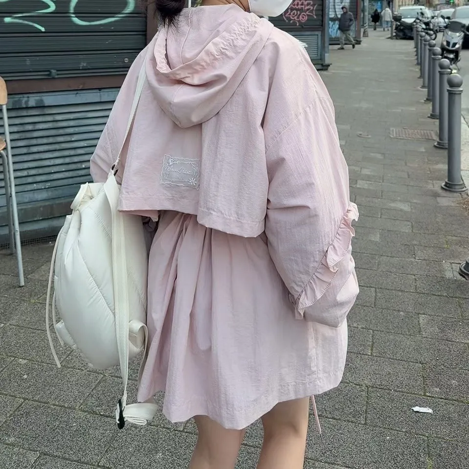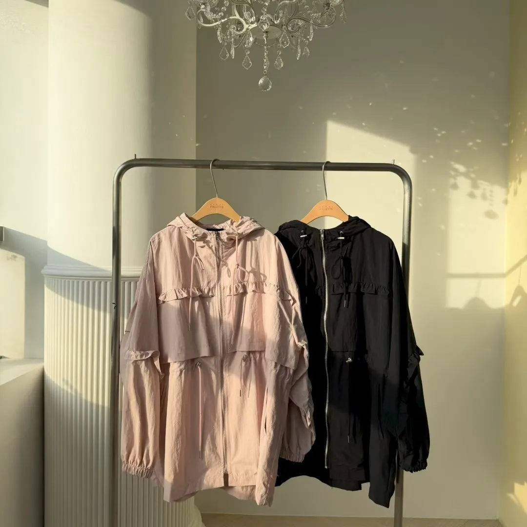 尼龍連帽荷葉邊夾克