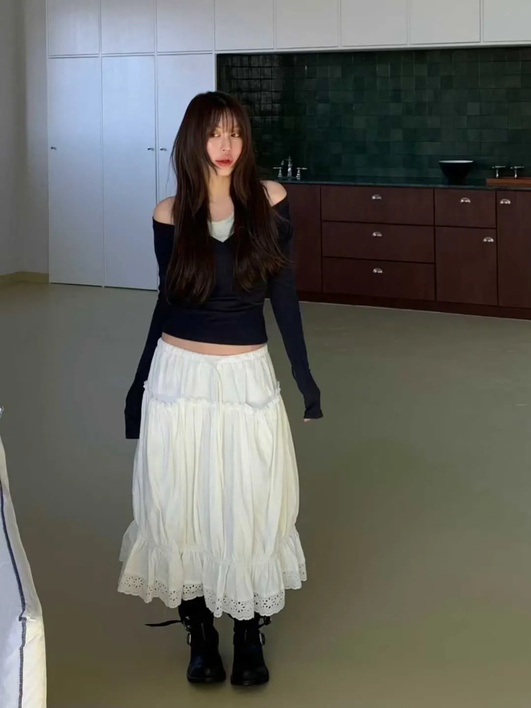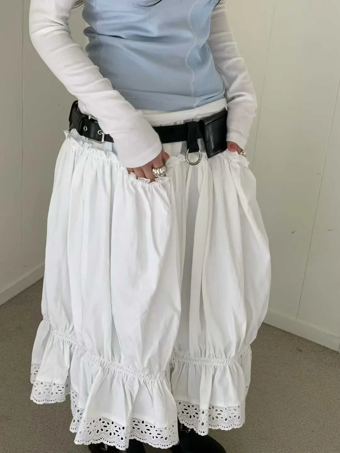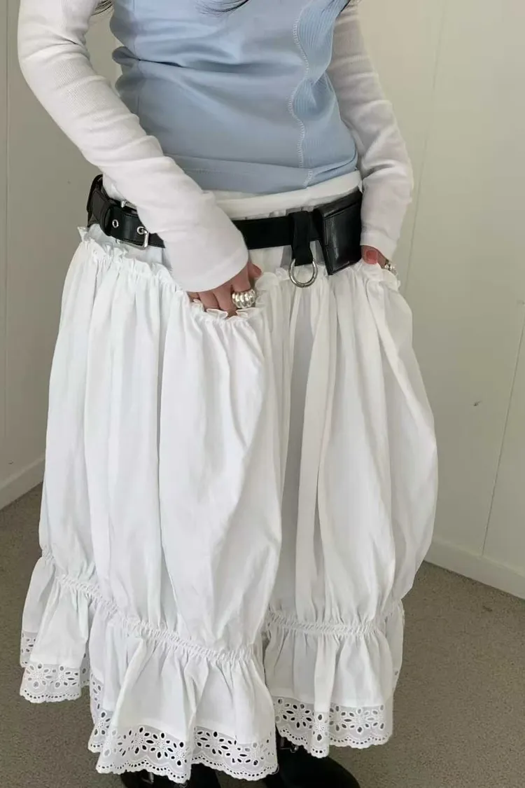 鬆緊蕾絲花邊長裙