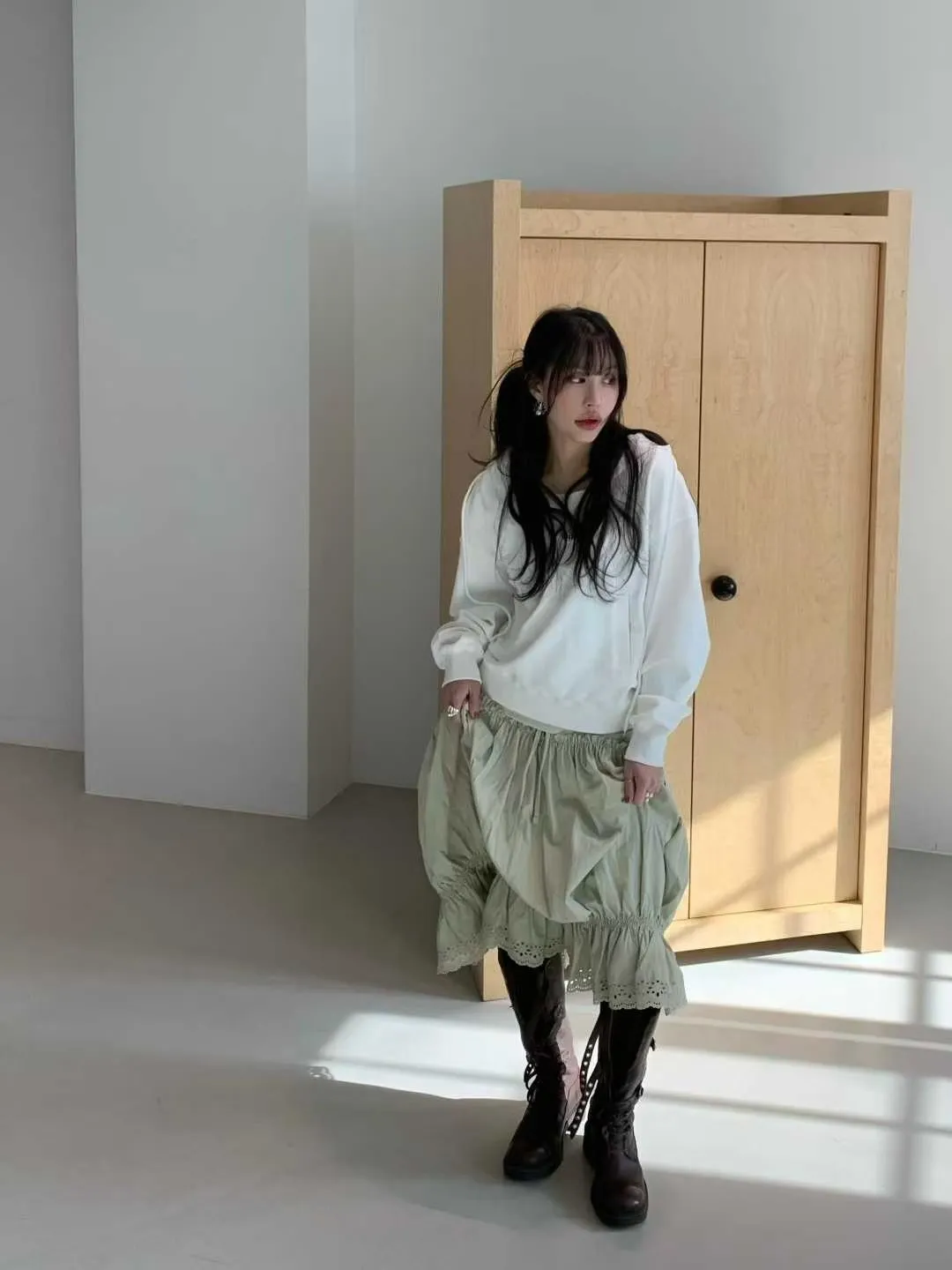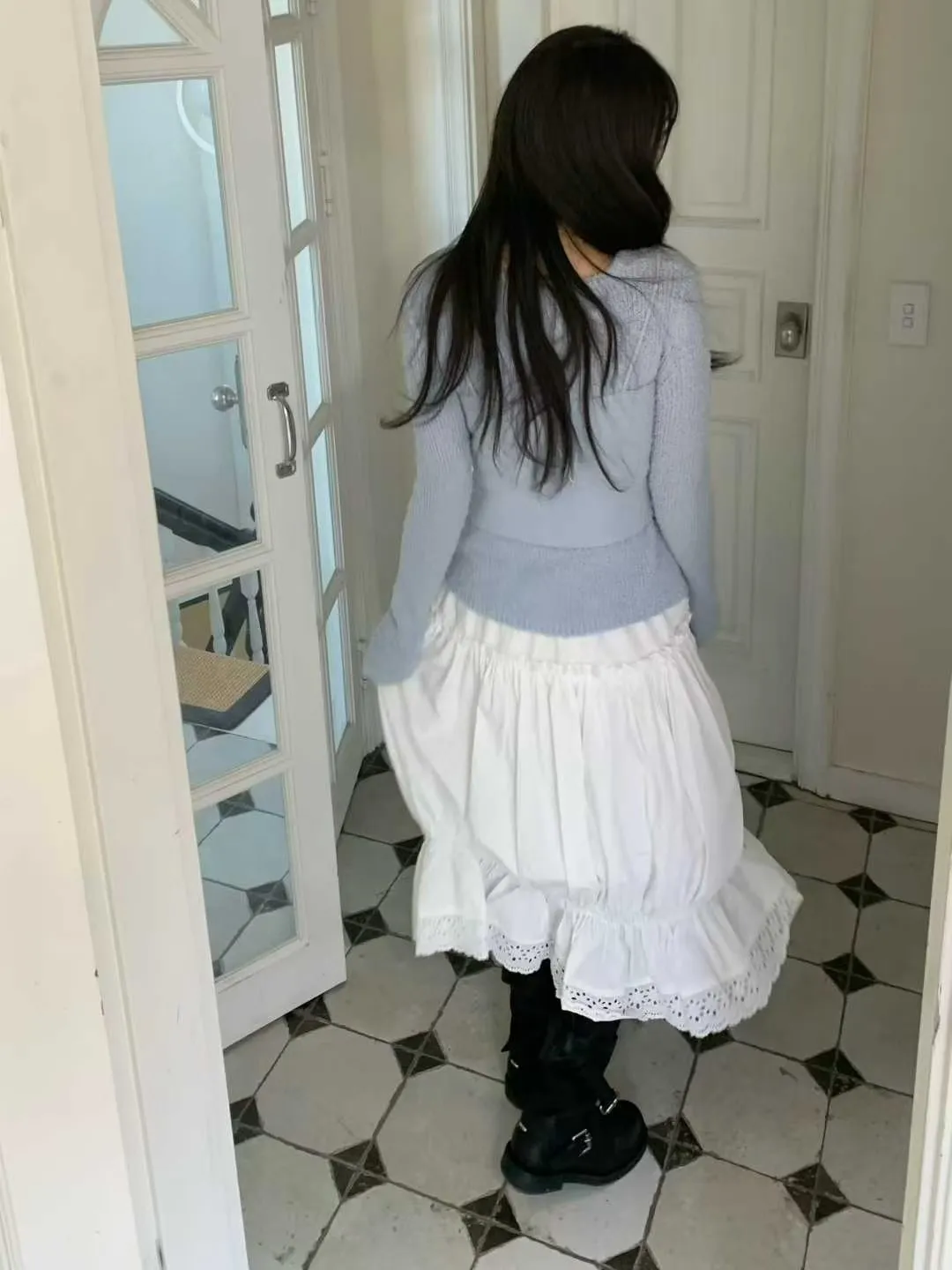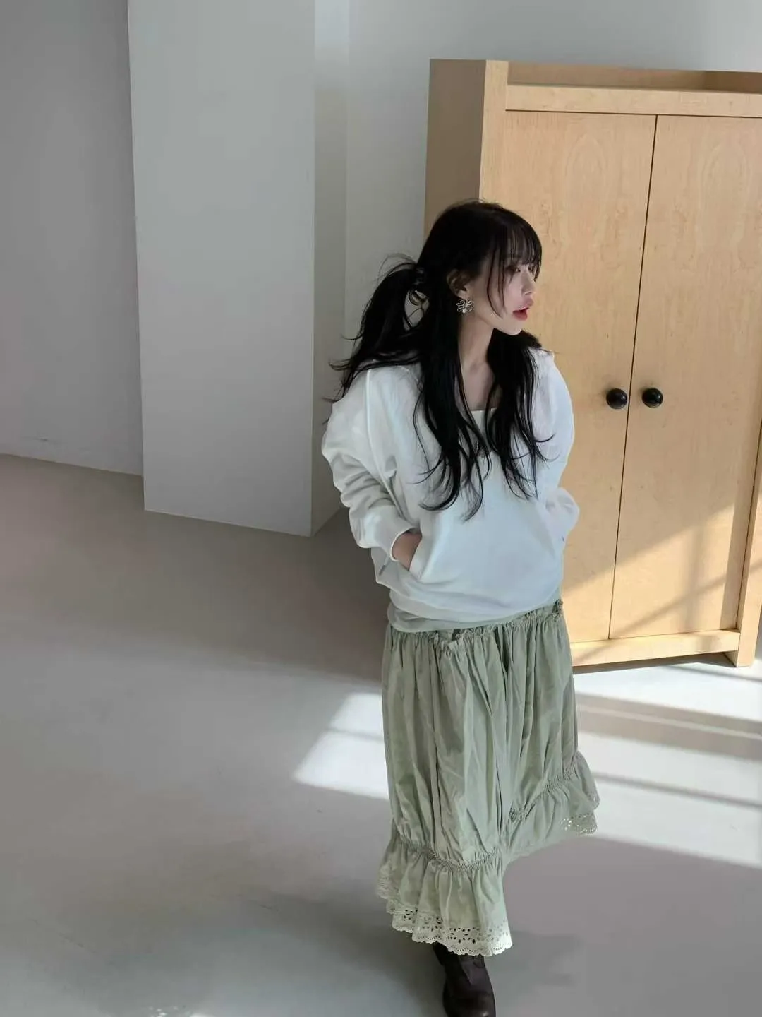 鬆緊蕾絲花邊長裙