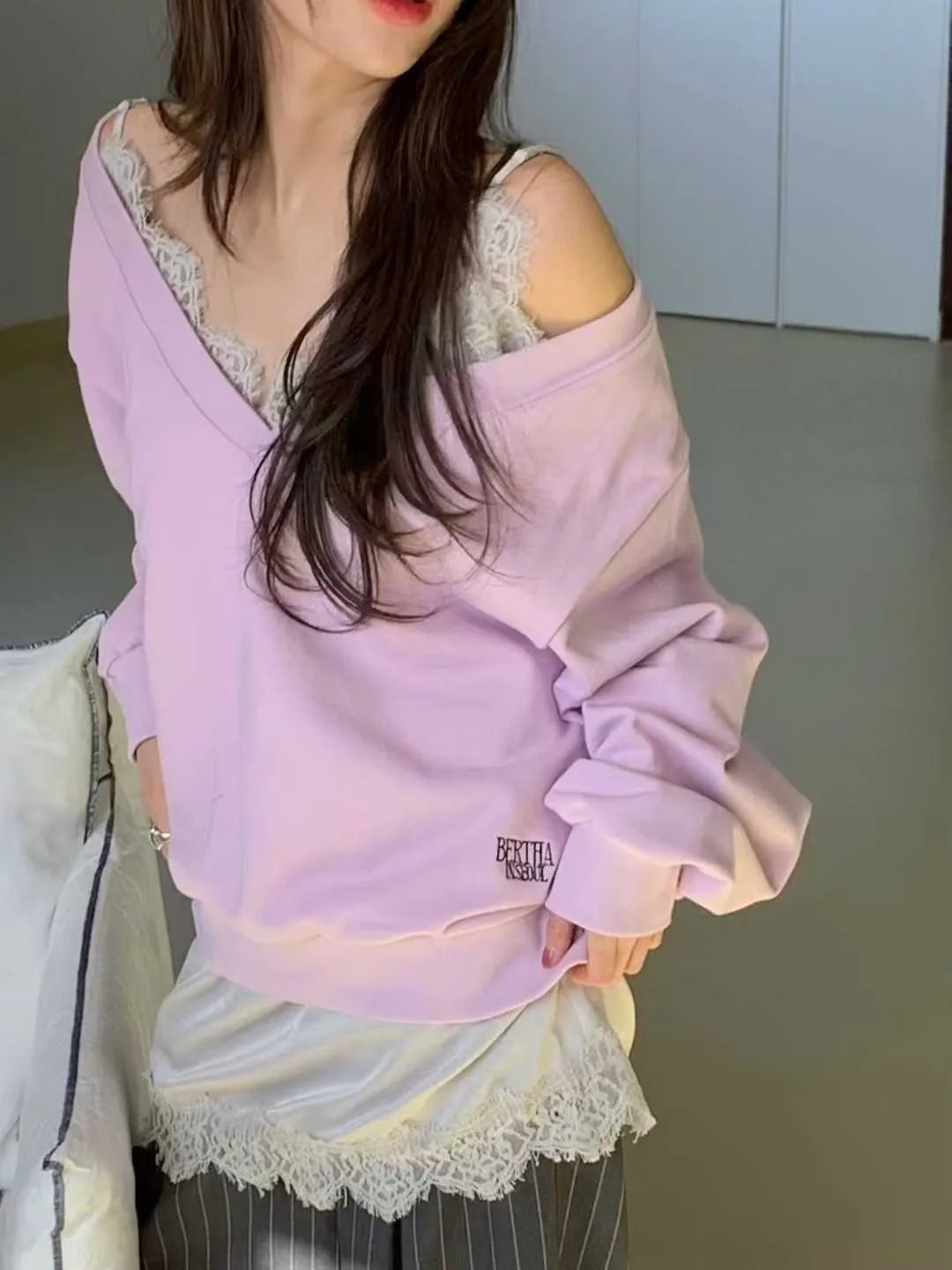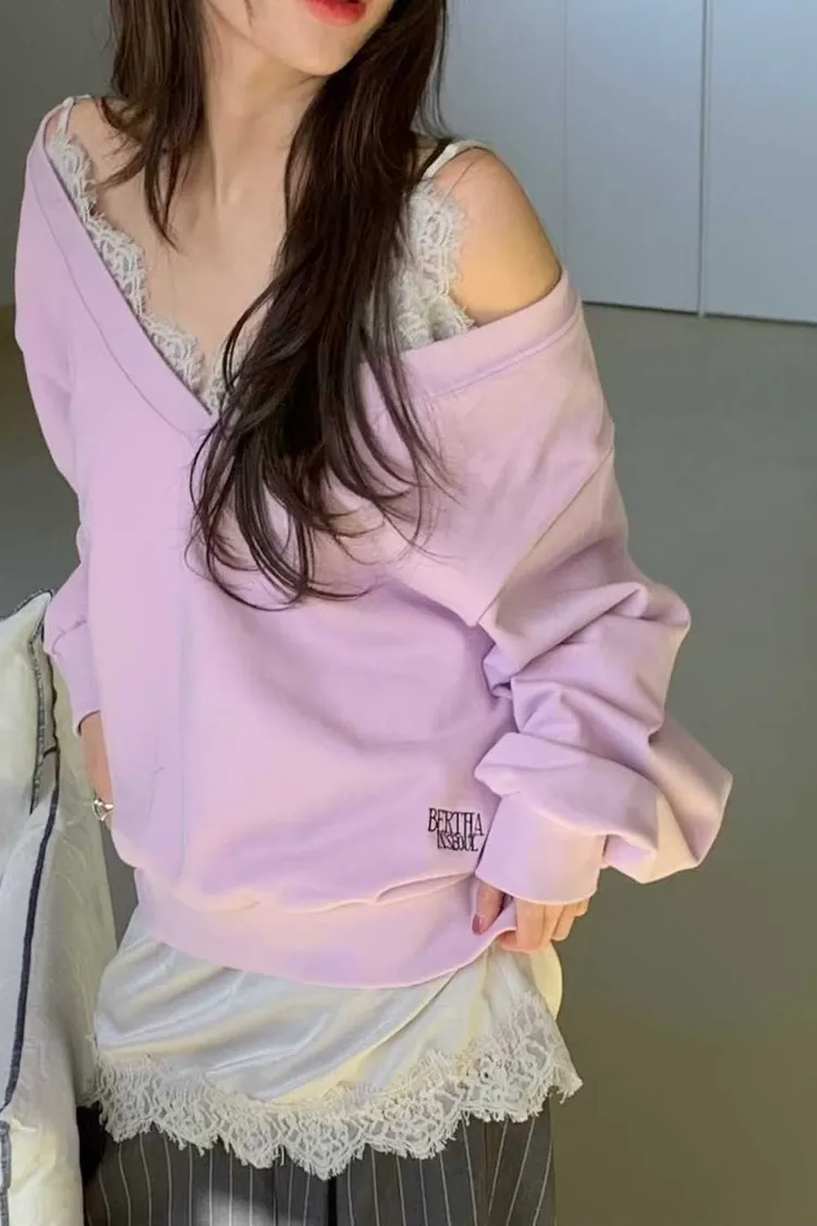 V領刺繡英字衛衣
