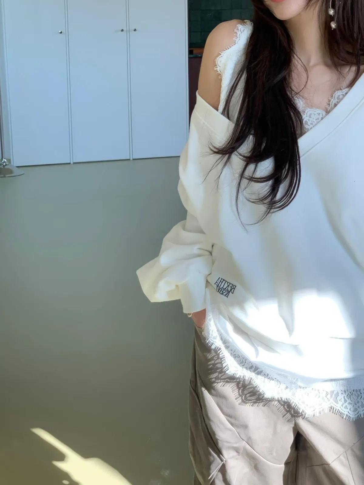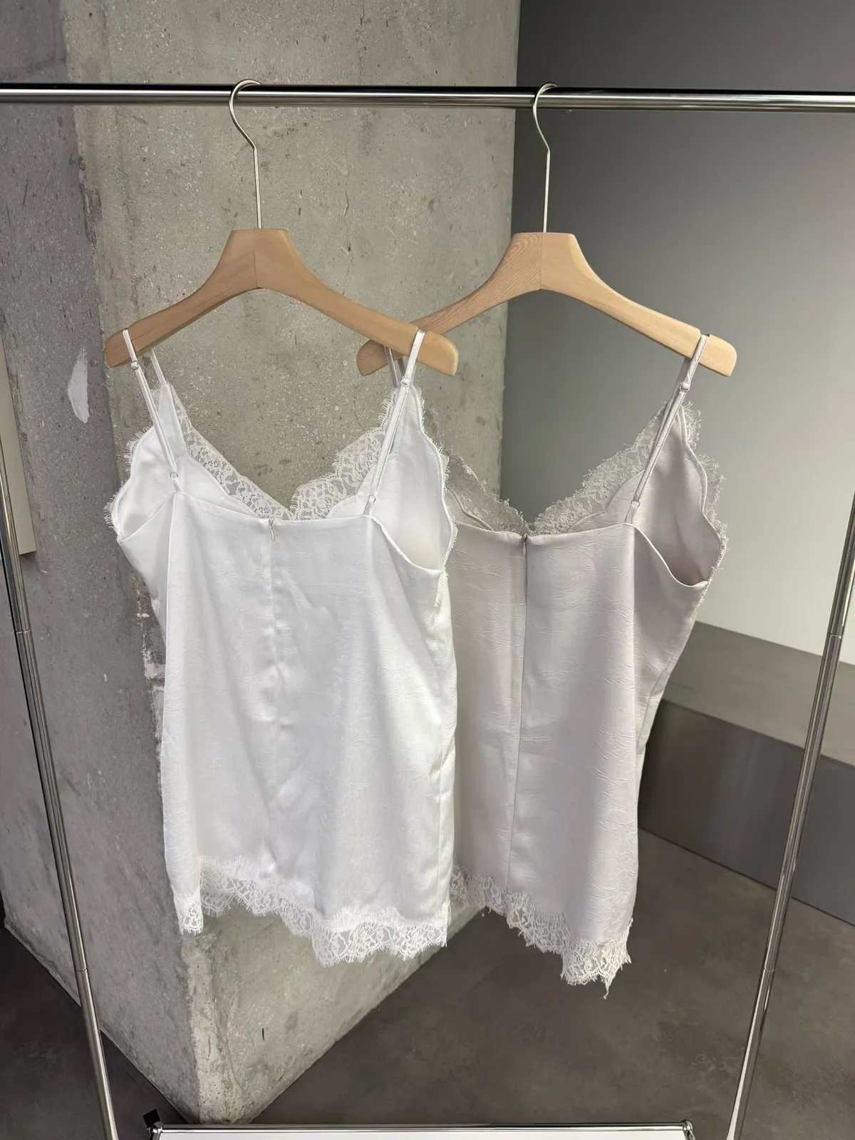細肩緞面蕾絲滾邊背心