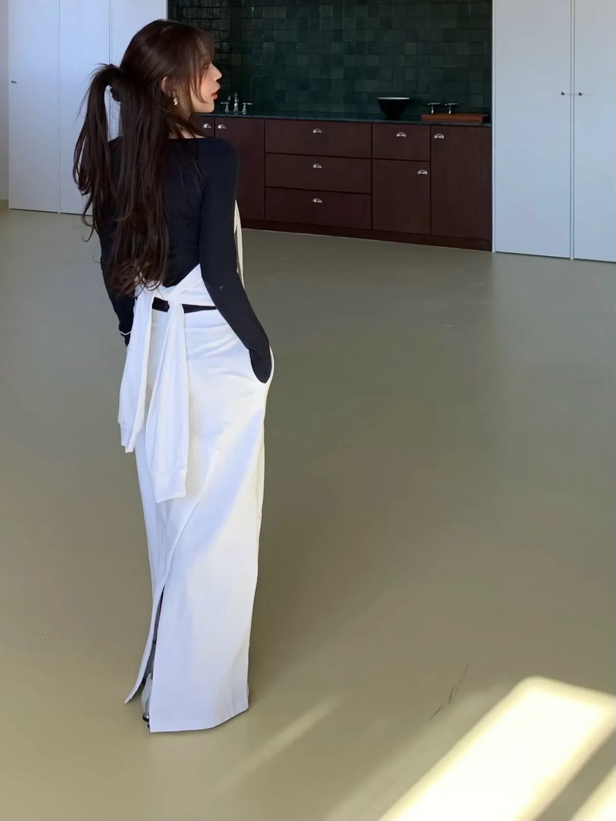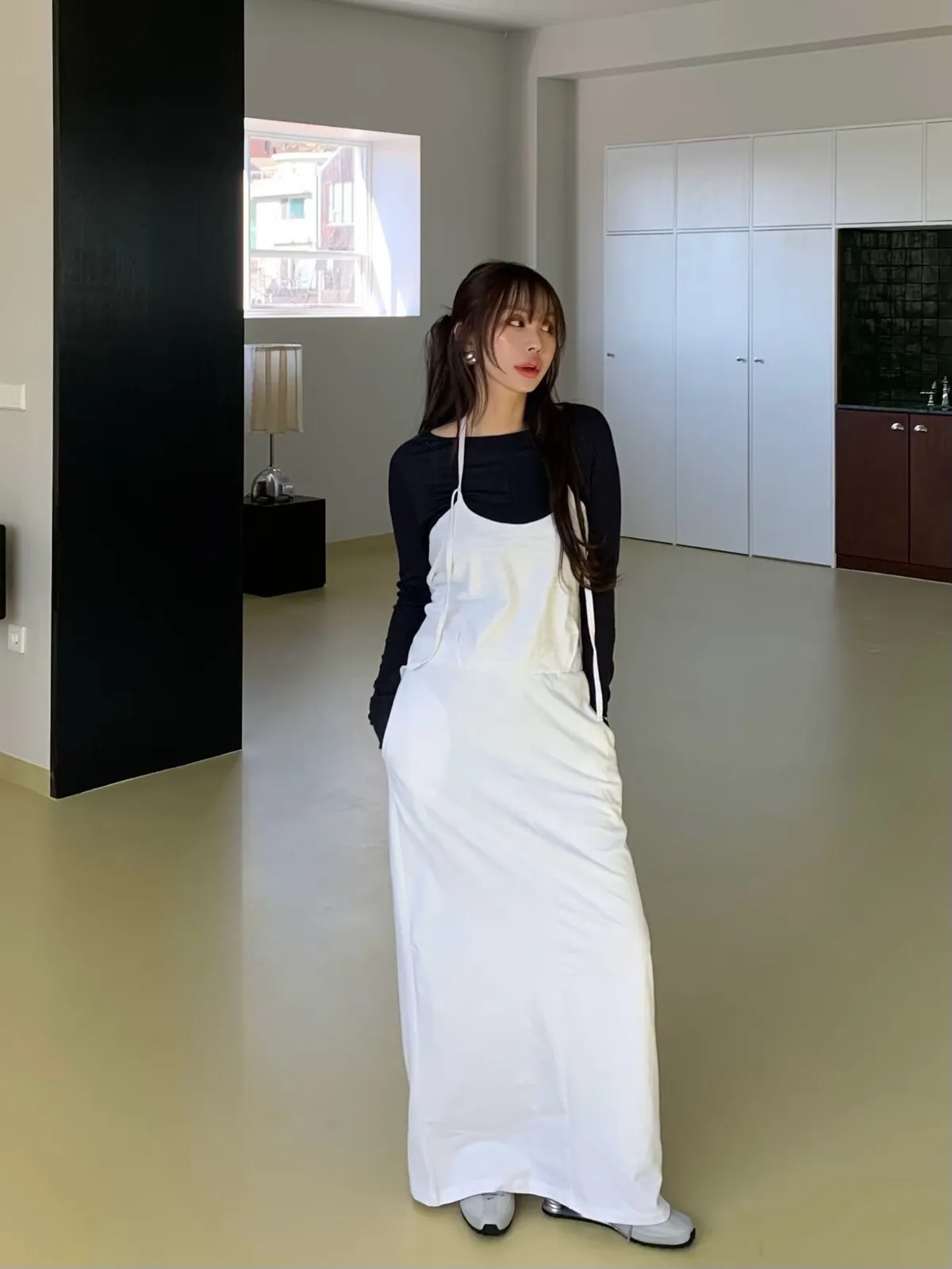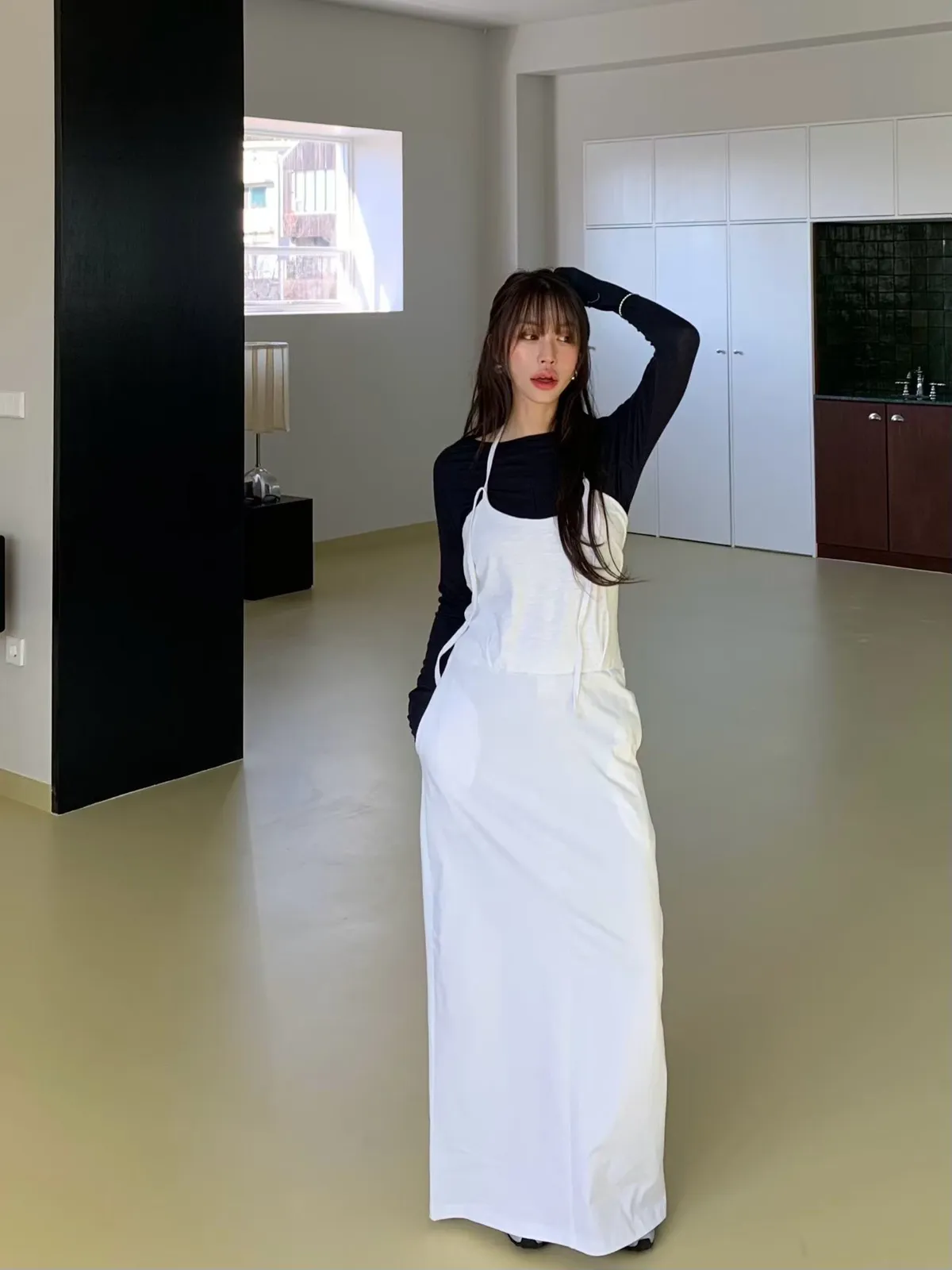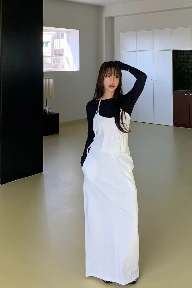 繞脖綁帶長洋裝