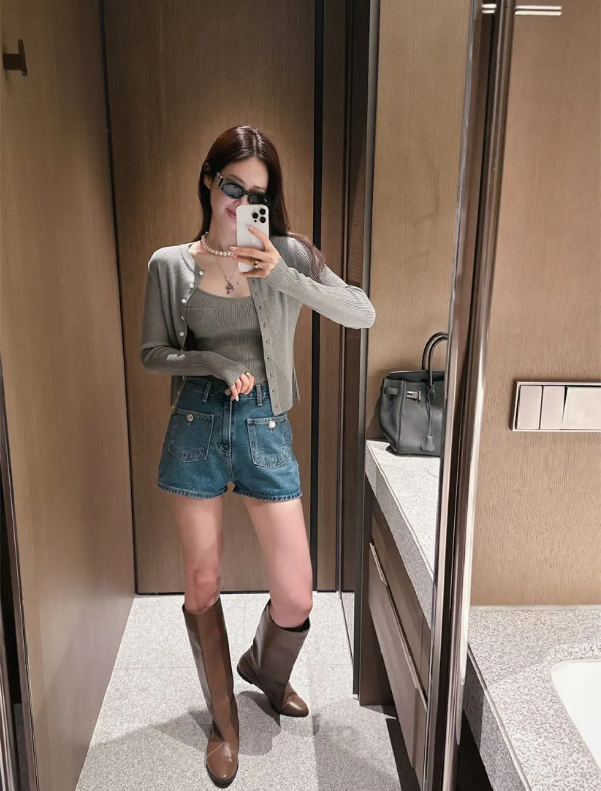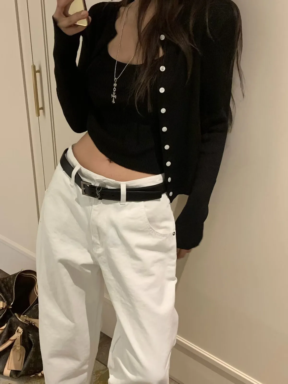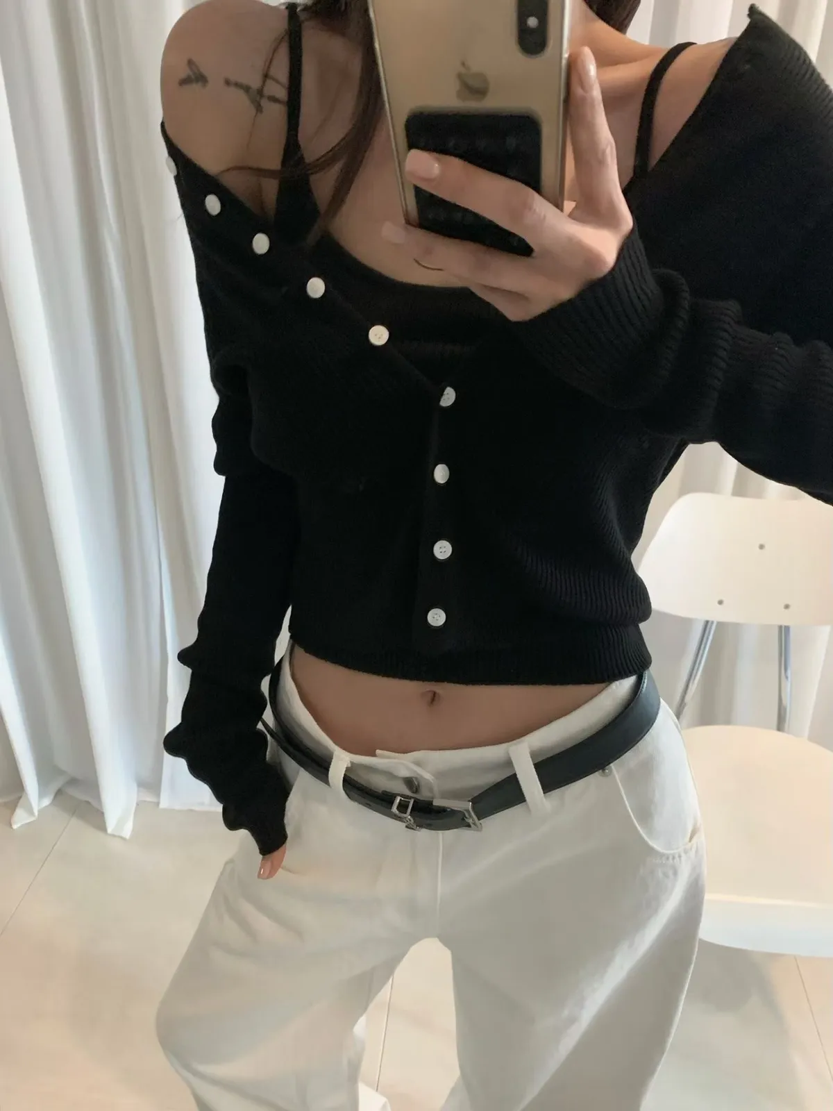 針織細肩背心+排釦外套