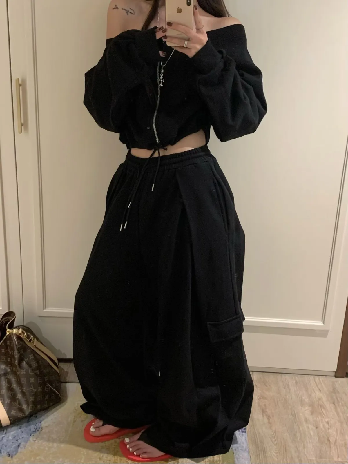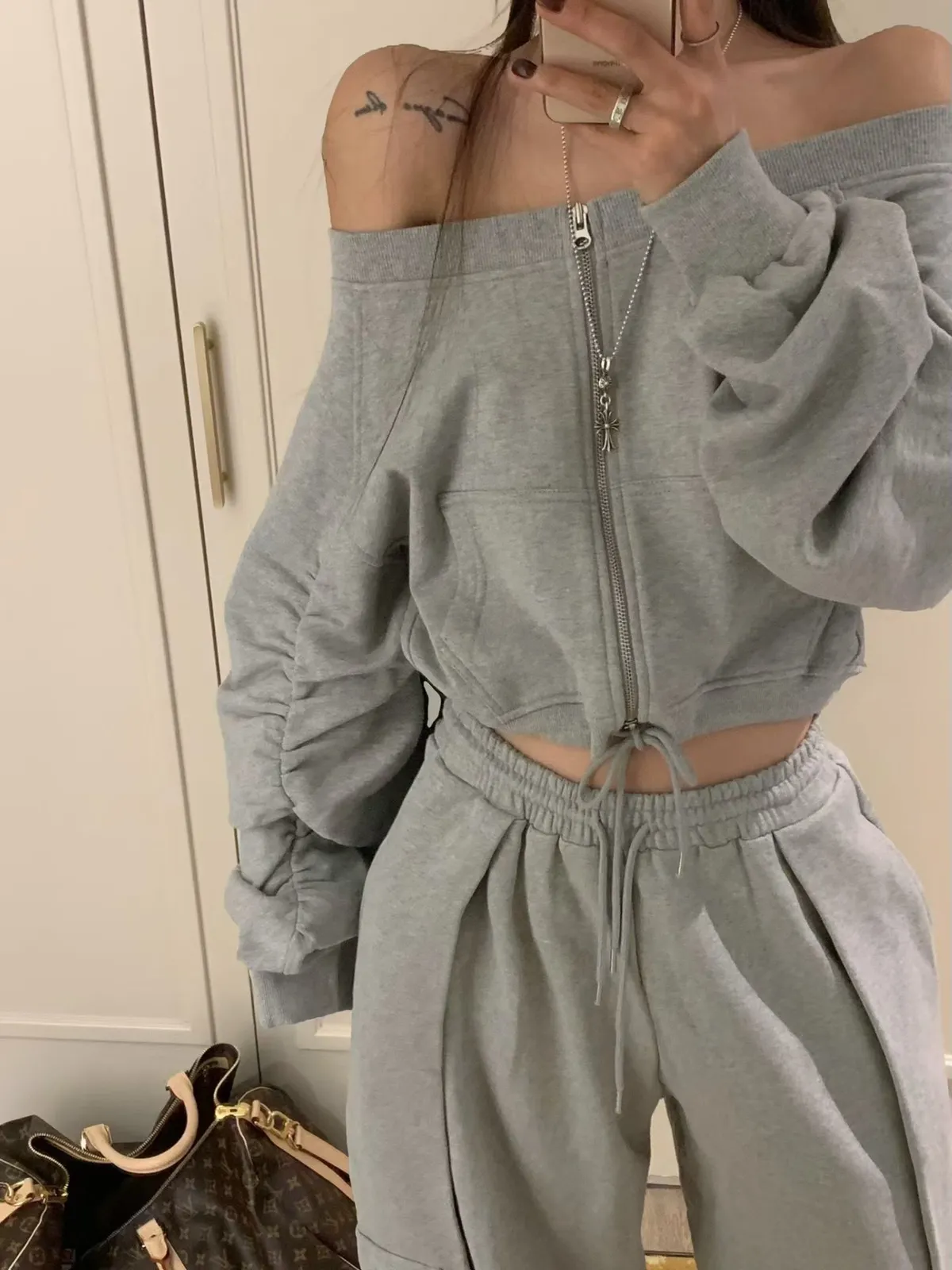 雙拉鏈袖皺皺外套套裝