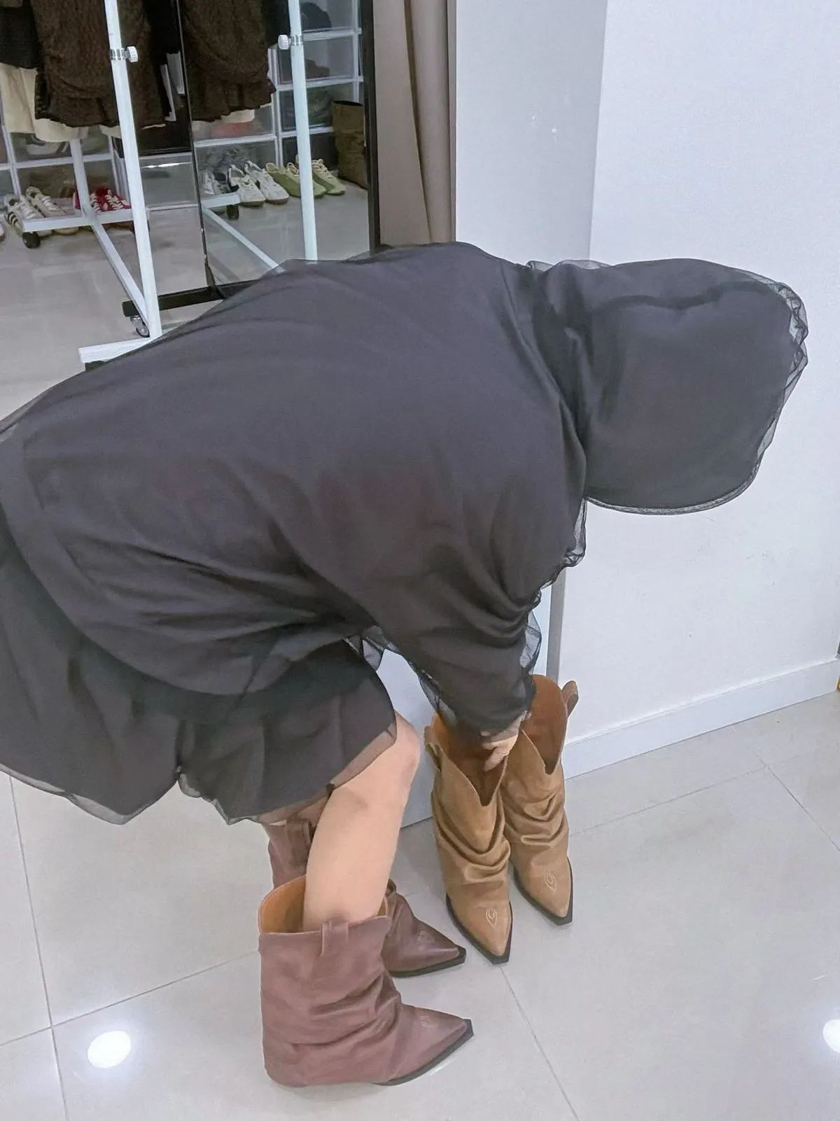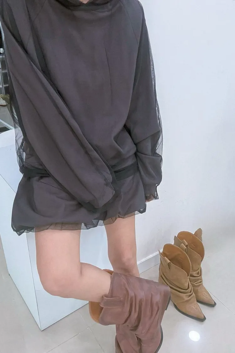 鬆緊網紗層次短裙