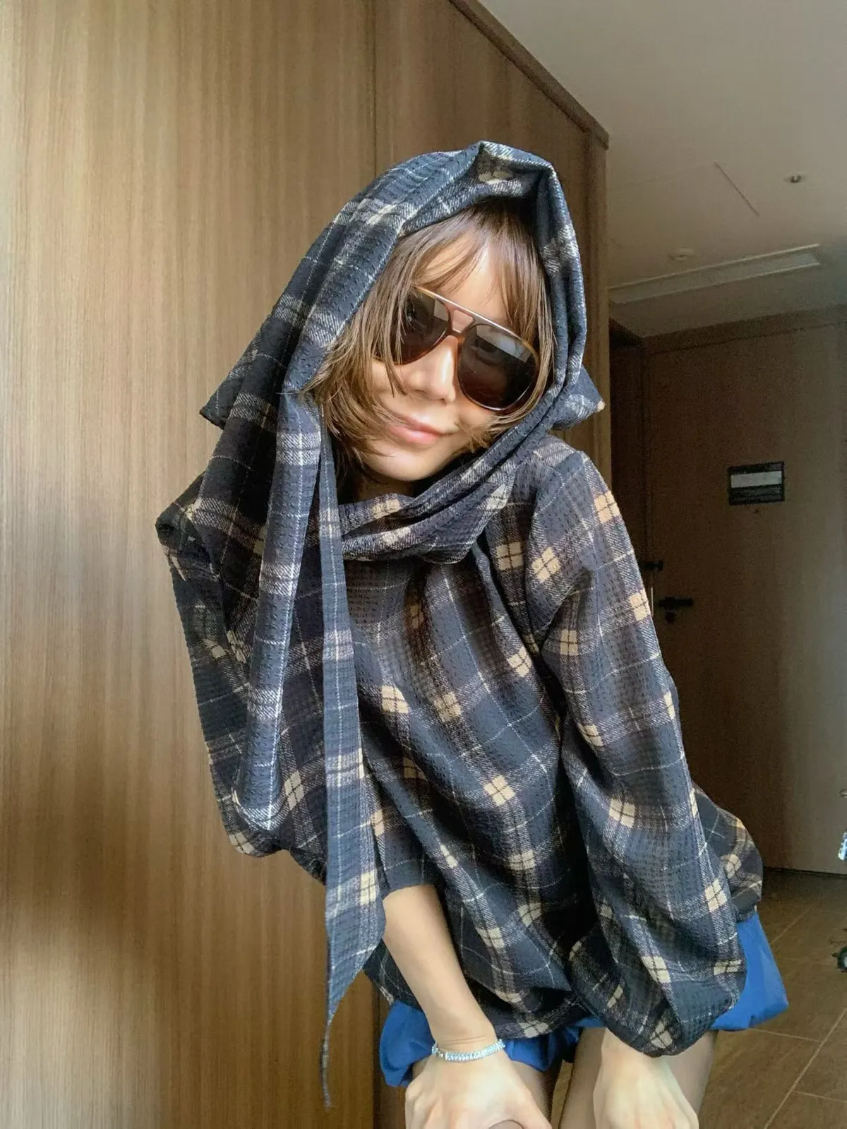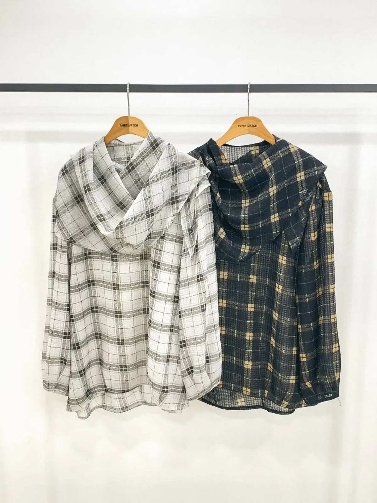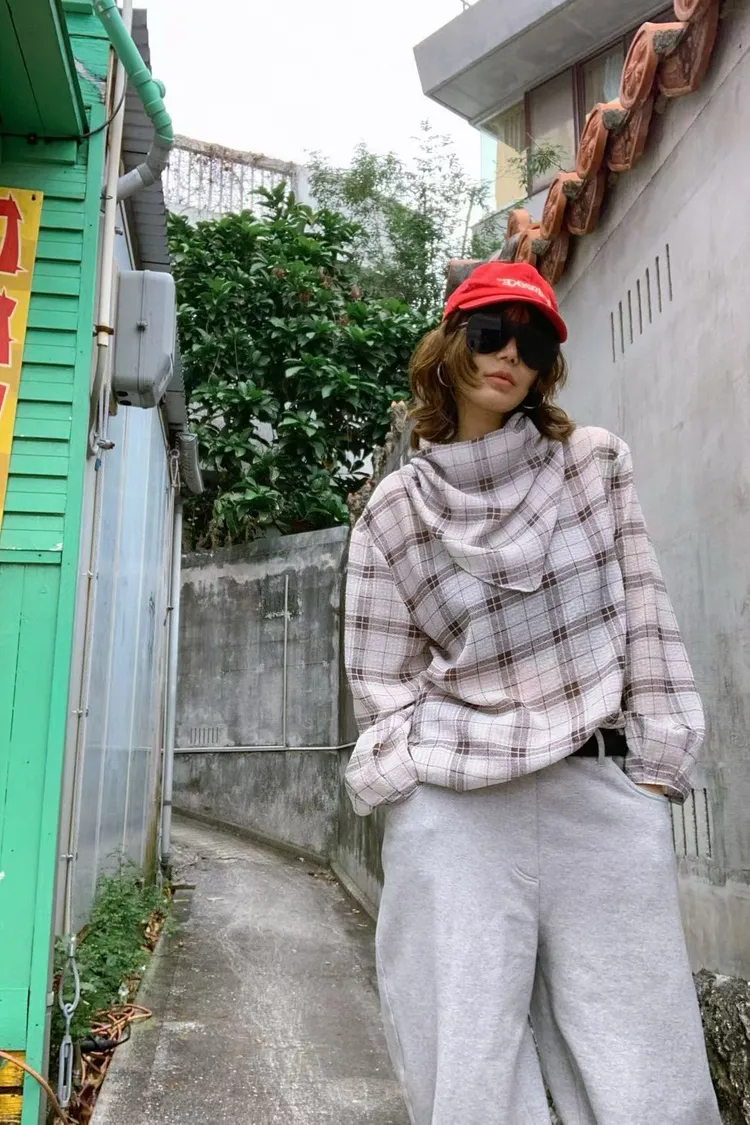 附圍巾雪紡格紋上衣