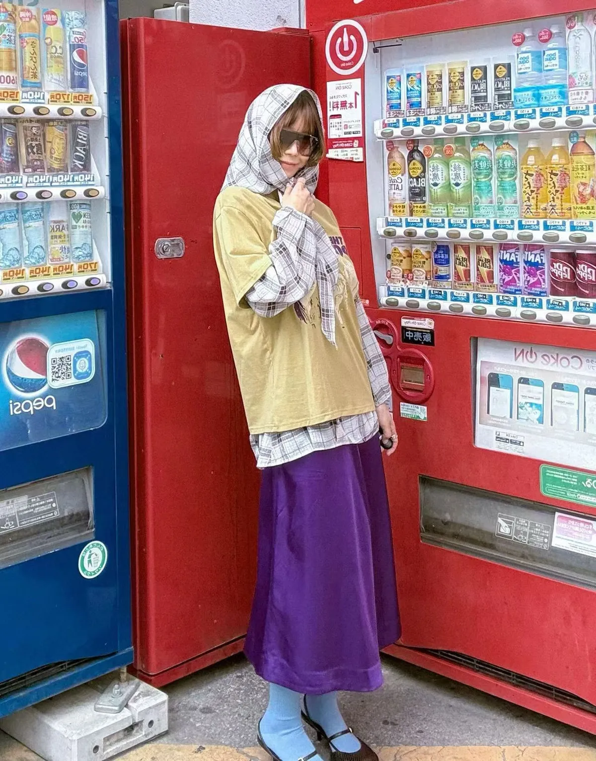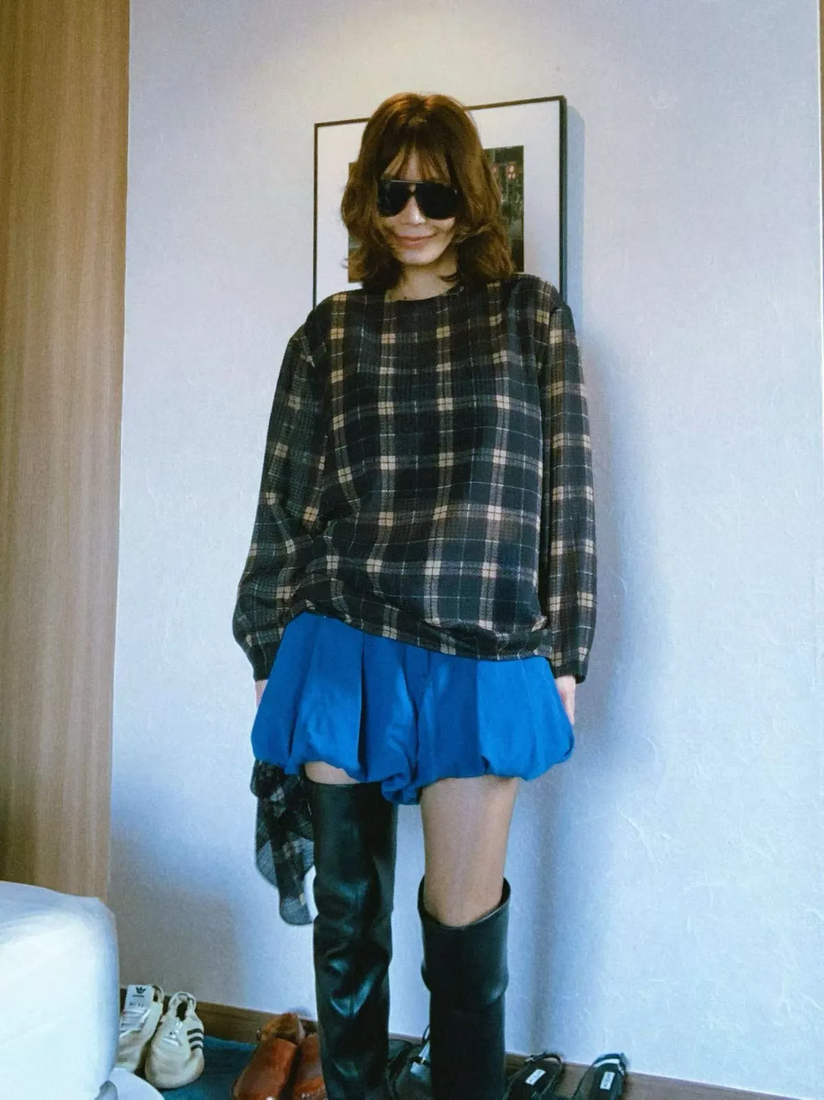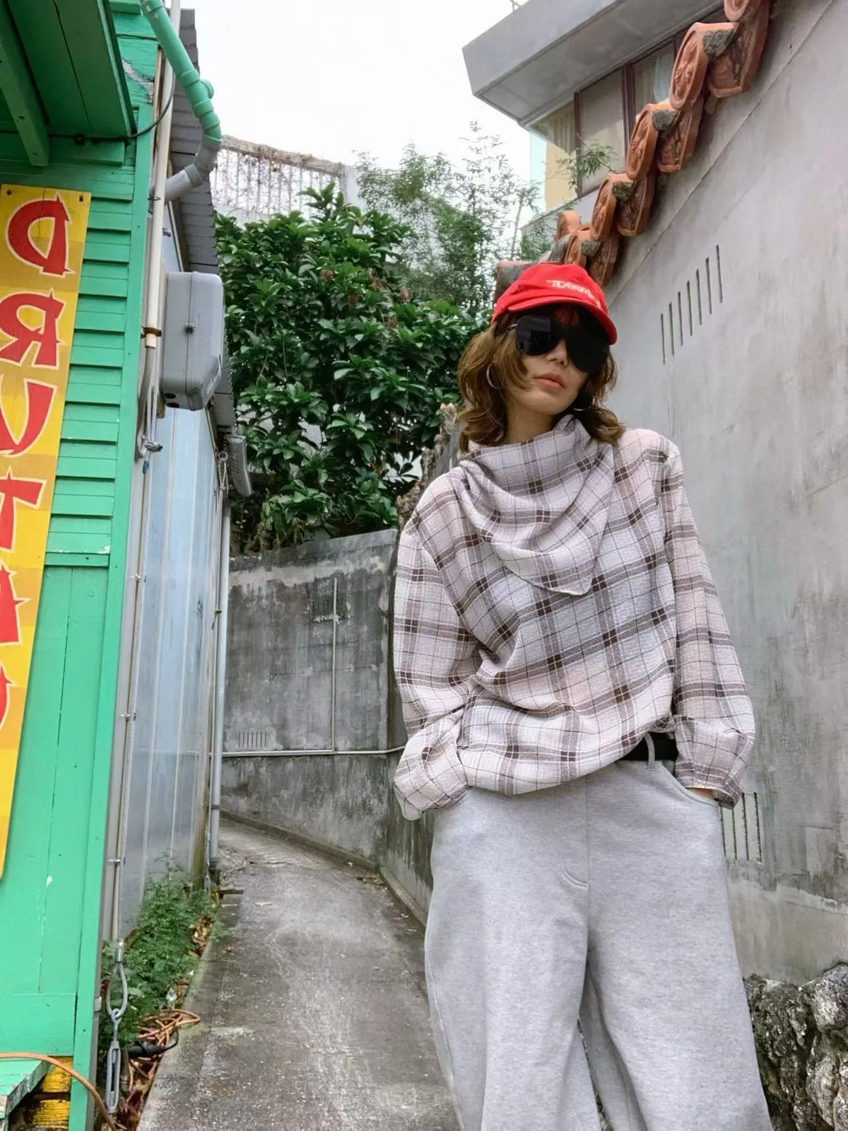 附圍巾雪紡格紋上衣