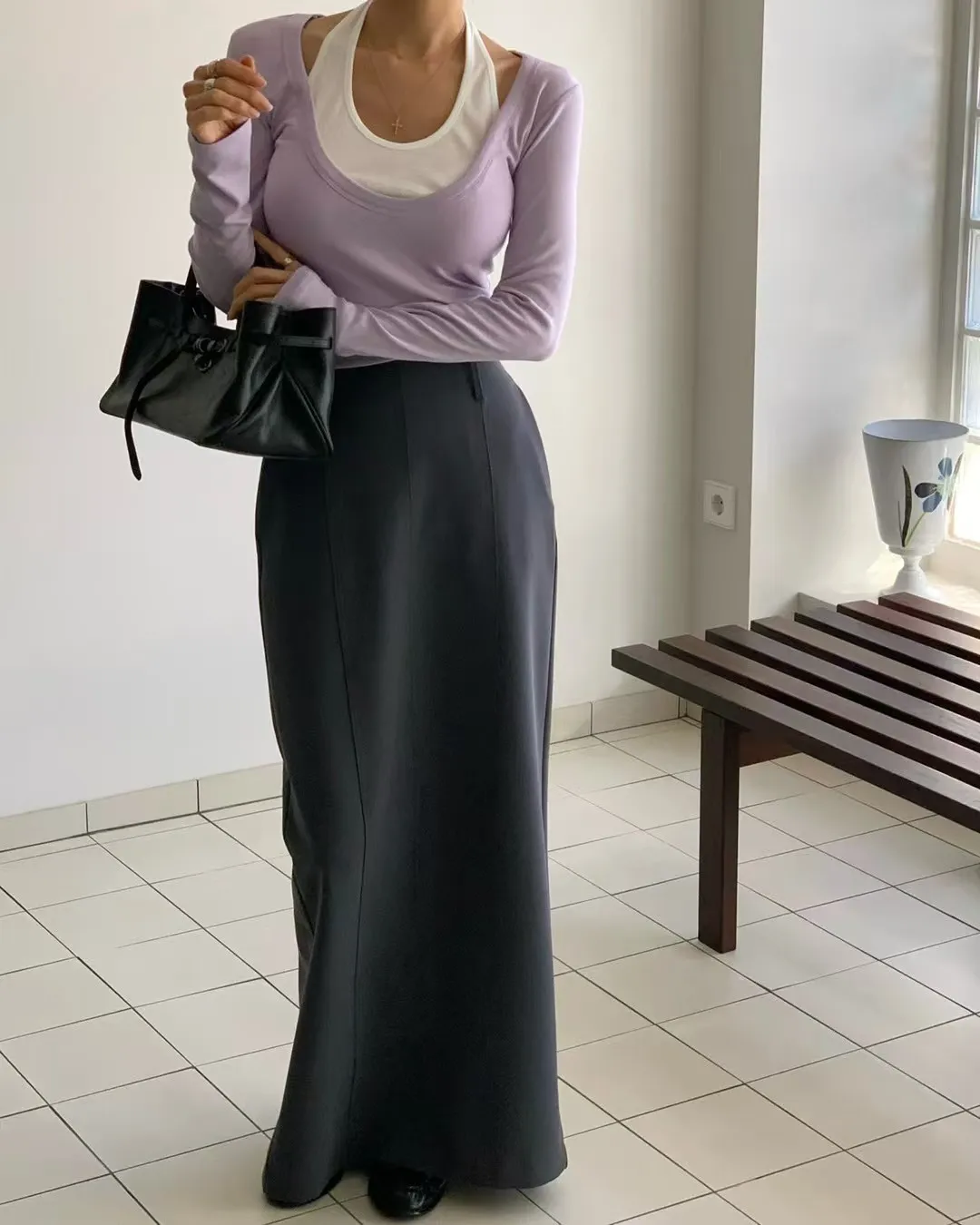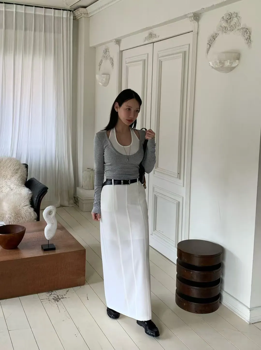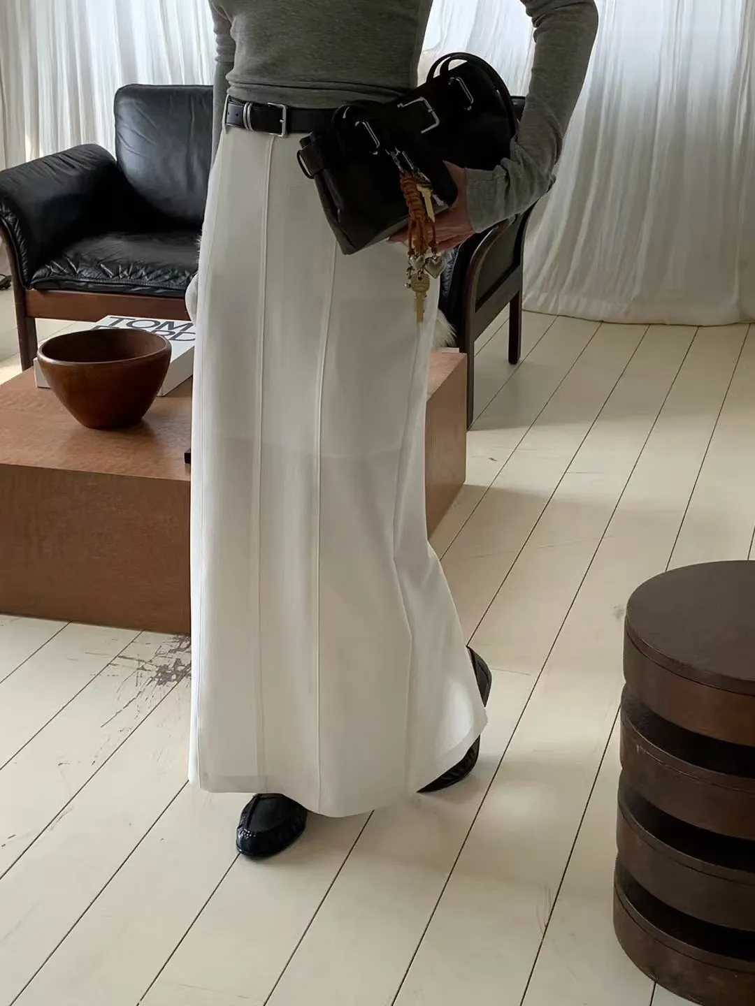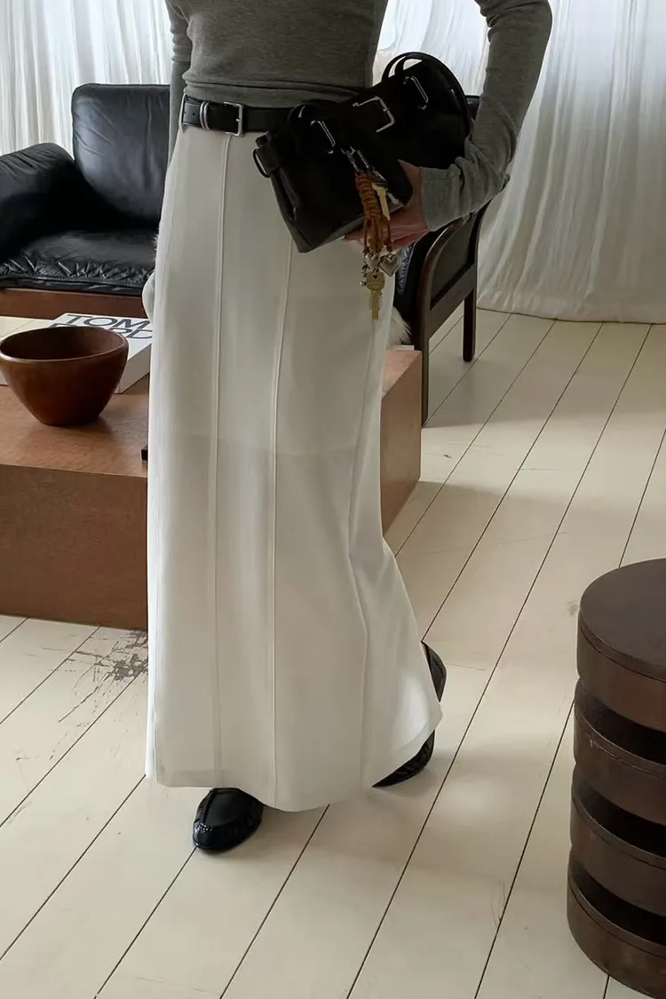 壓褶後鬆緊棉長裙