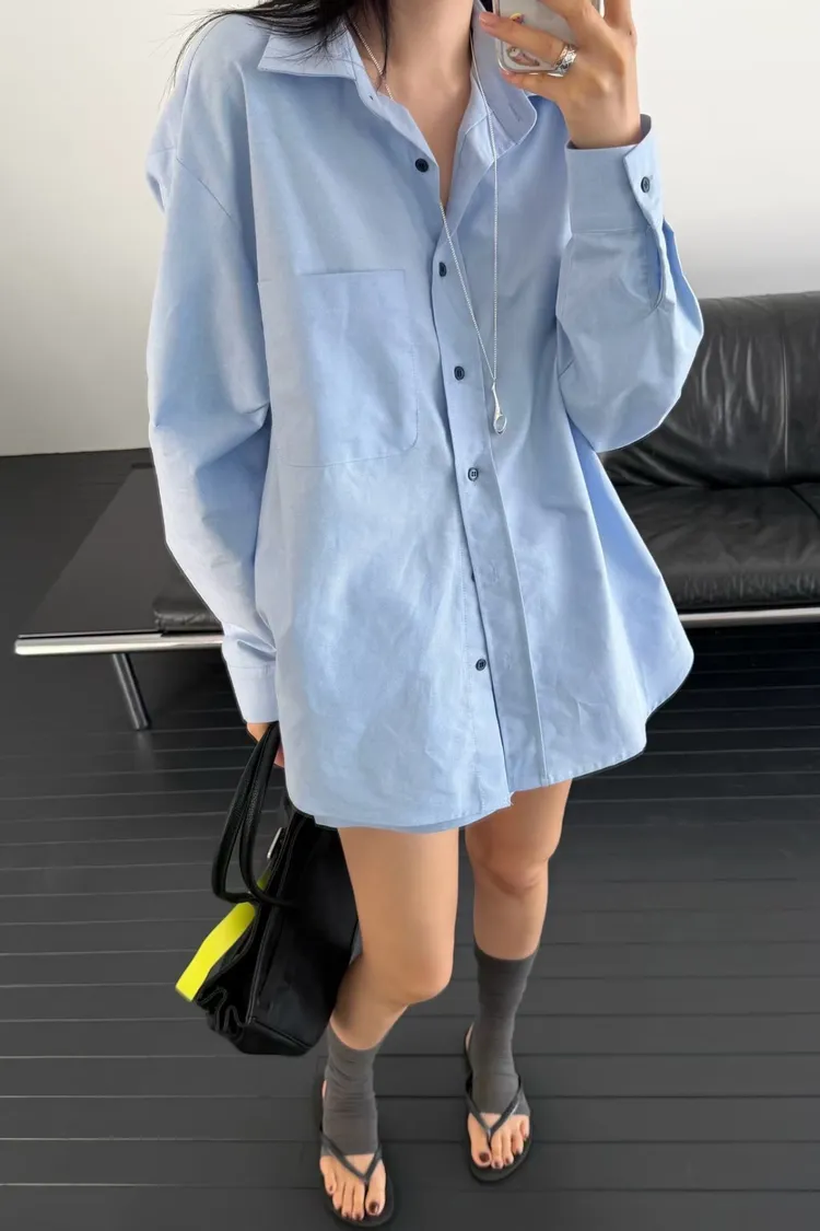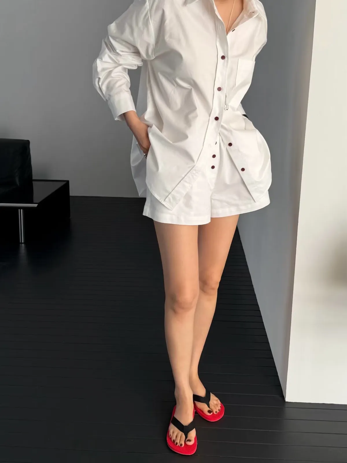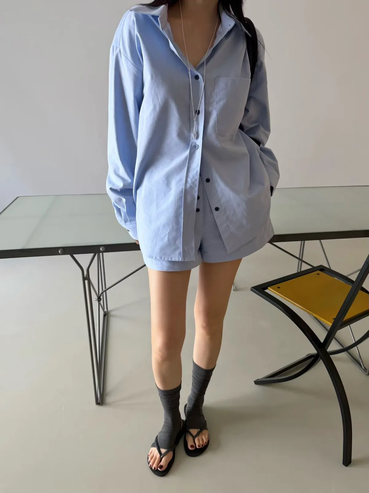鈕扣配色襯衫套裝