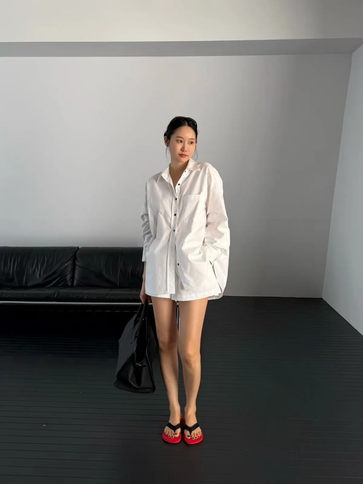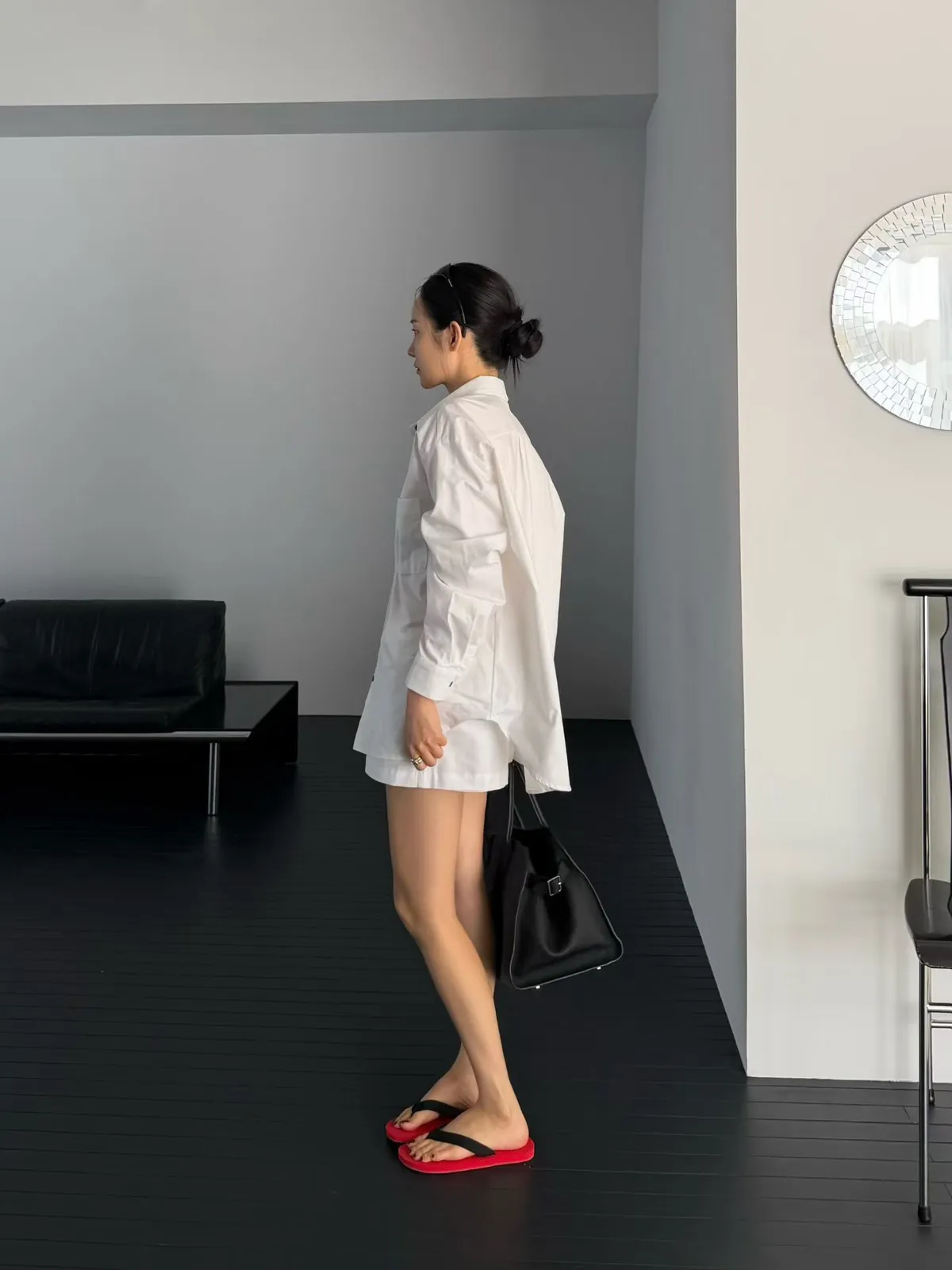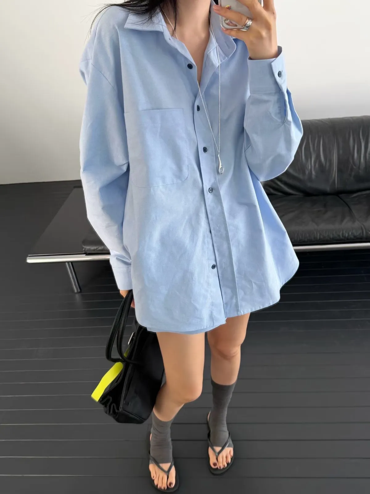 鈕扣配色襯衫套裝