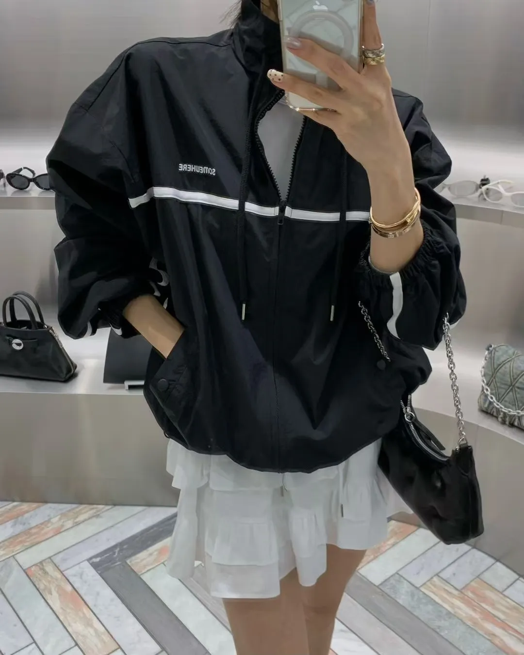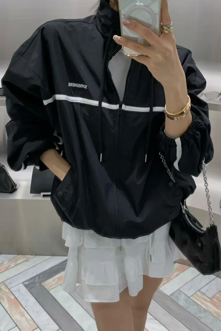 拼色雙拉鏈休閒外套