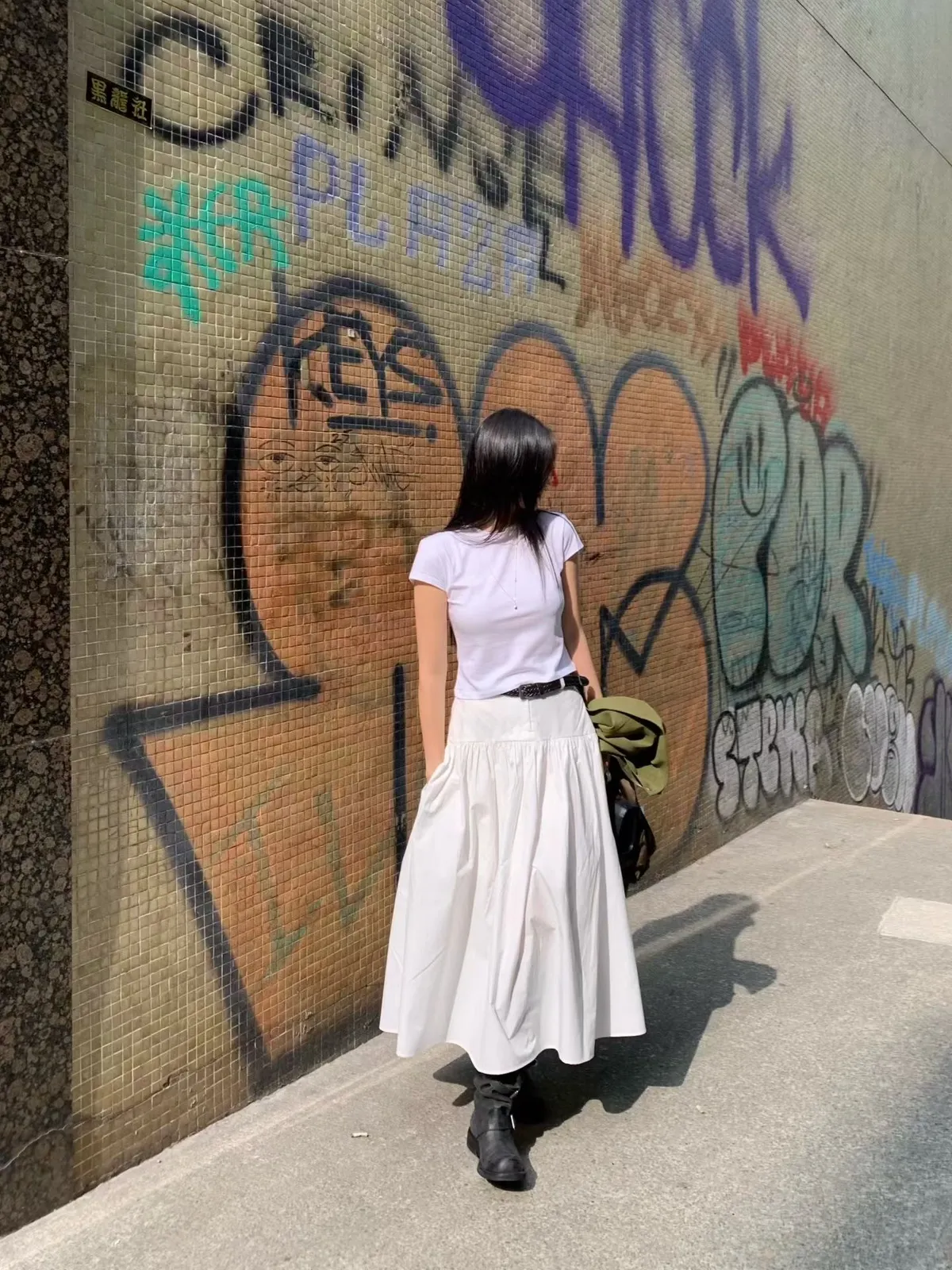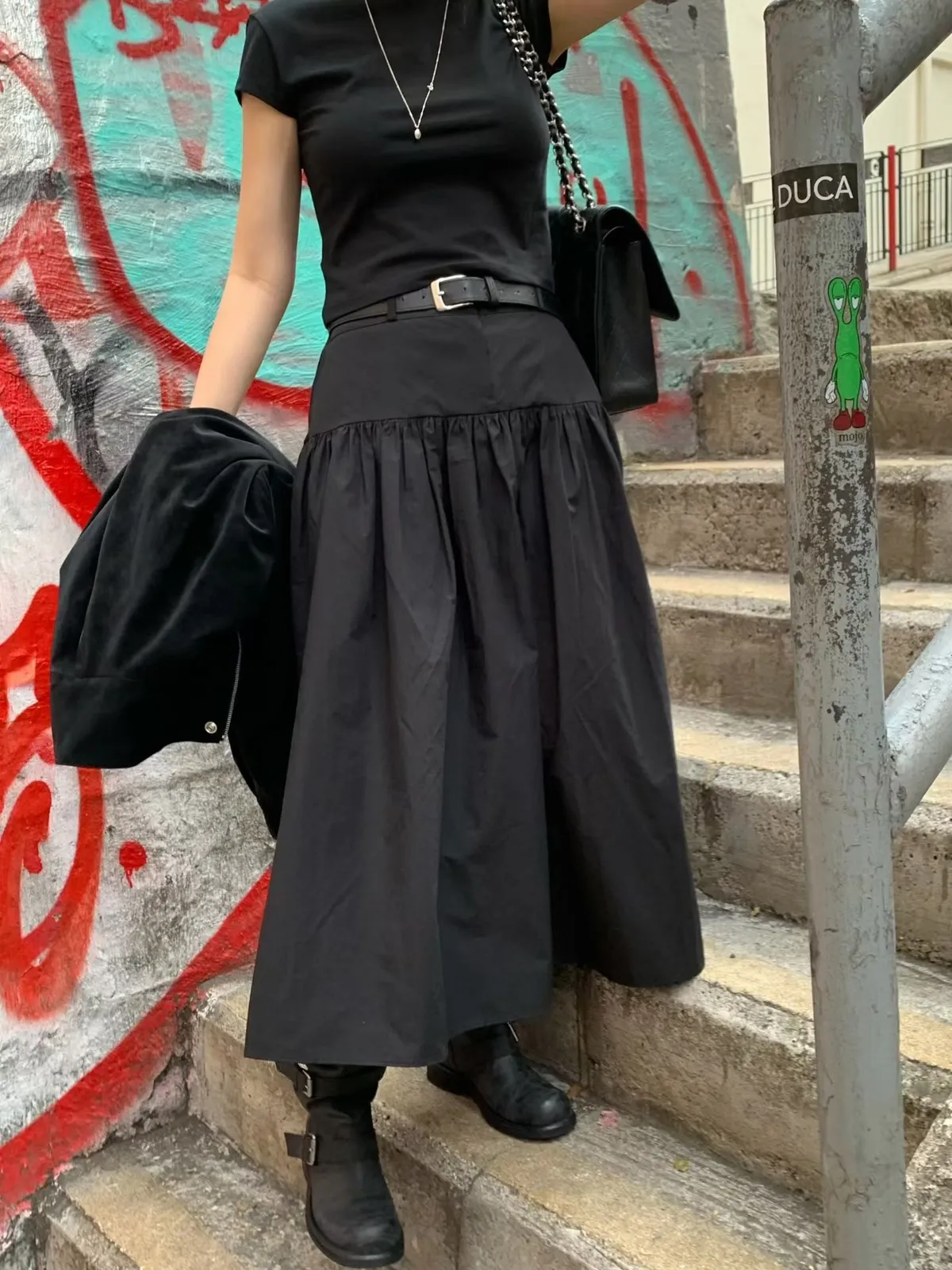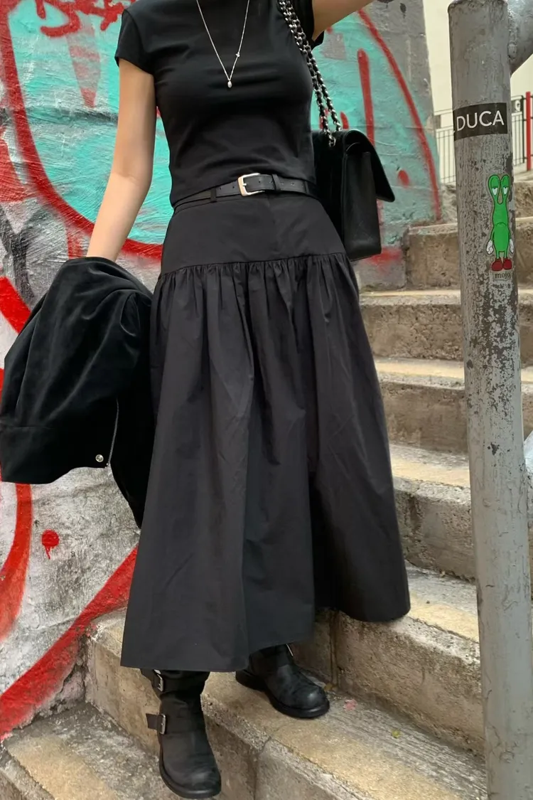 鬆緊打褶長裙