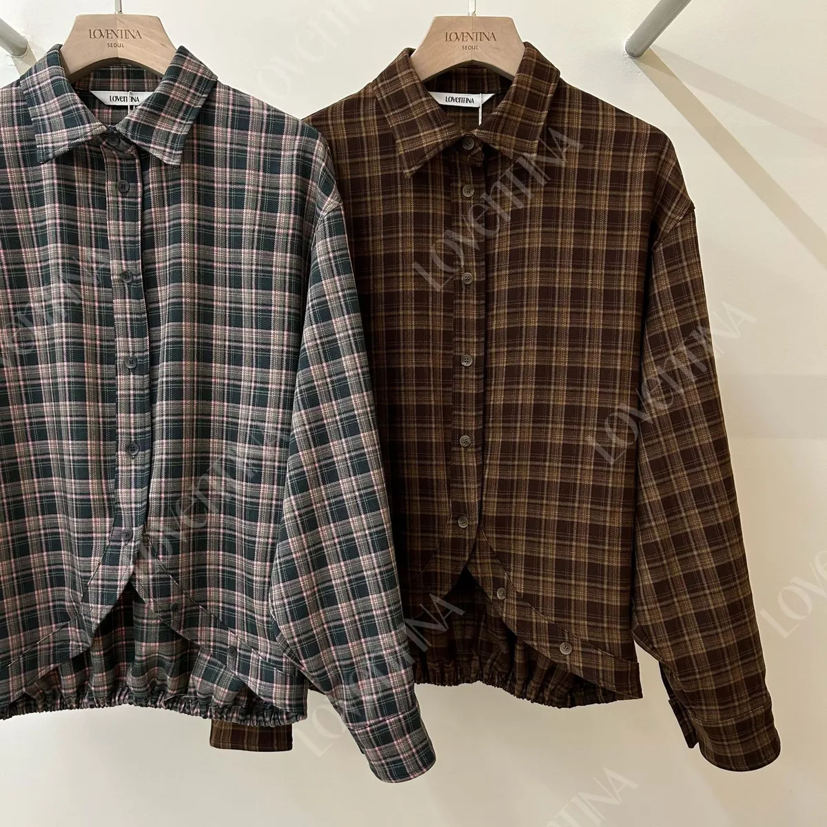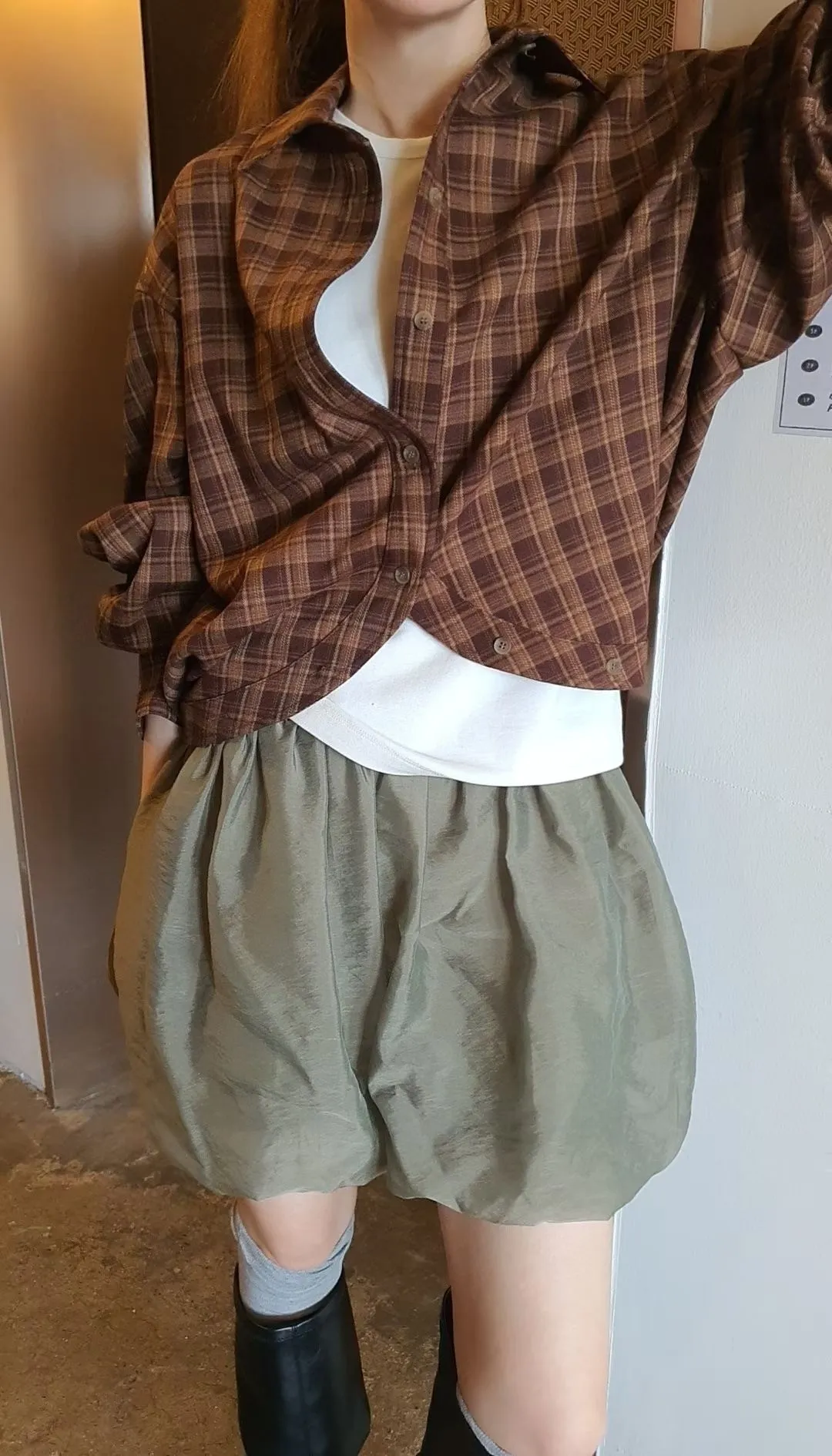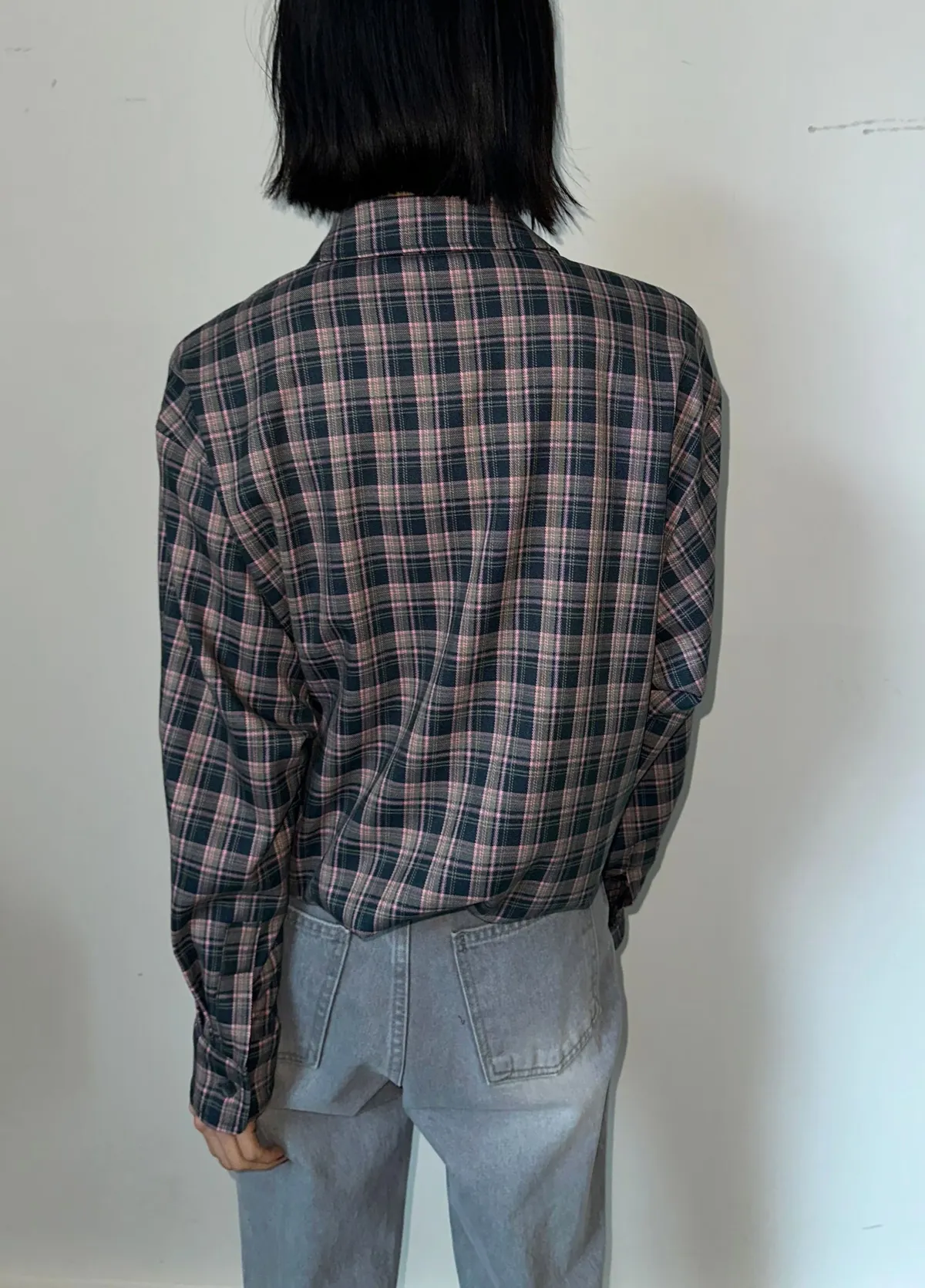 下圓弧微短版格紋襯衫