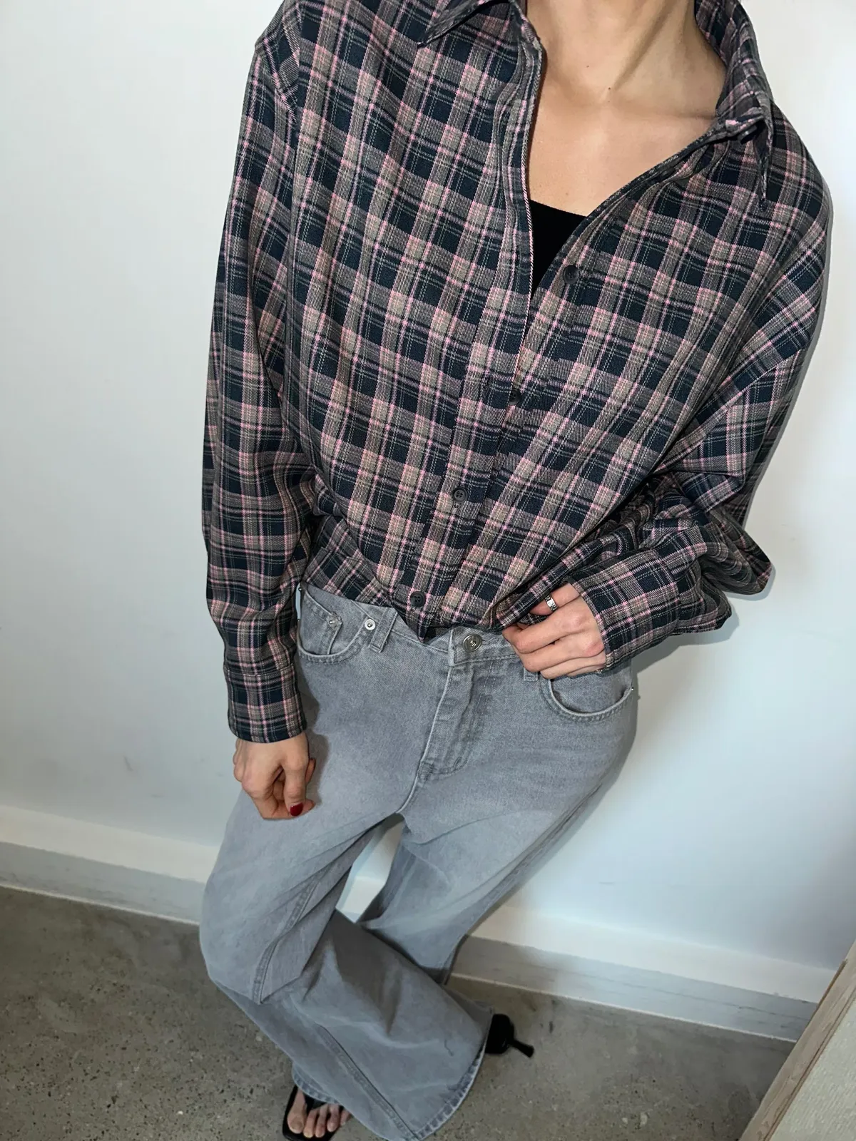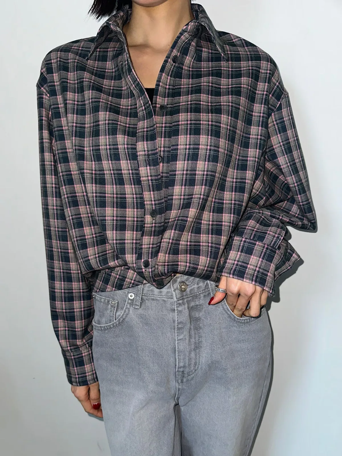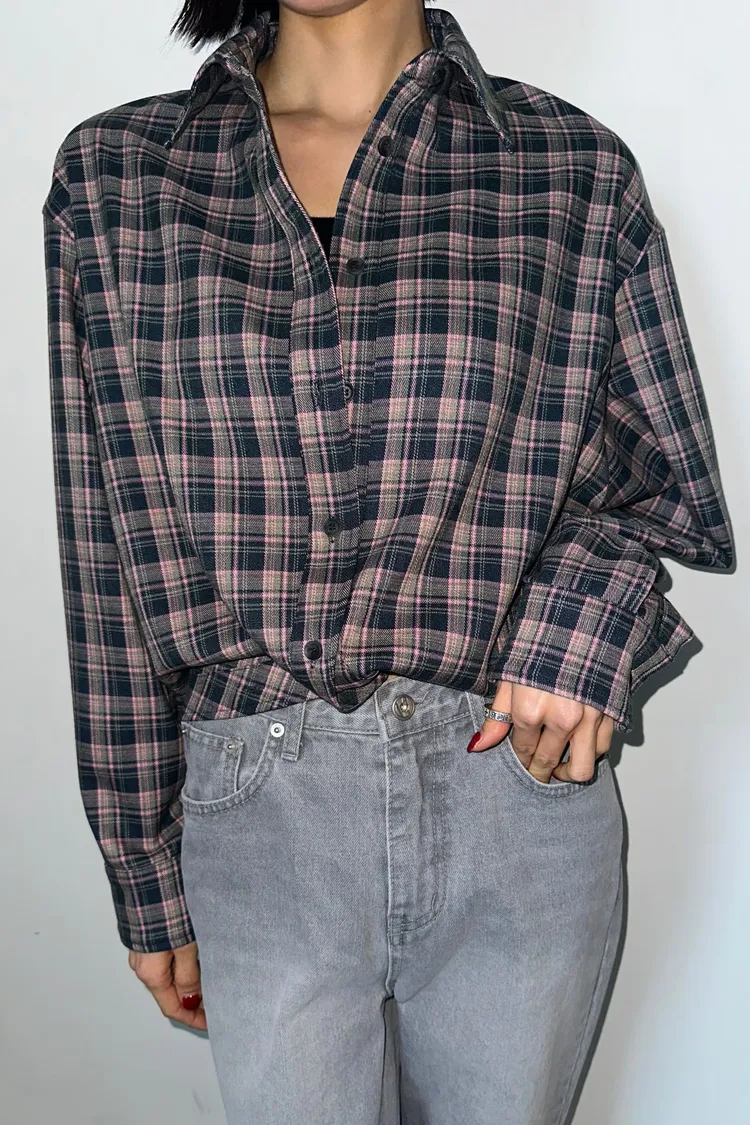 下圓弧微短版格紋襯衫
