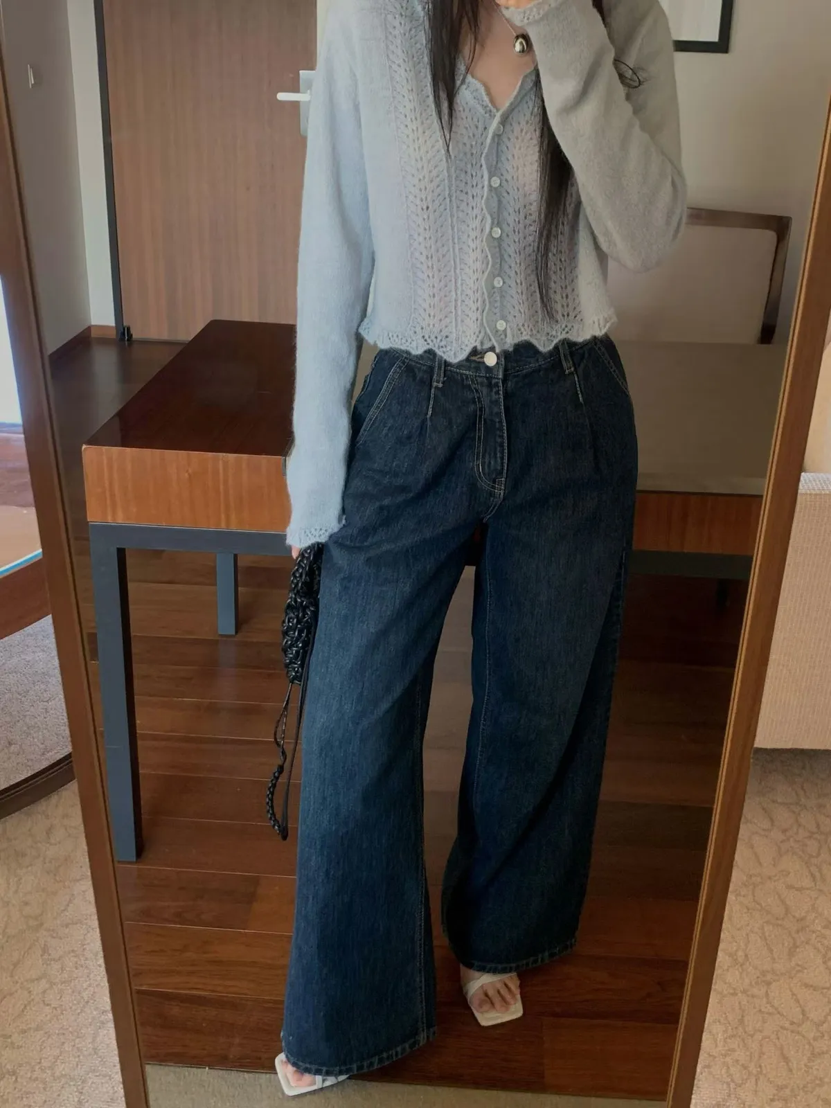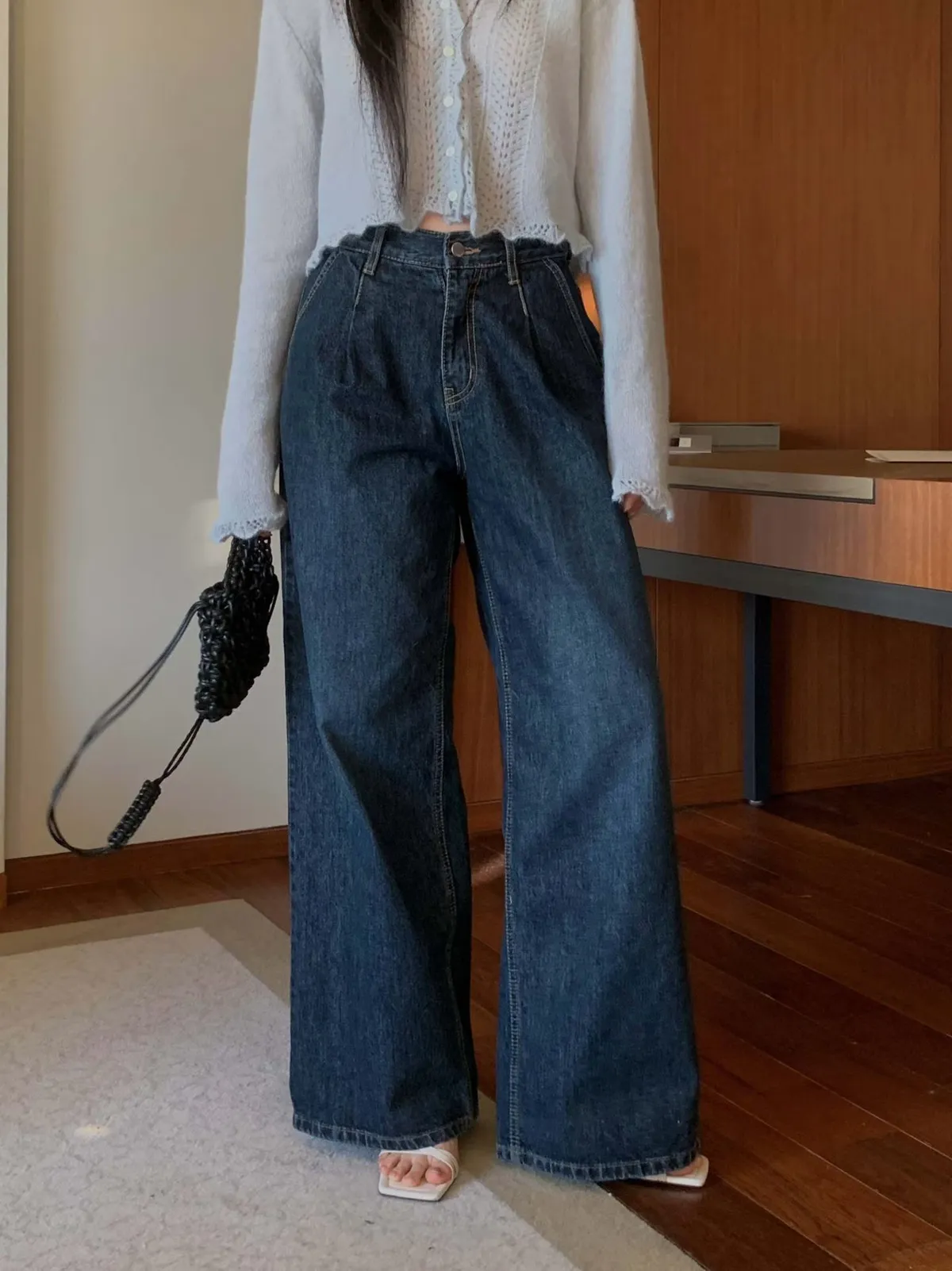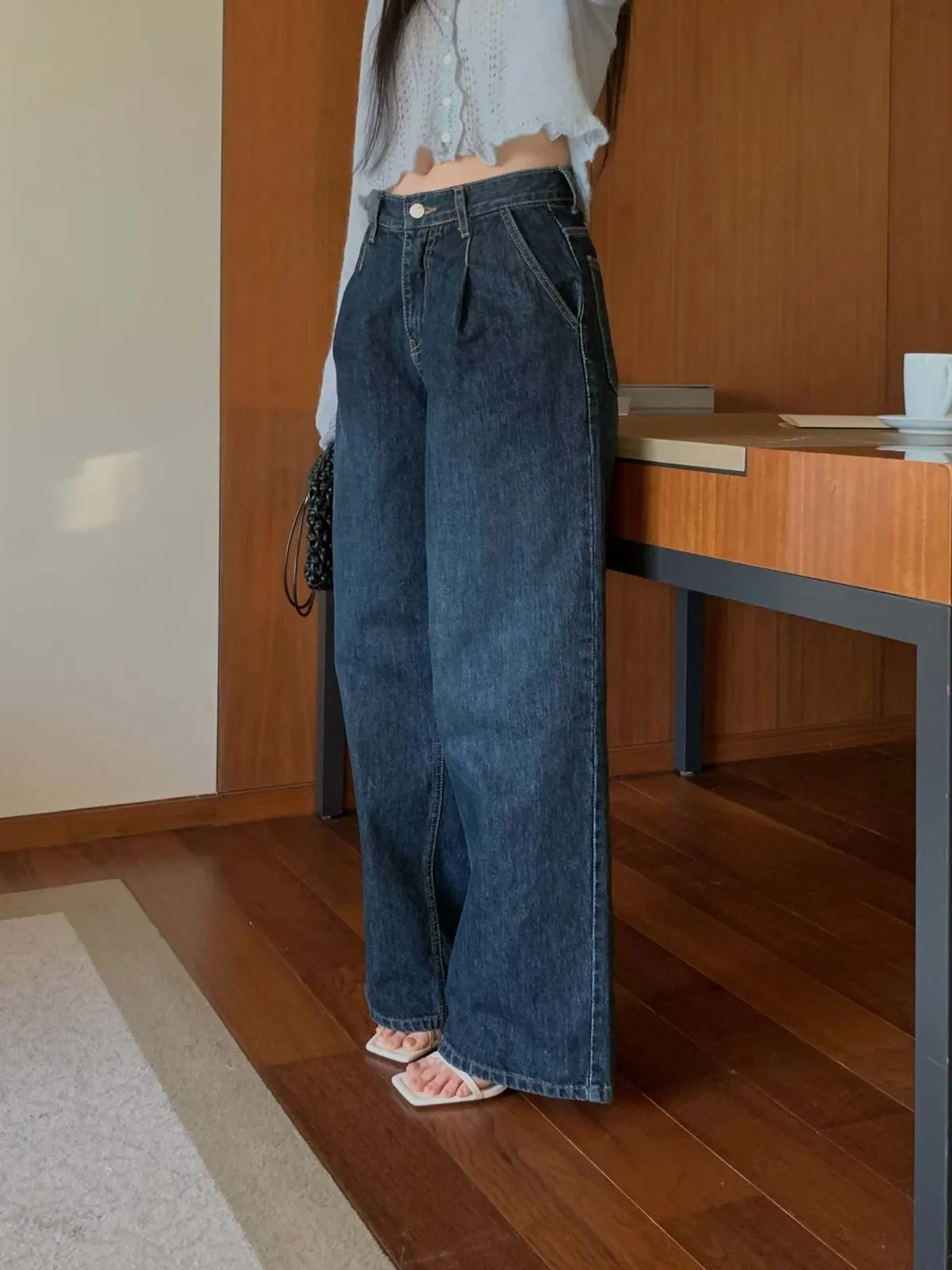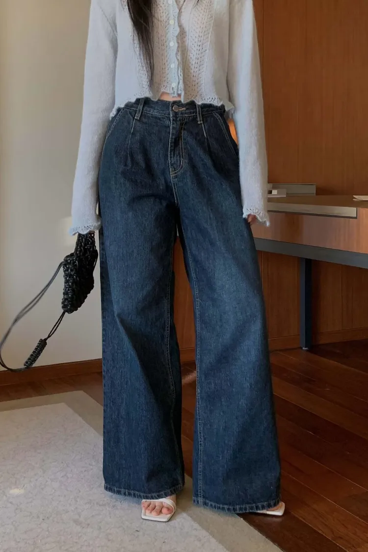 壓褶高腰牛仔褲