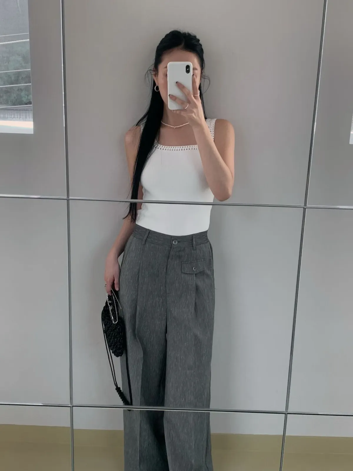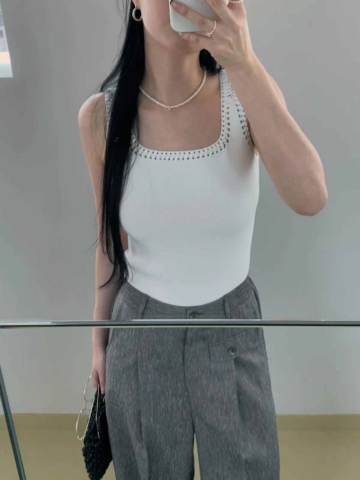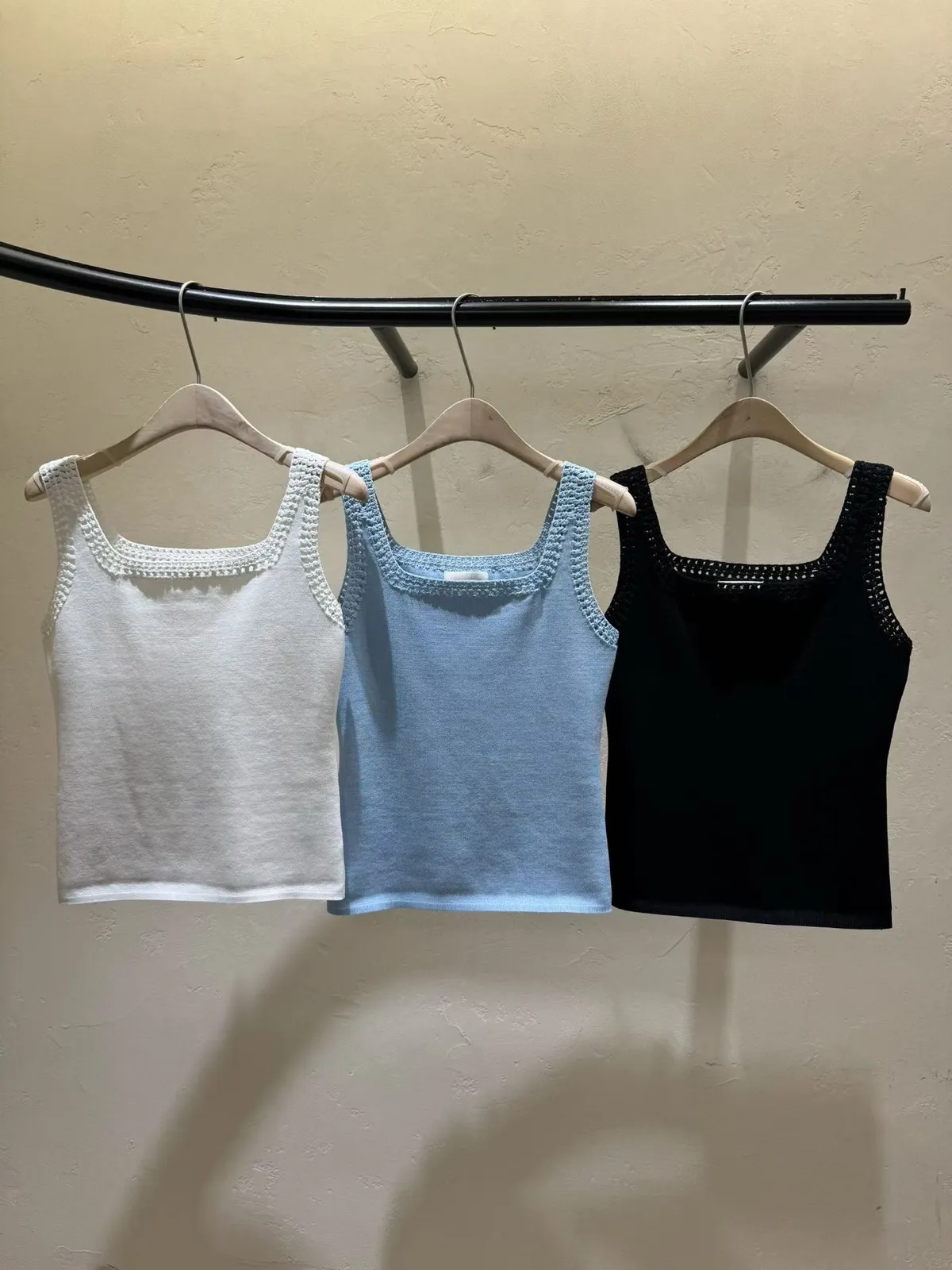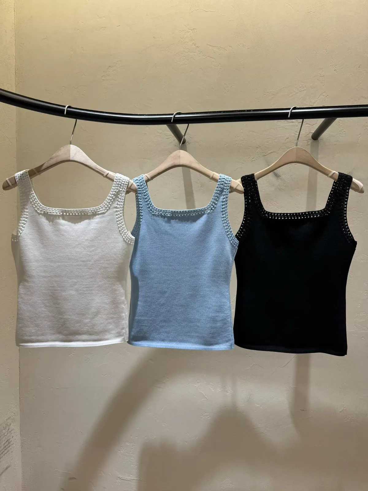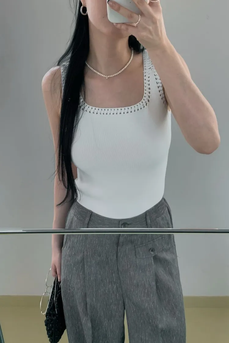方領鏤空背心