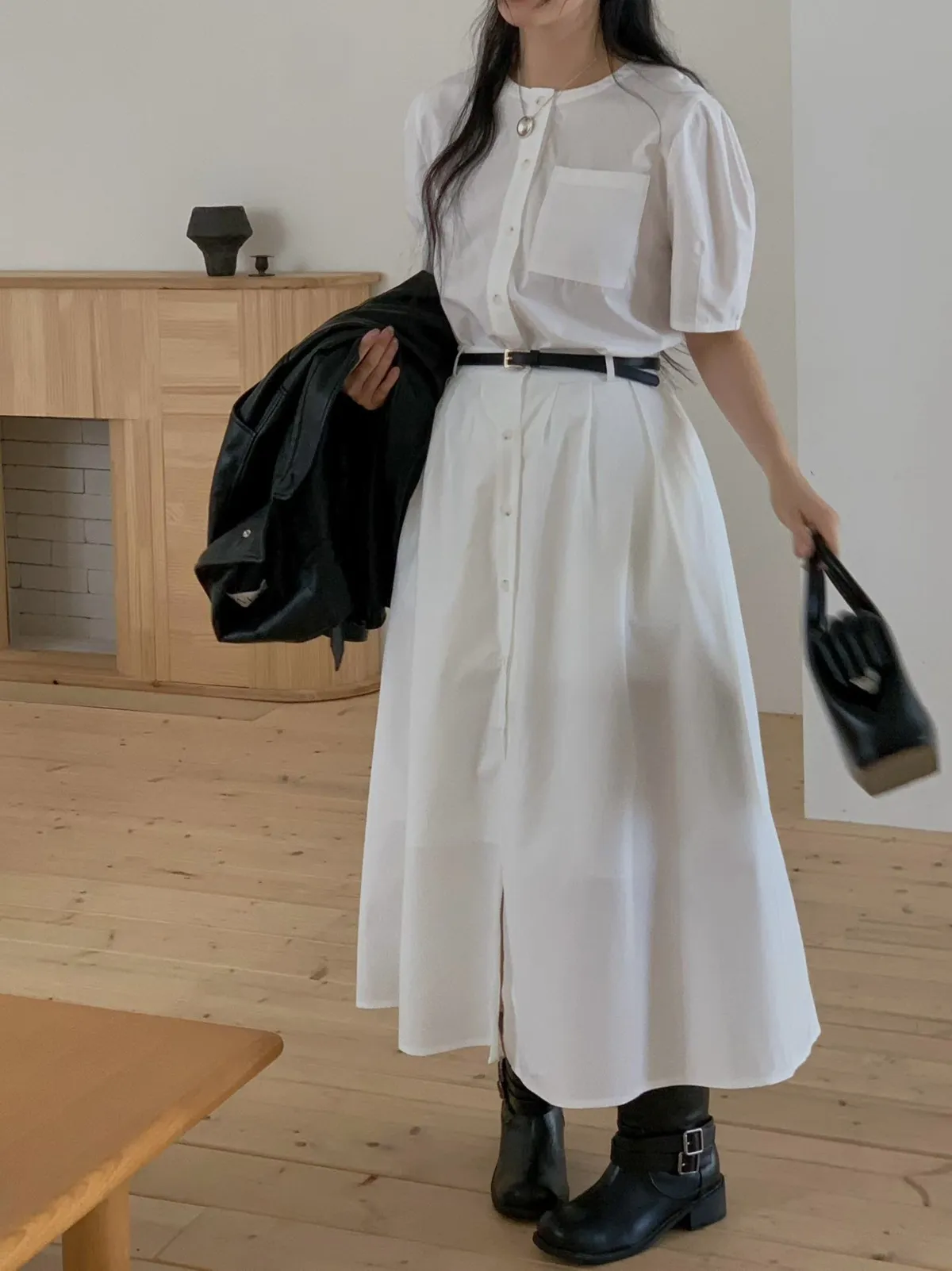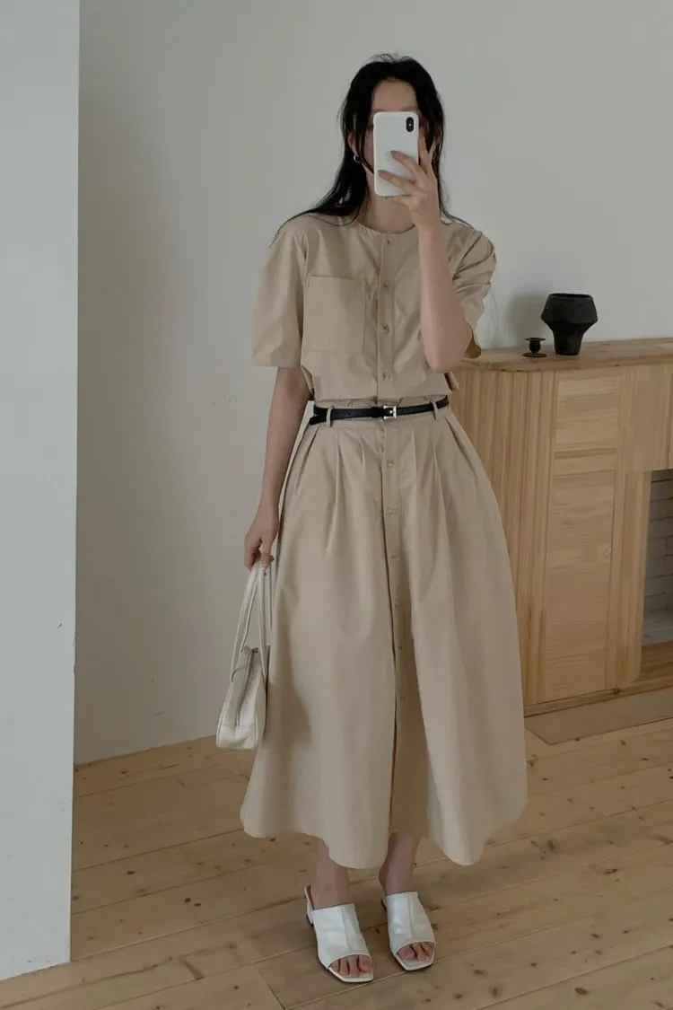 設計款假兩件長洋裝