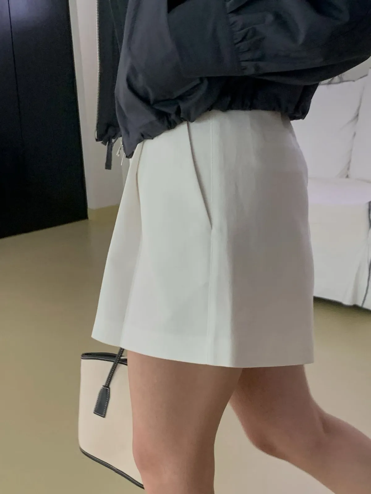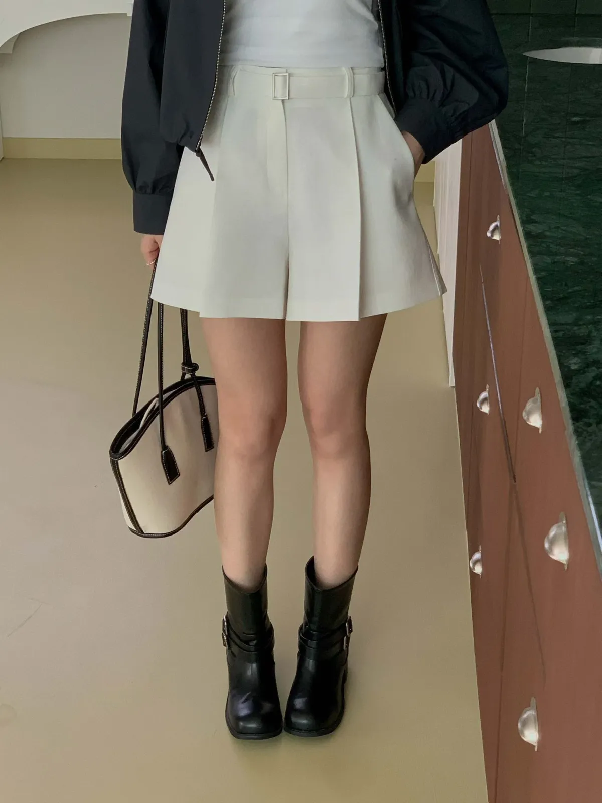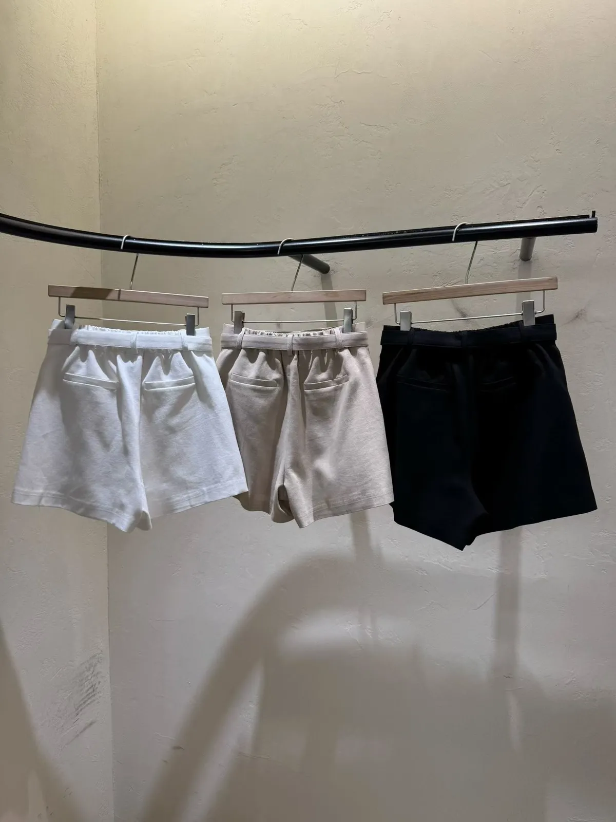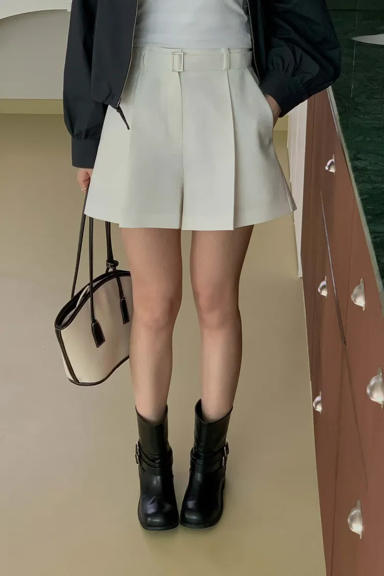 附腰帶後鬆緊棉麻短褲