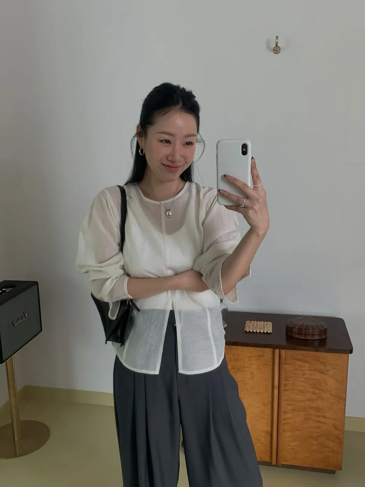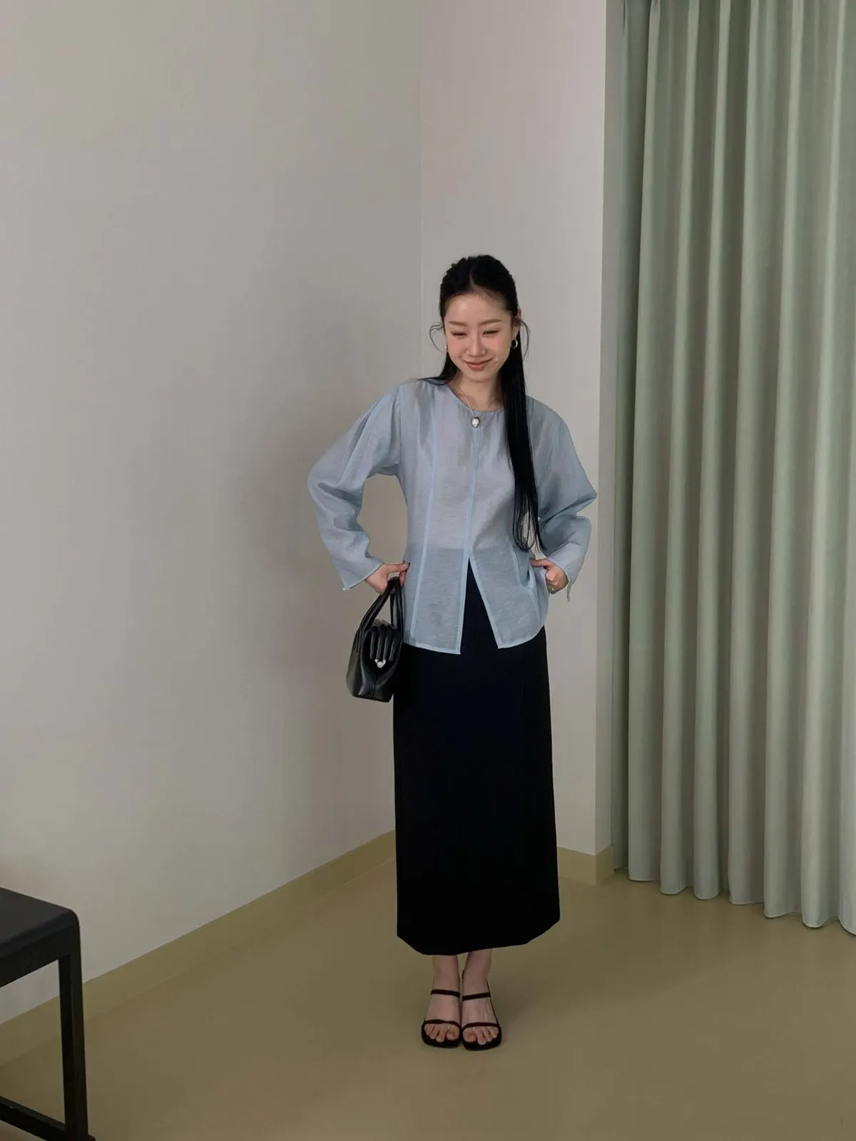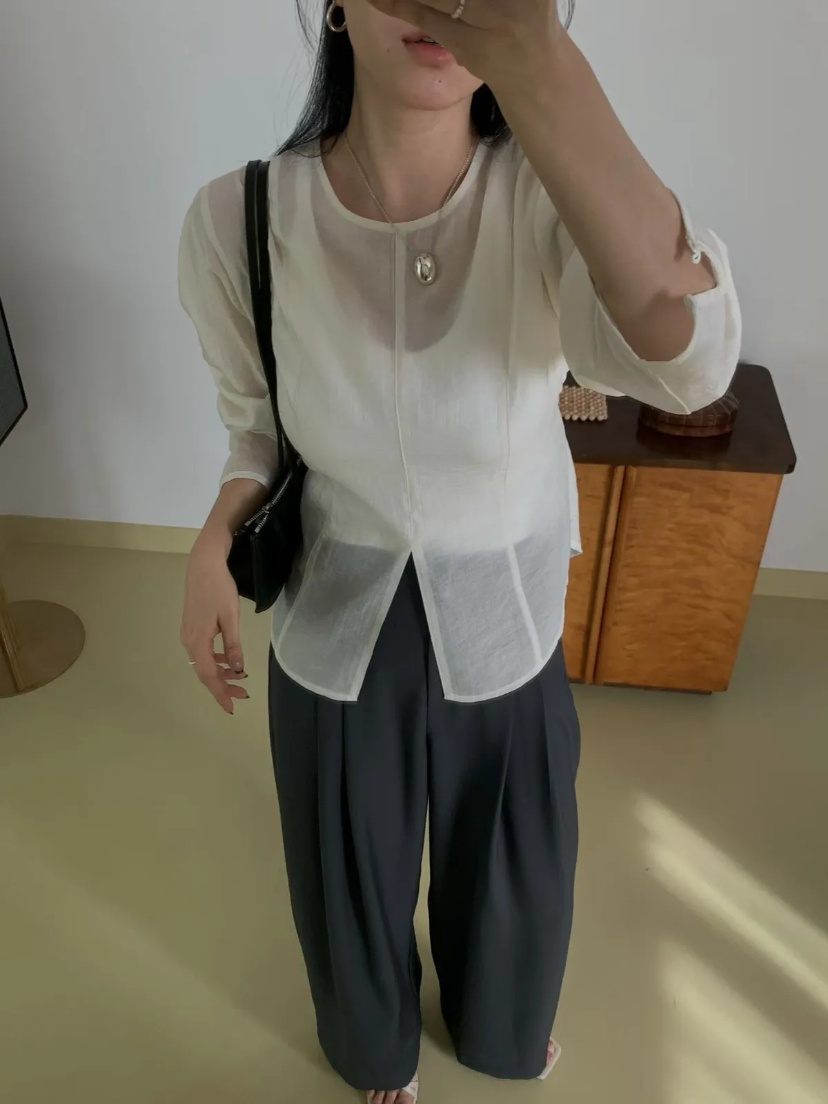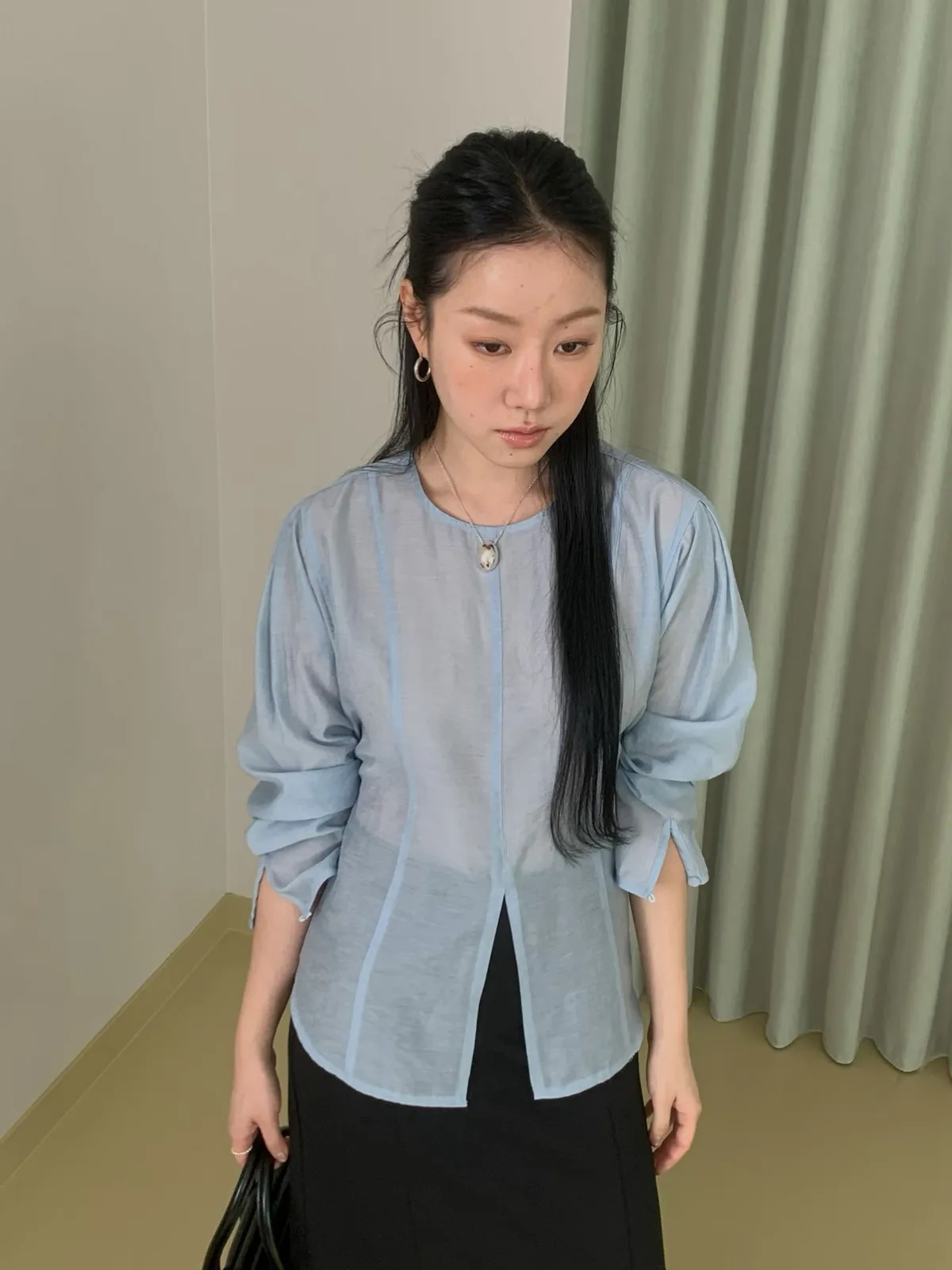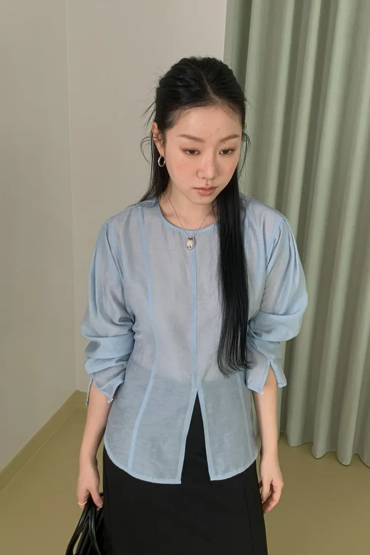 前開叉綁帶天絲上衣