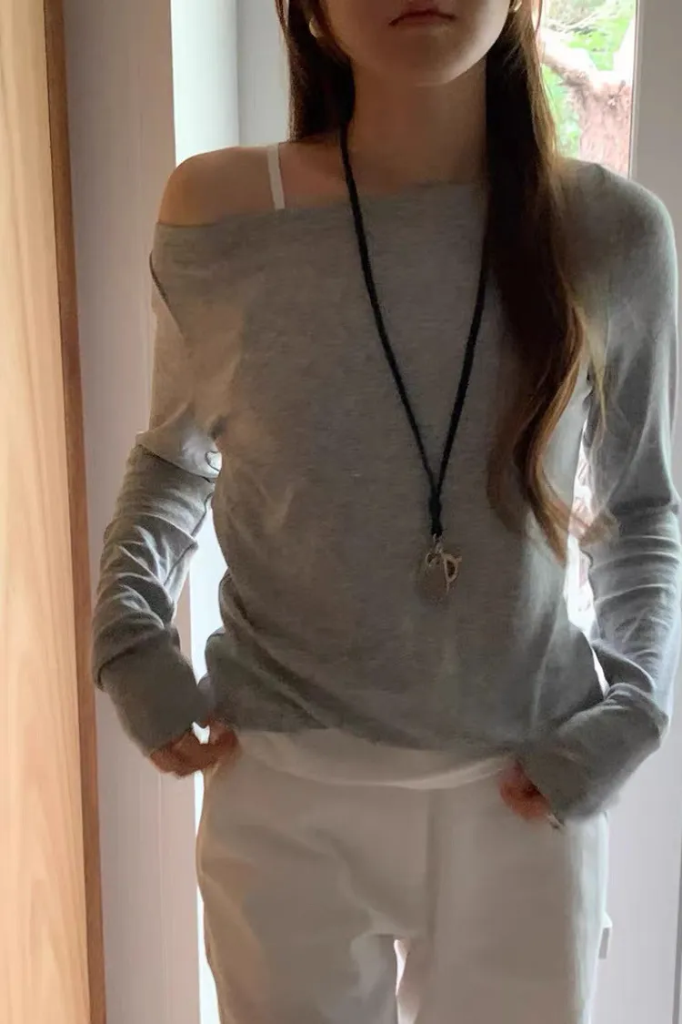 素素一字領上衣