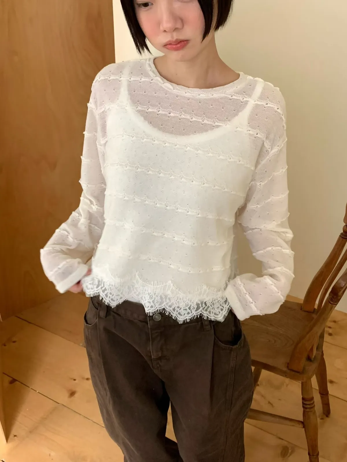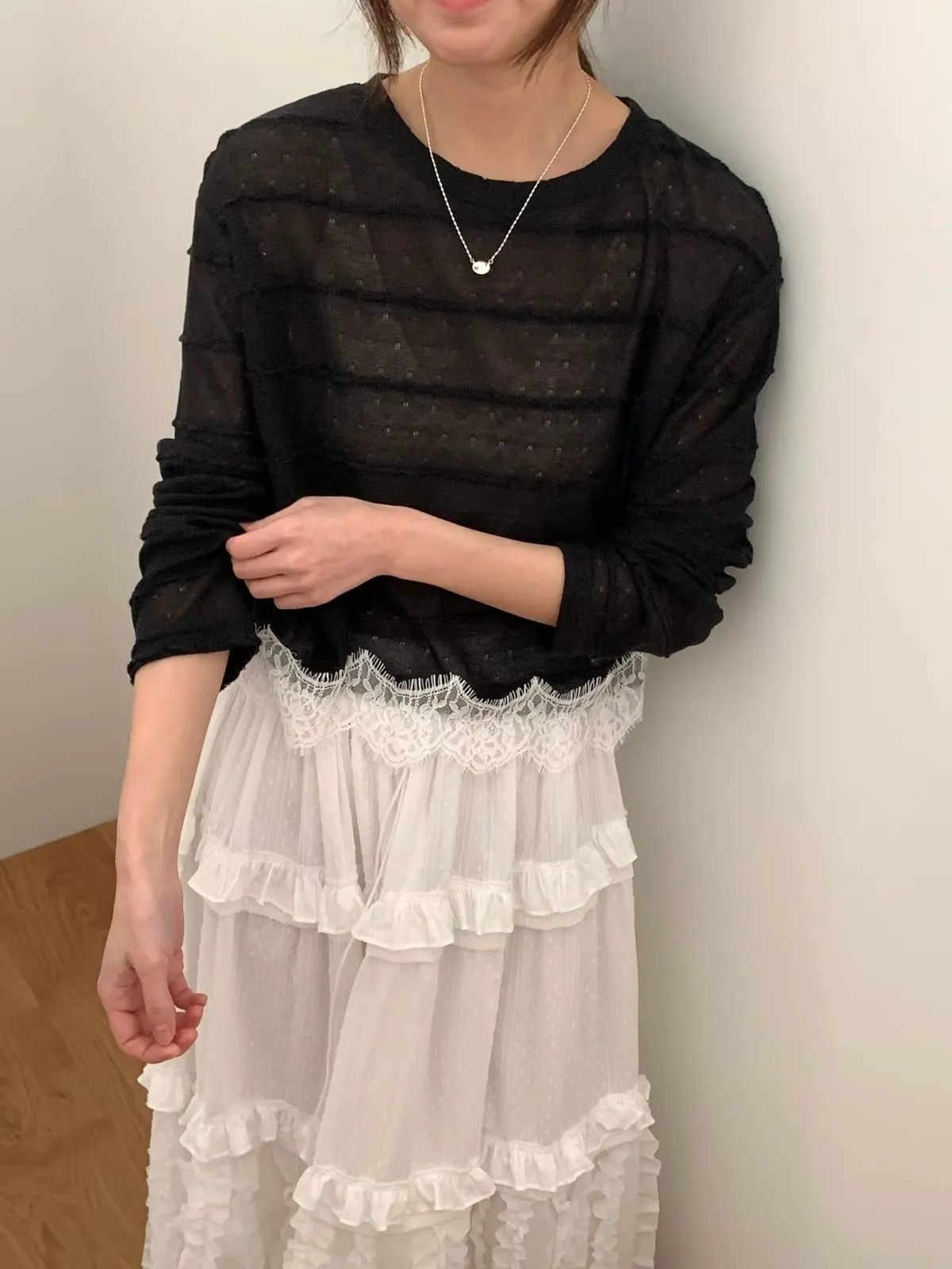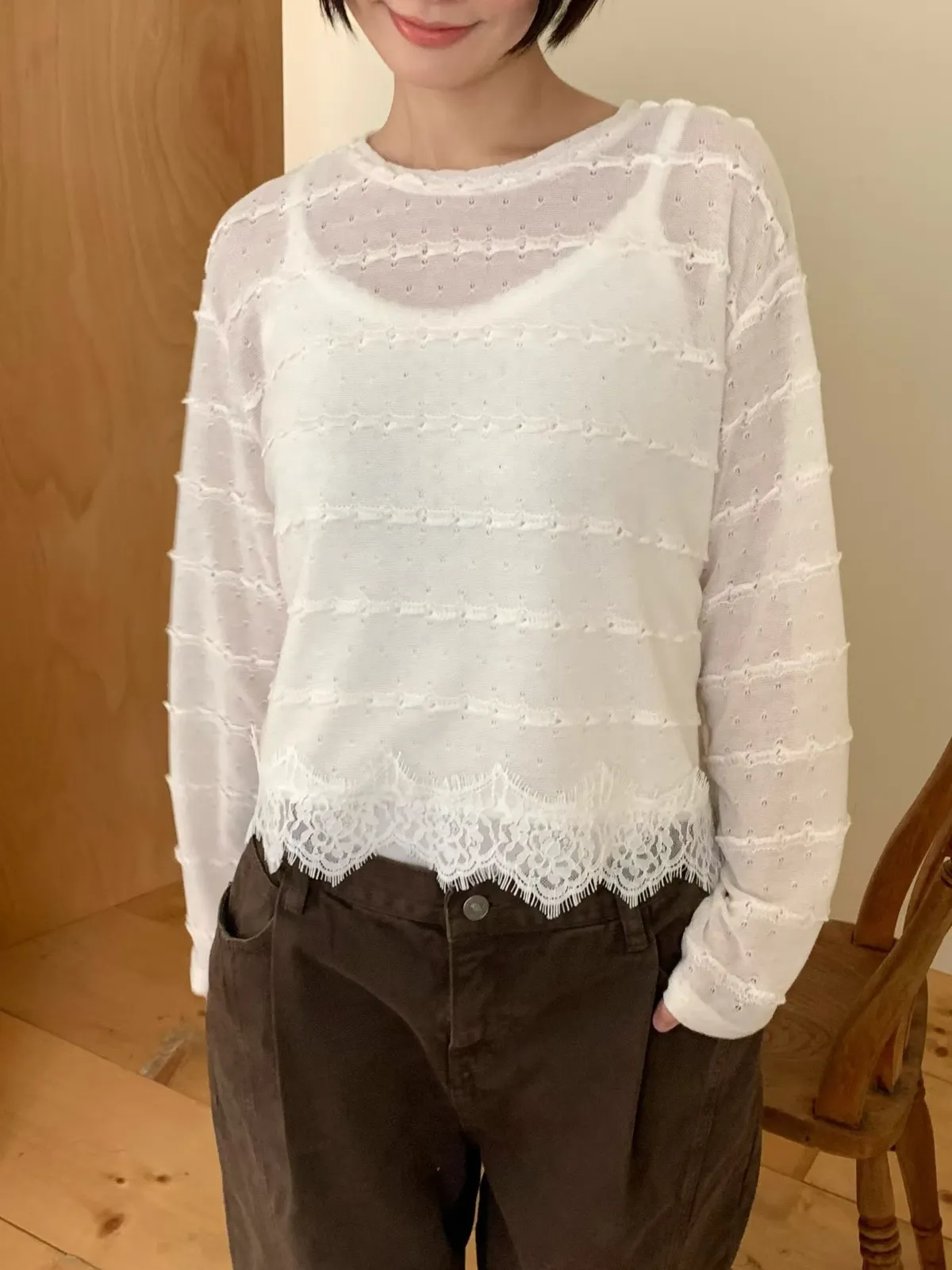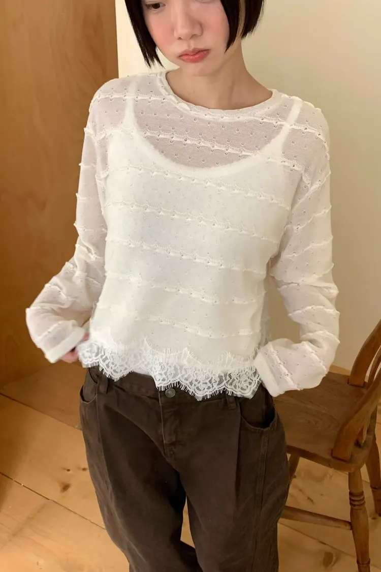 下拼接蕾絲線衫