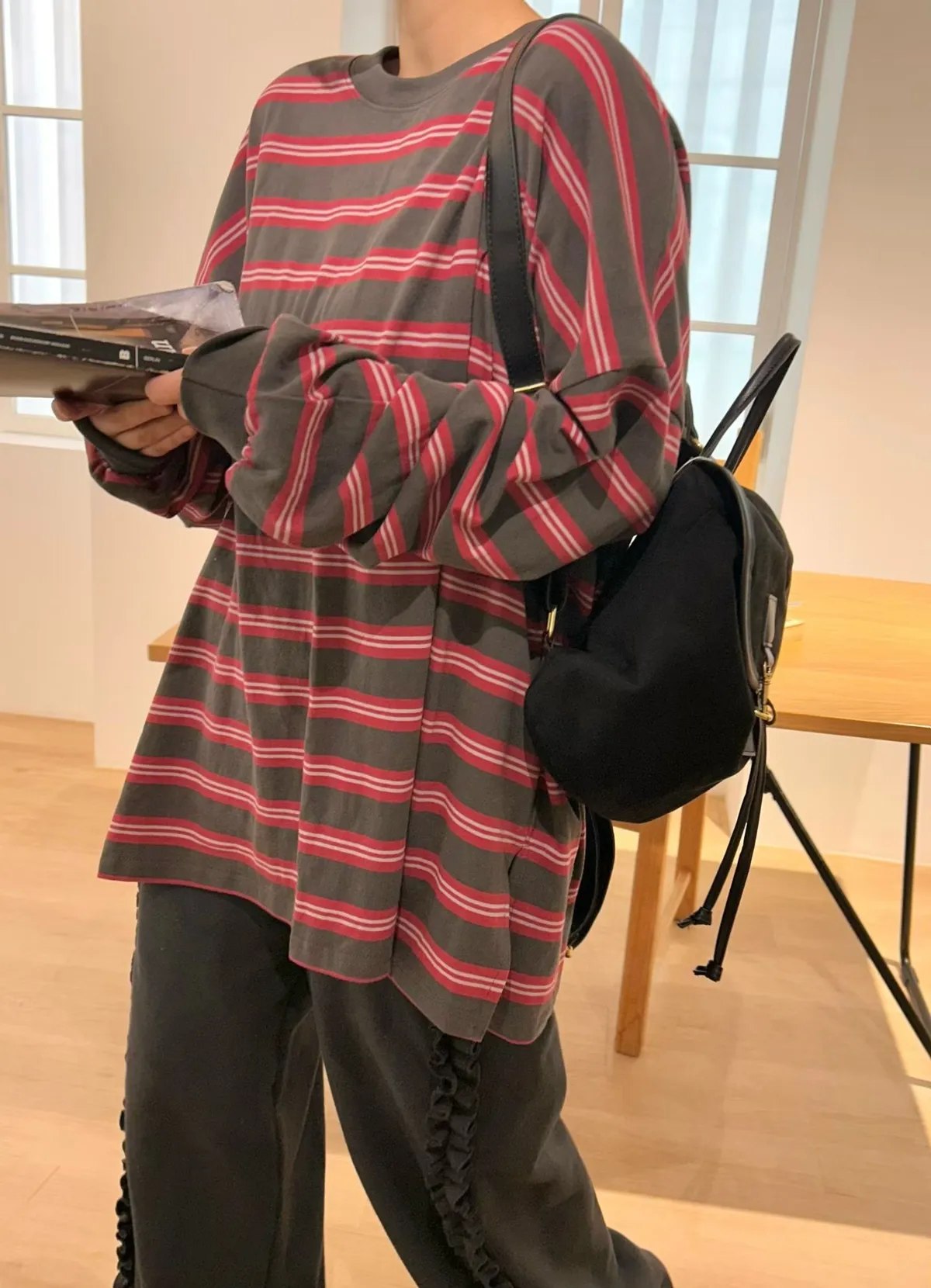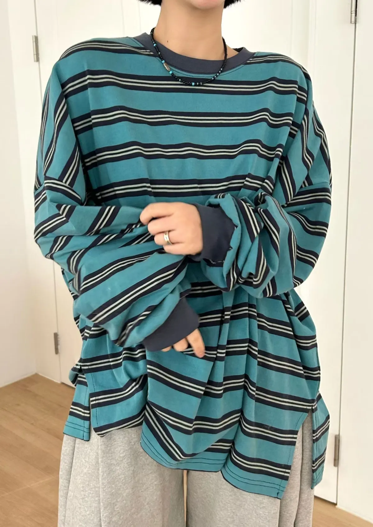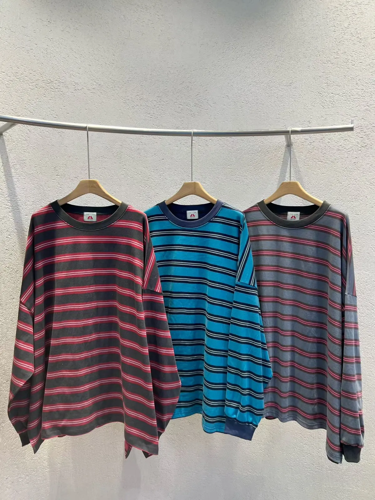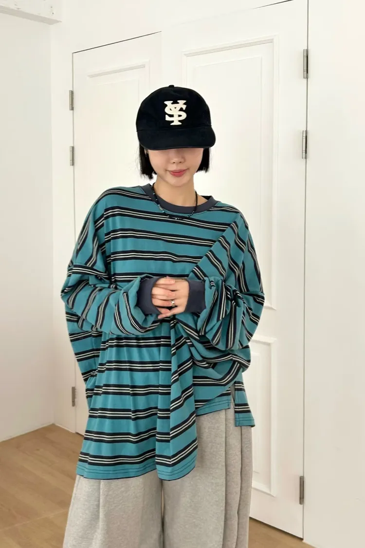 水洗橫條紋撞色上衣
