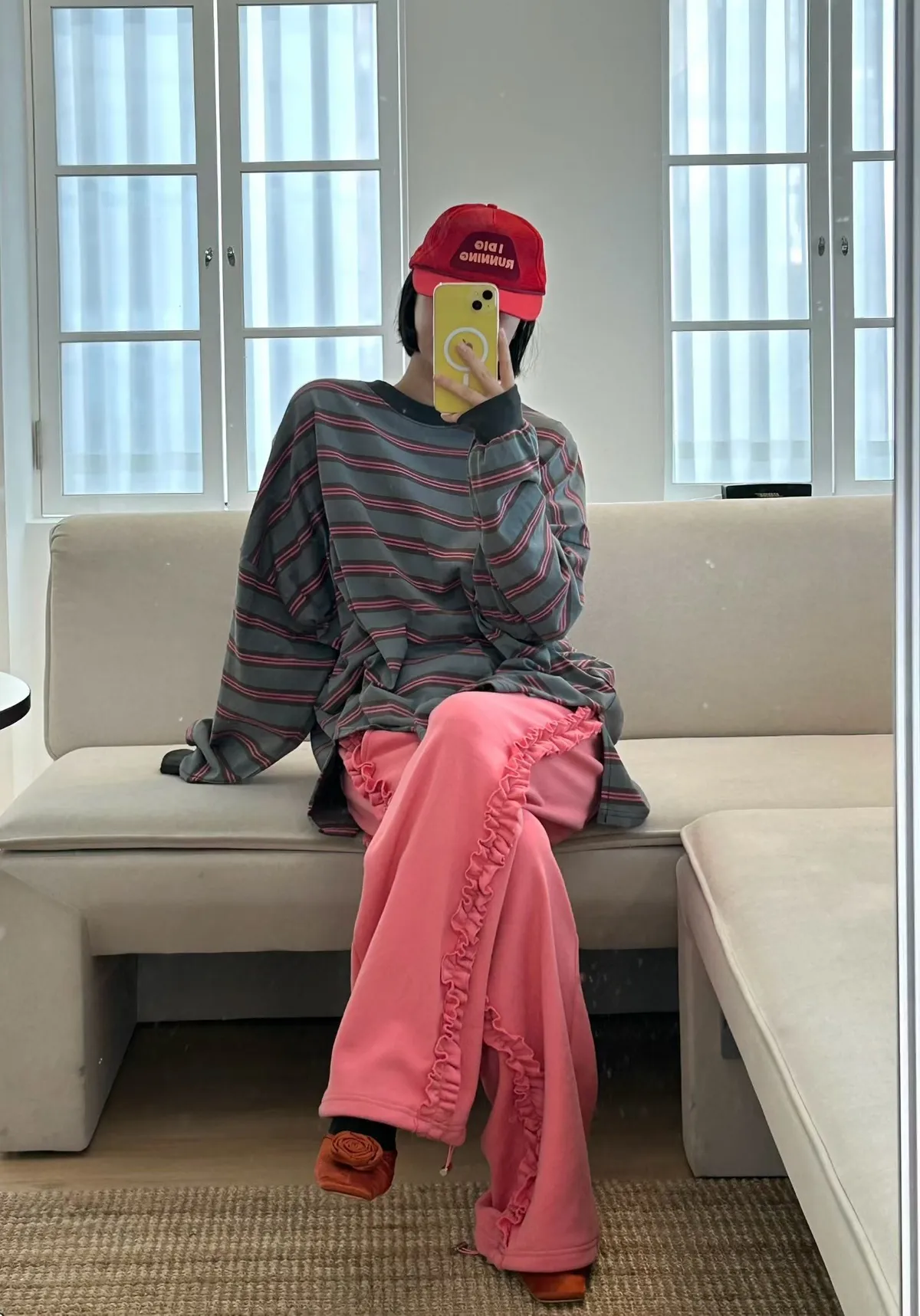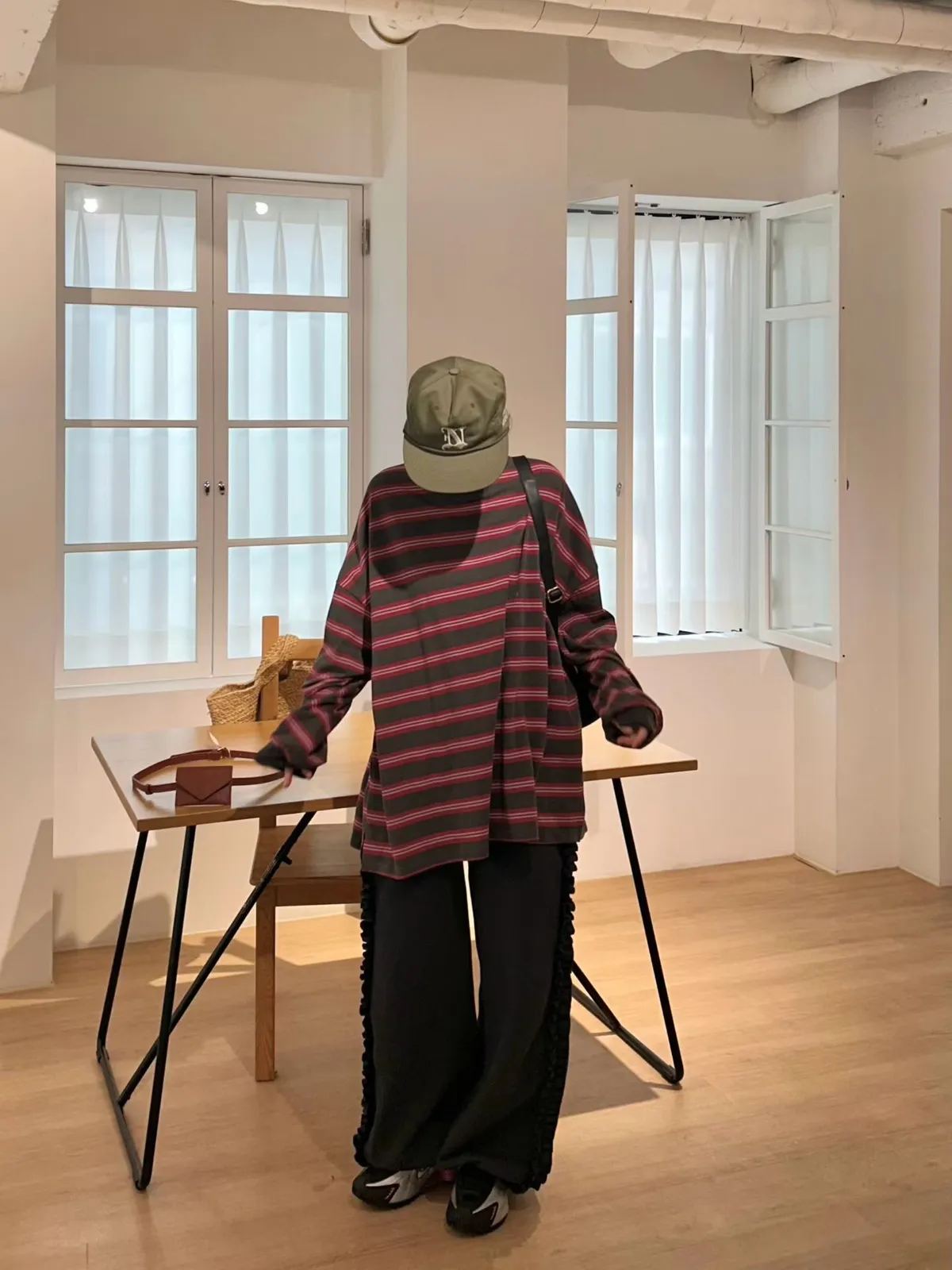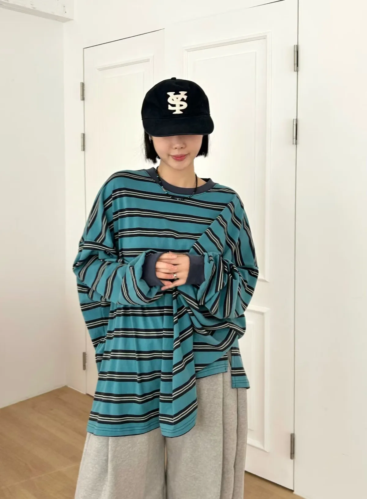 水洗橫條紋撞色上衣