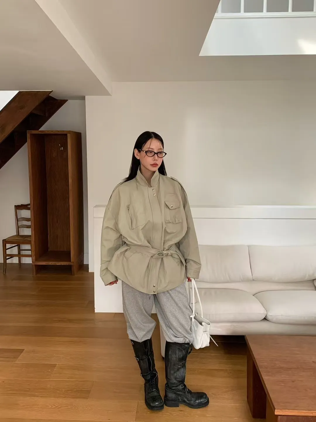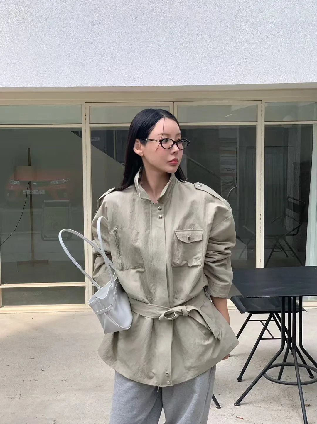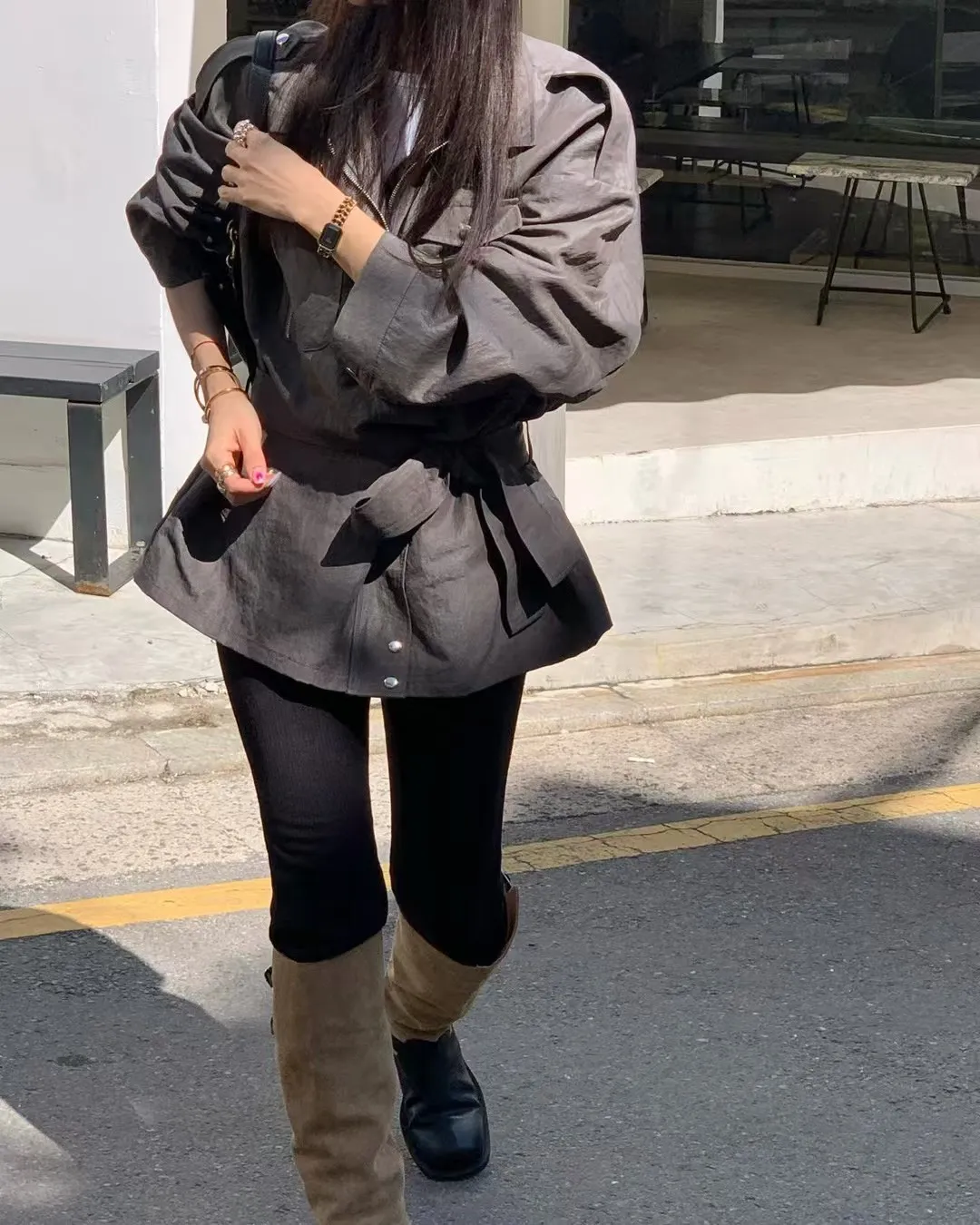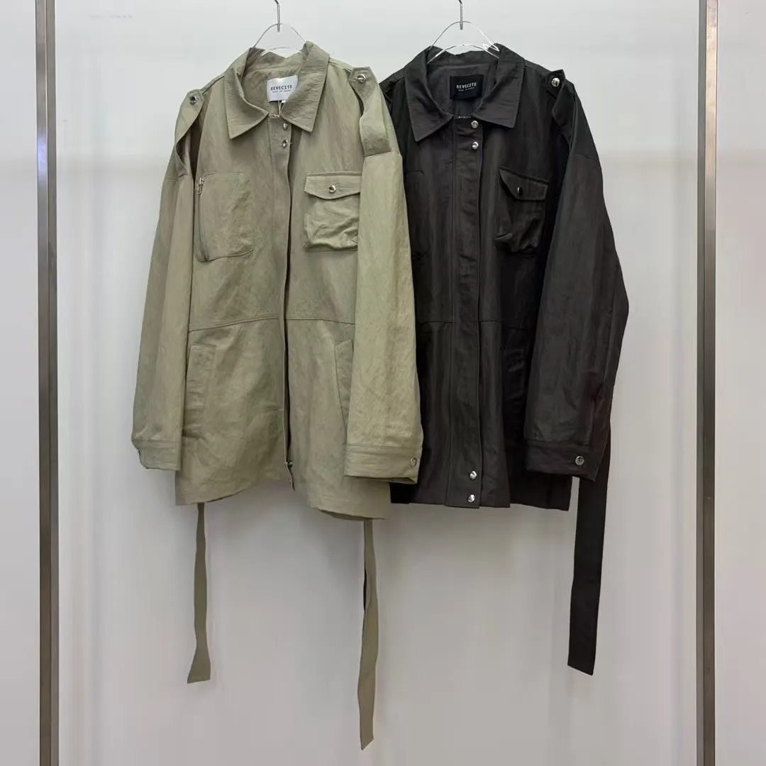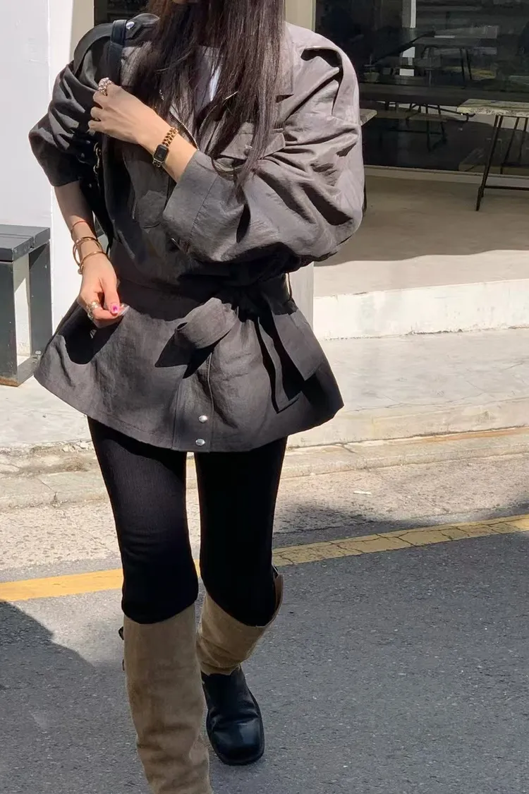 附腰帶風衣外套