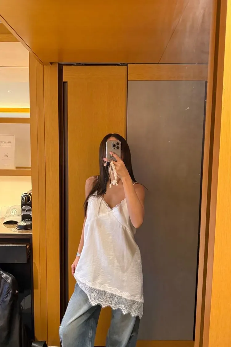 細肩拼接蕾絲背心
