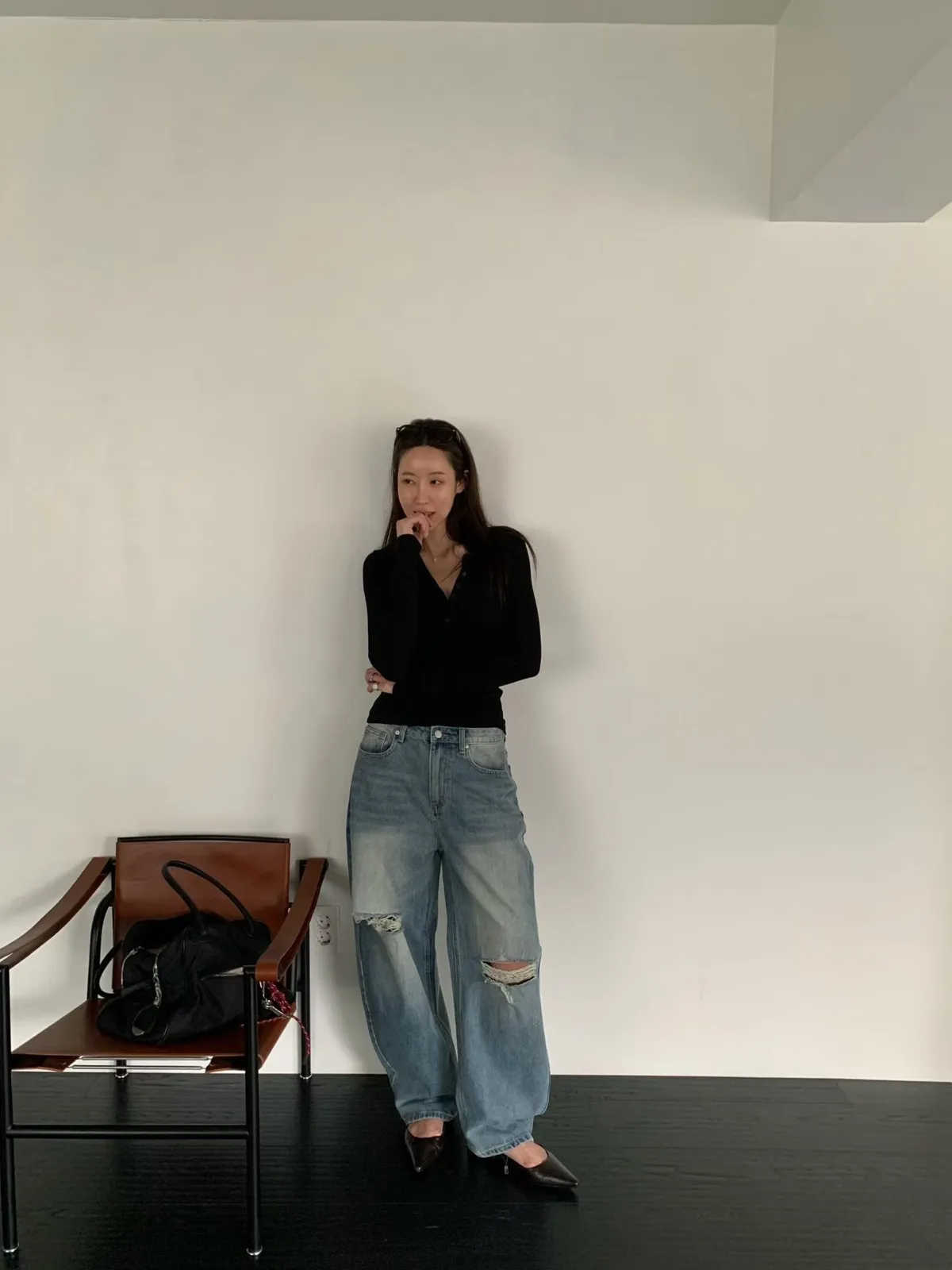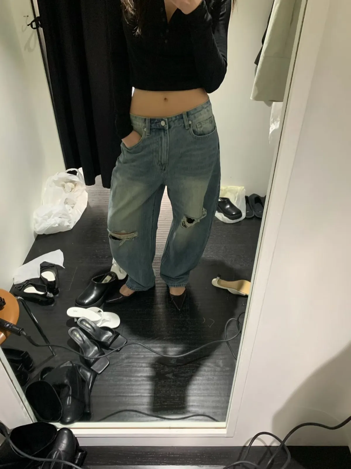 膝刷破牛仔褲