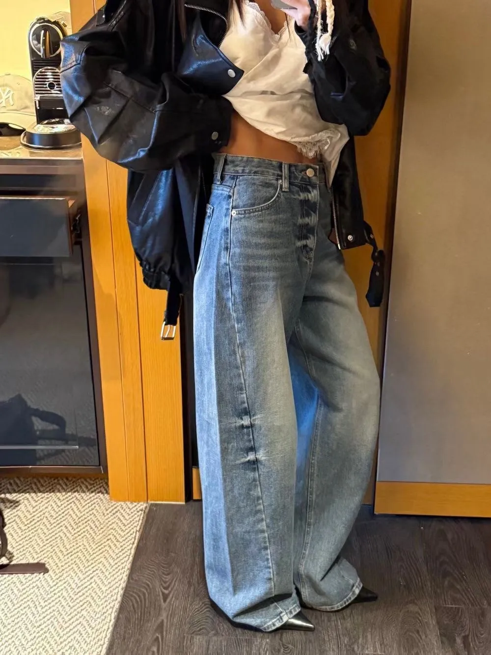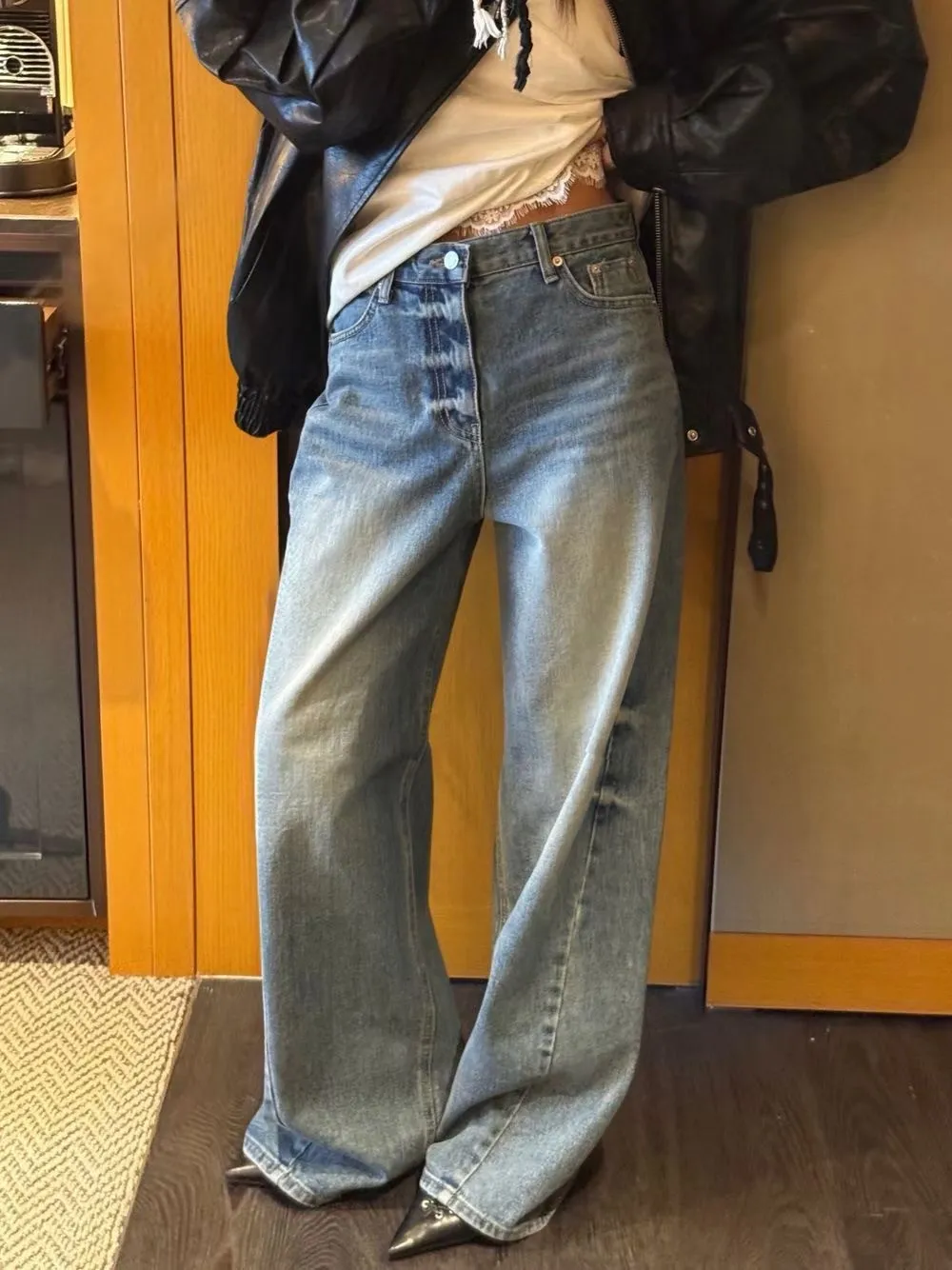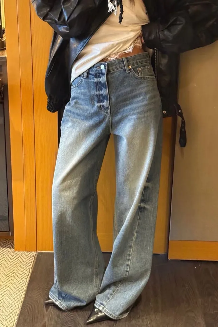 刷色牛仔寬褲
