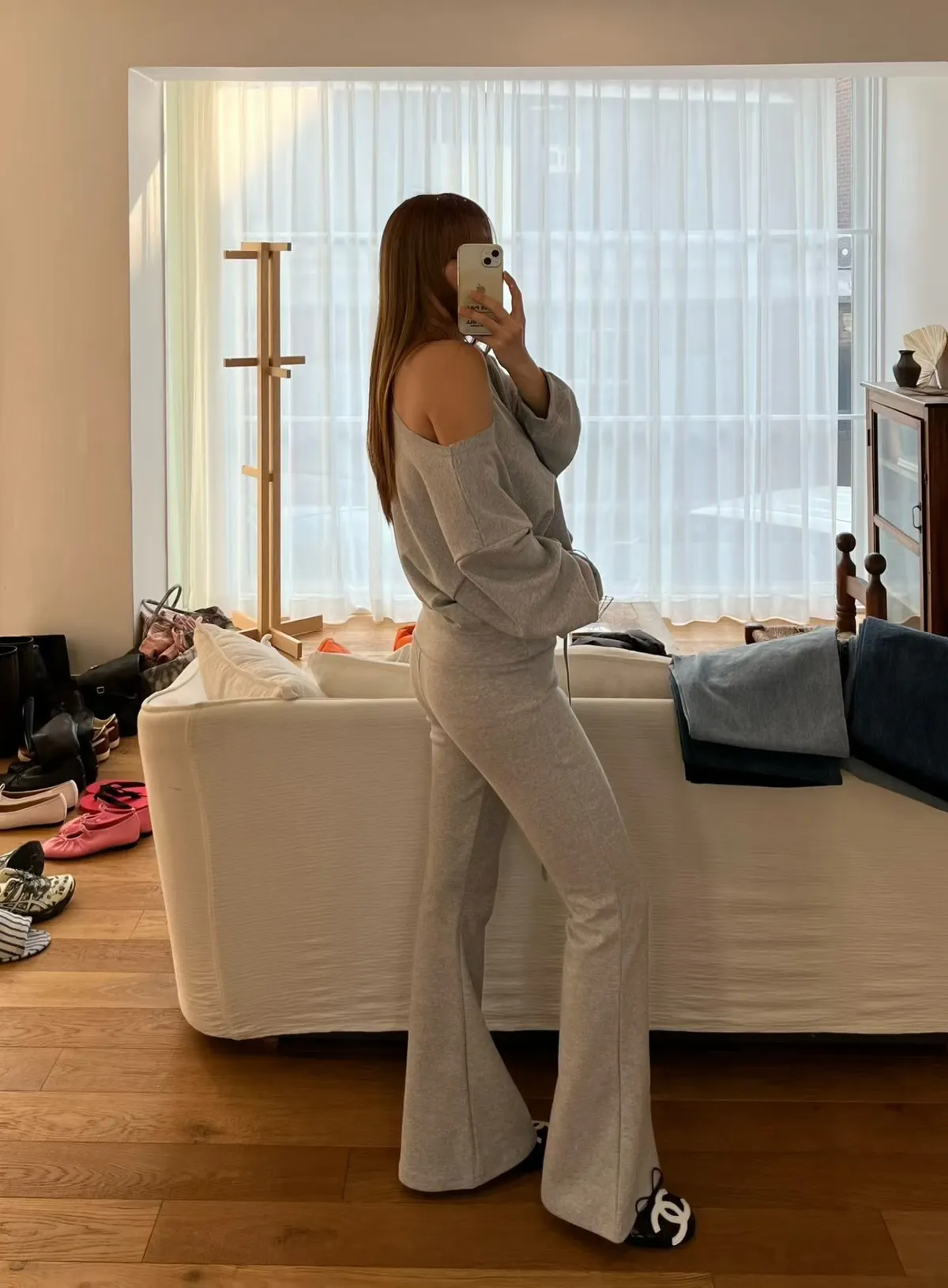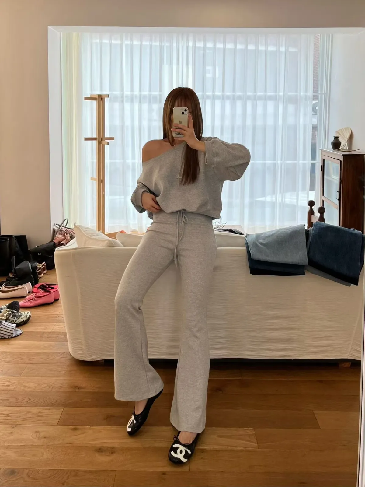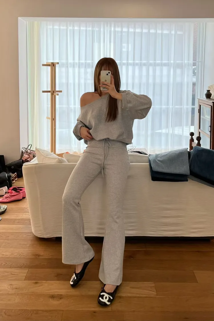 斜肩上衣套裝