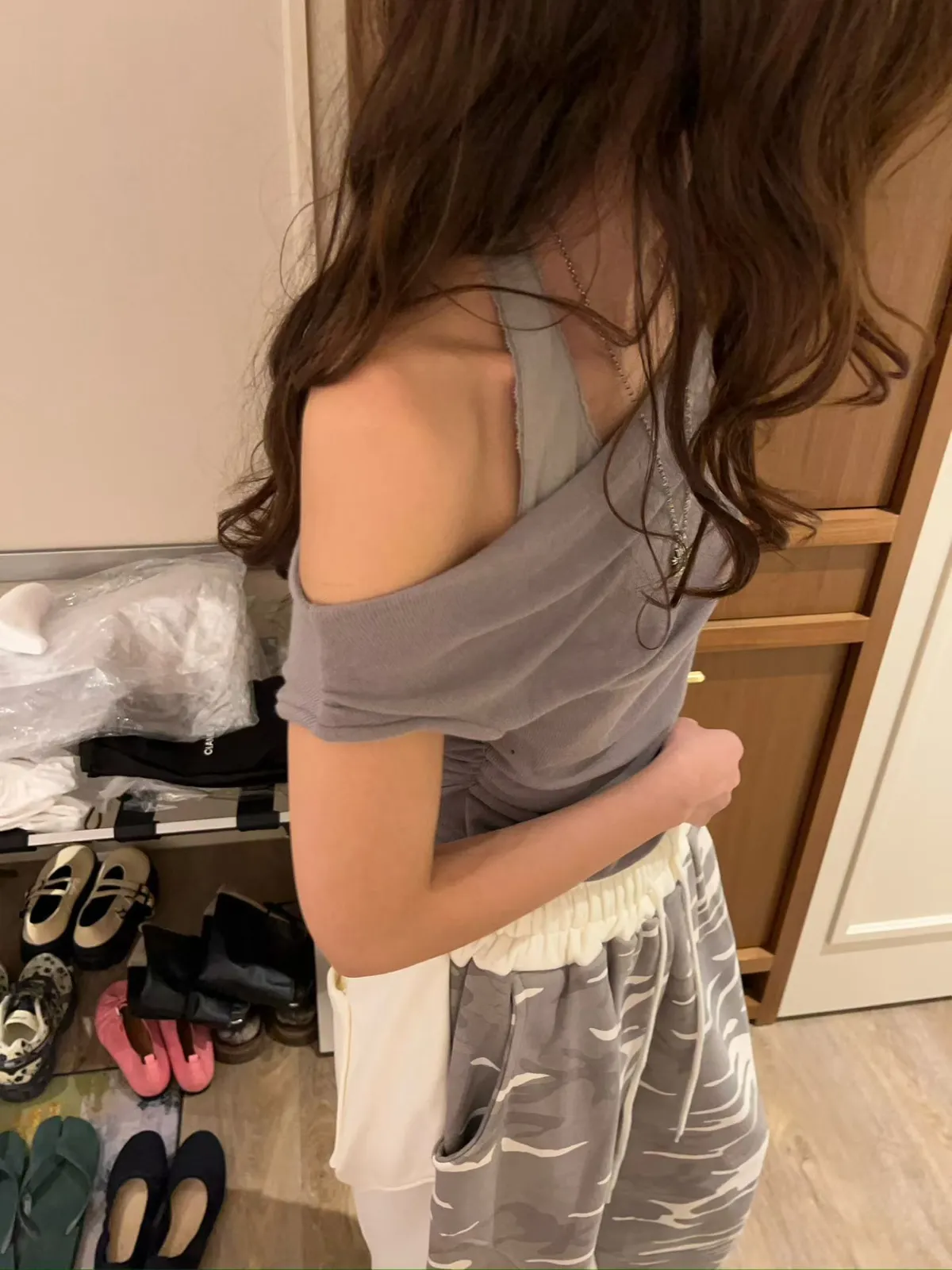 側抓皺假兩件上衣