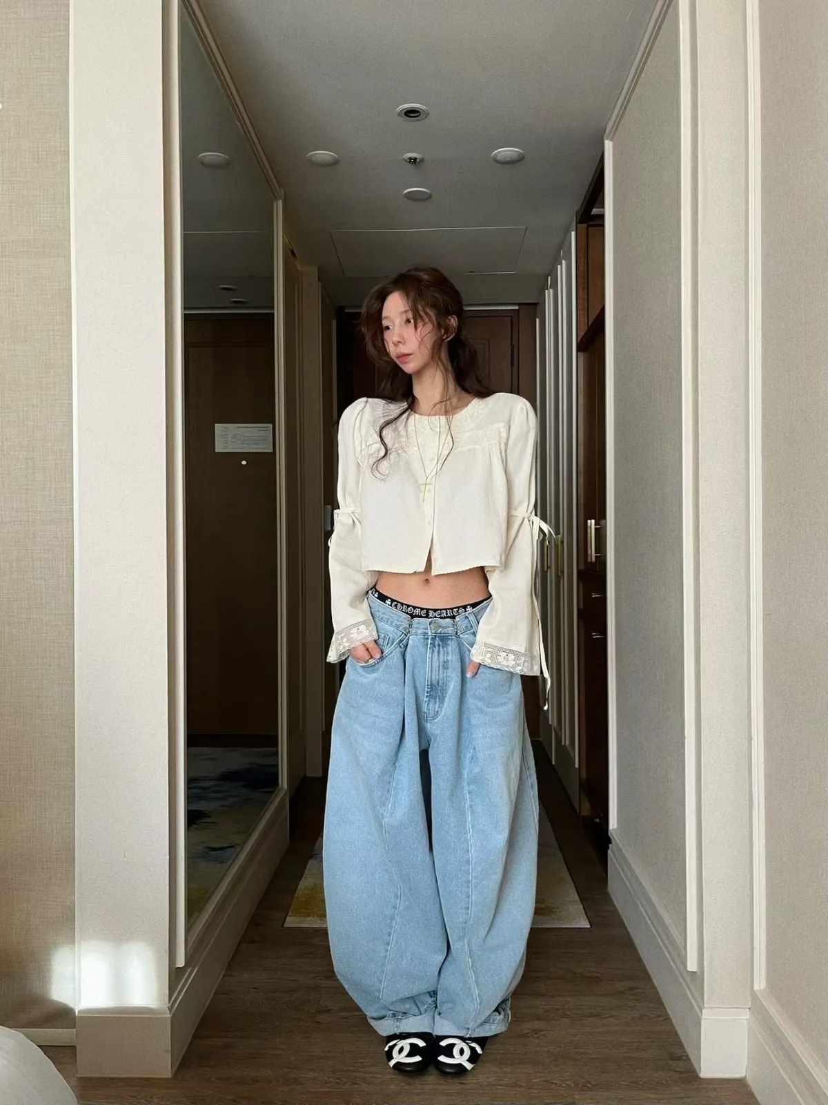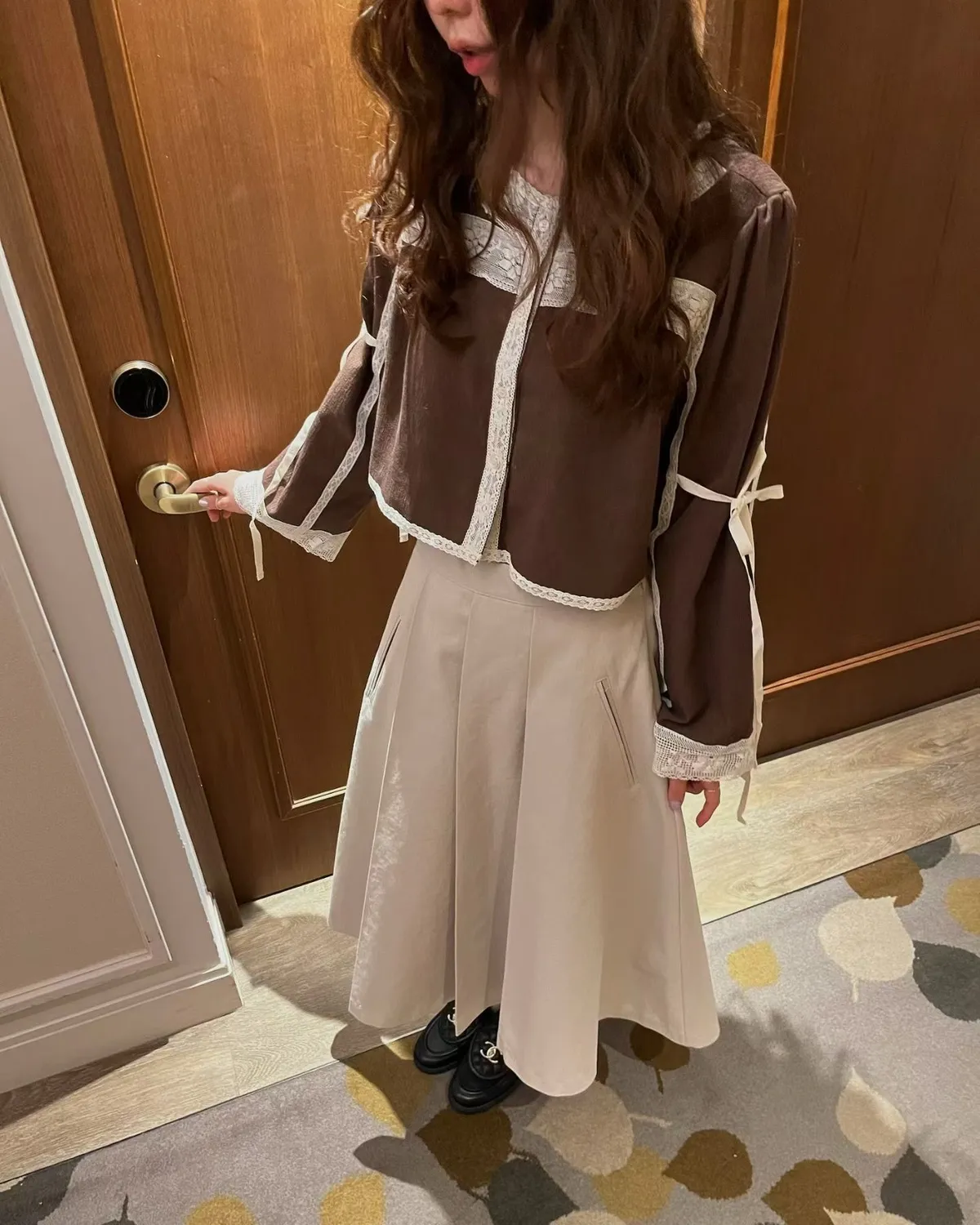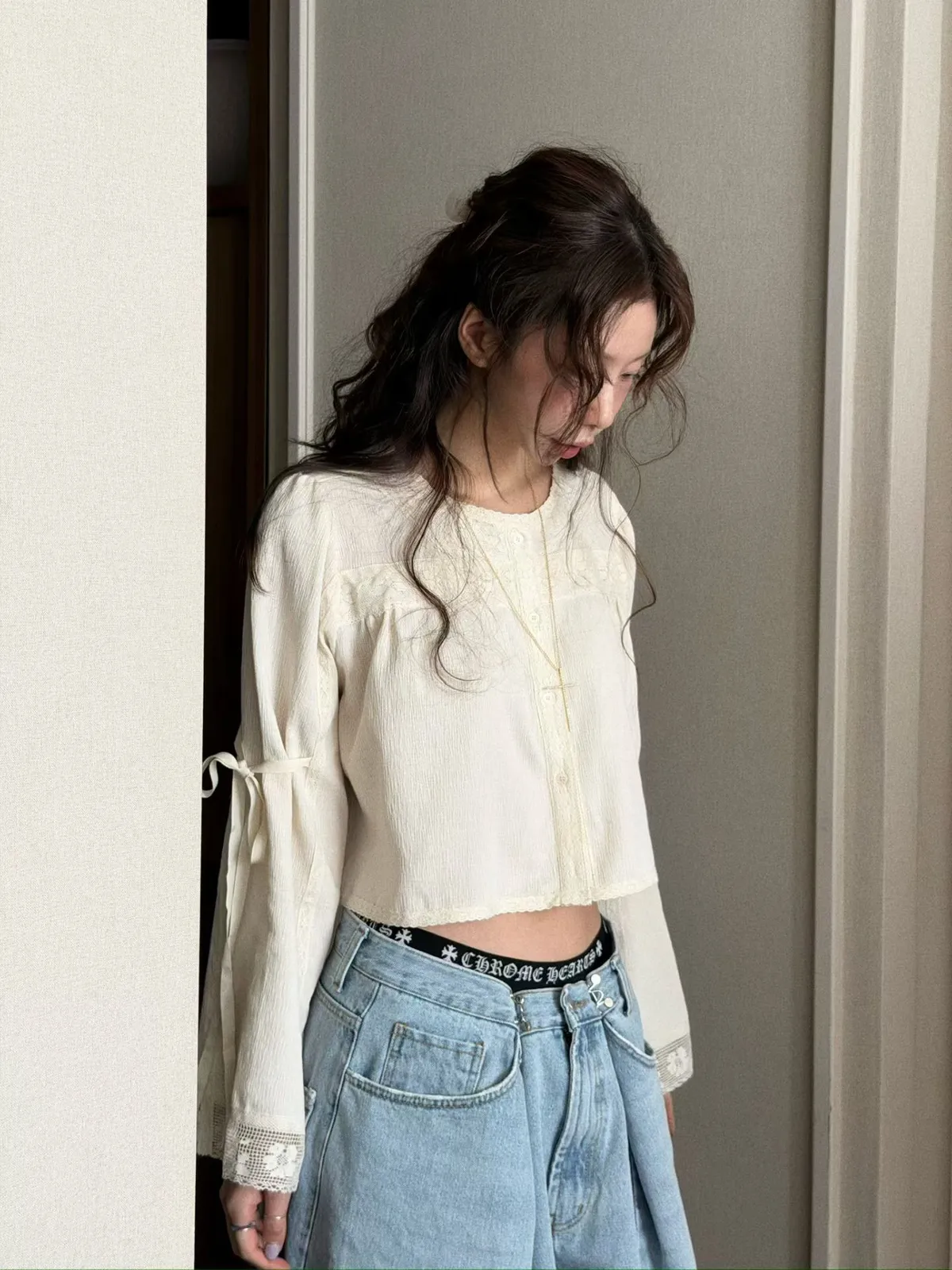 拼接蕾絲手袖綁帶上衣