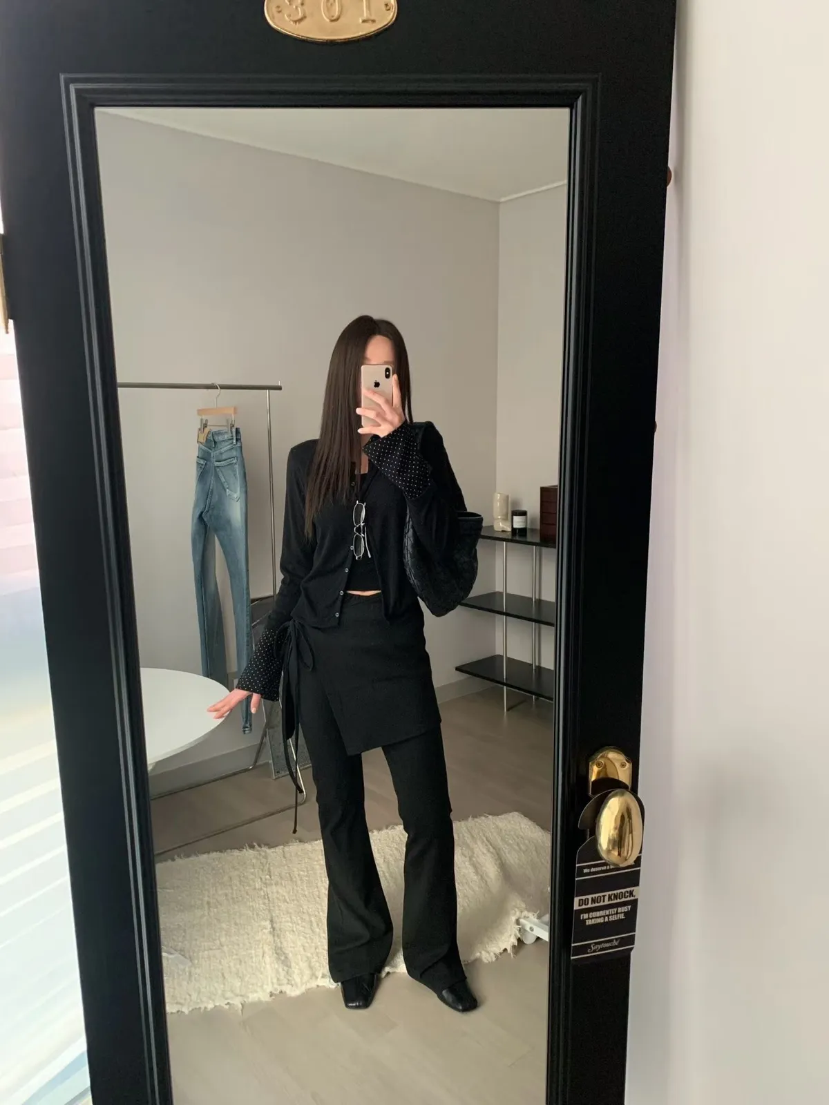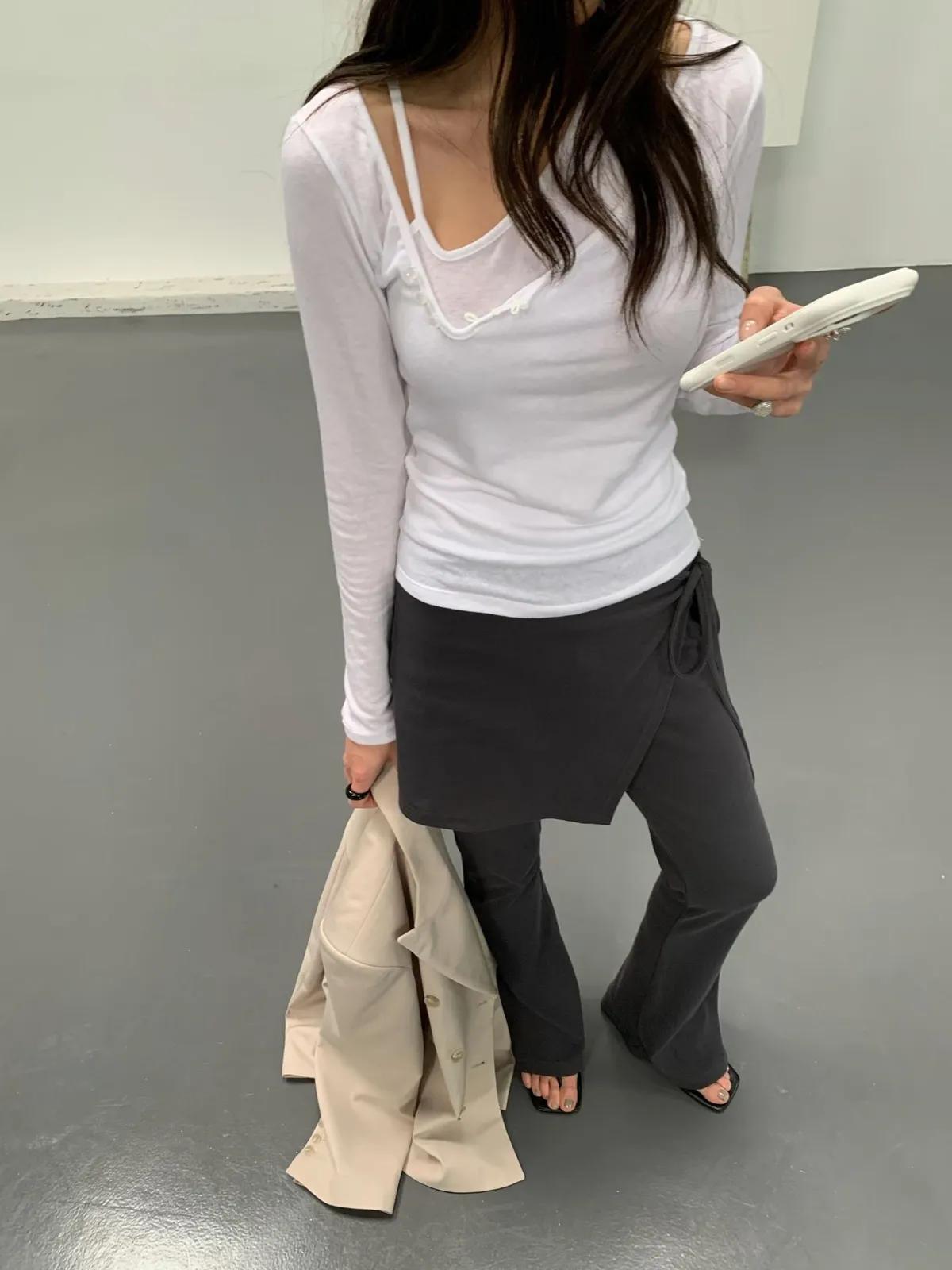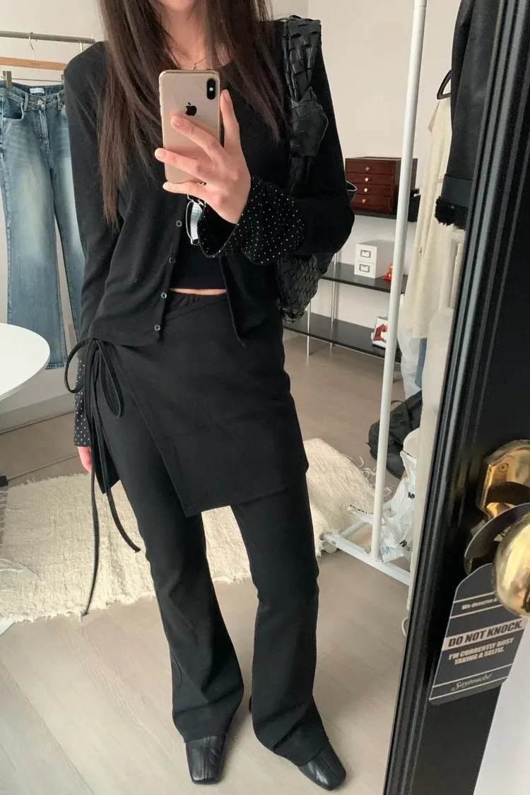 鬆緊綁帶片裙長褲