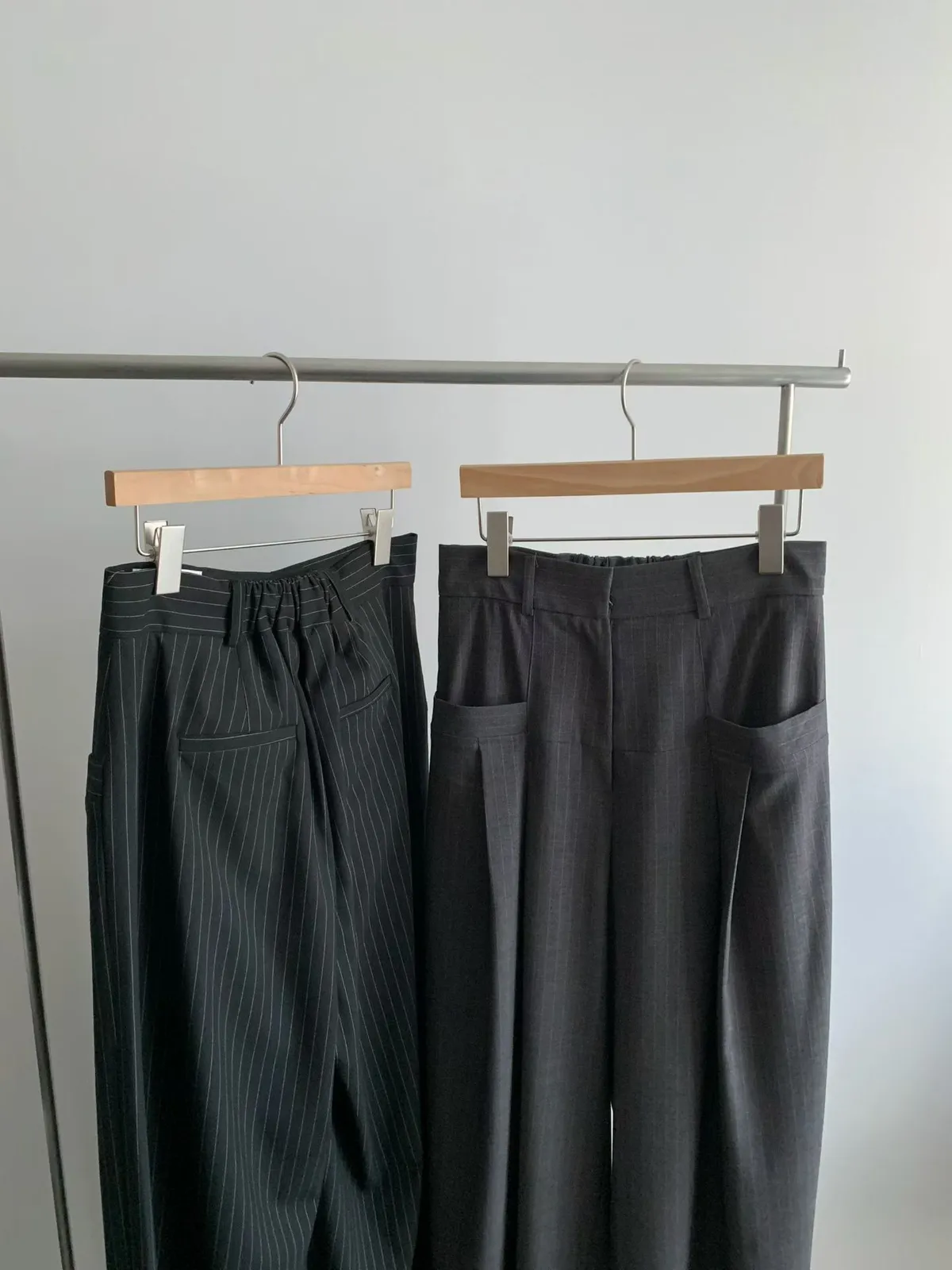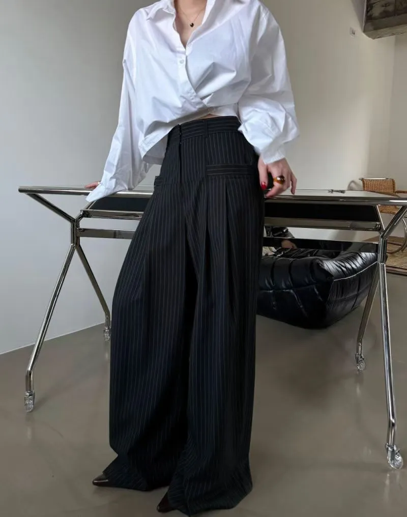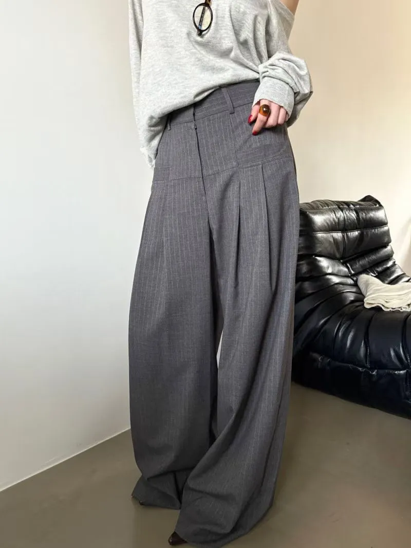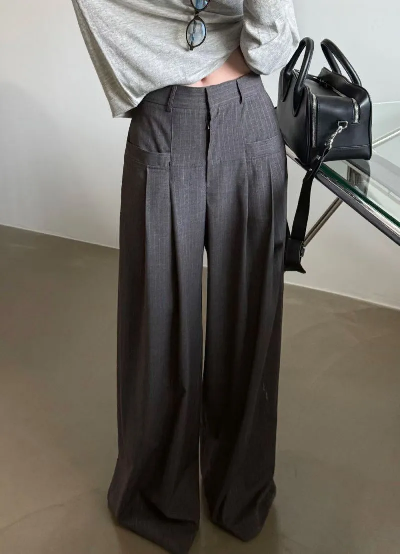 後鬆緊直紋西裝長褲