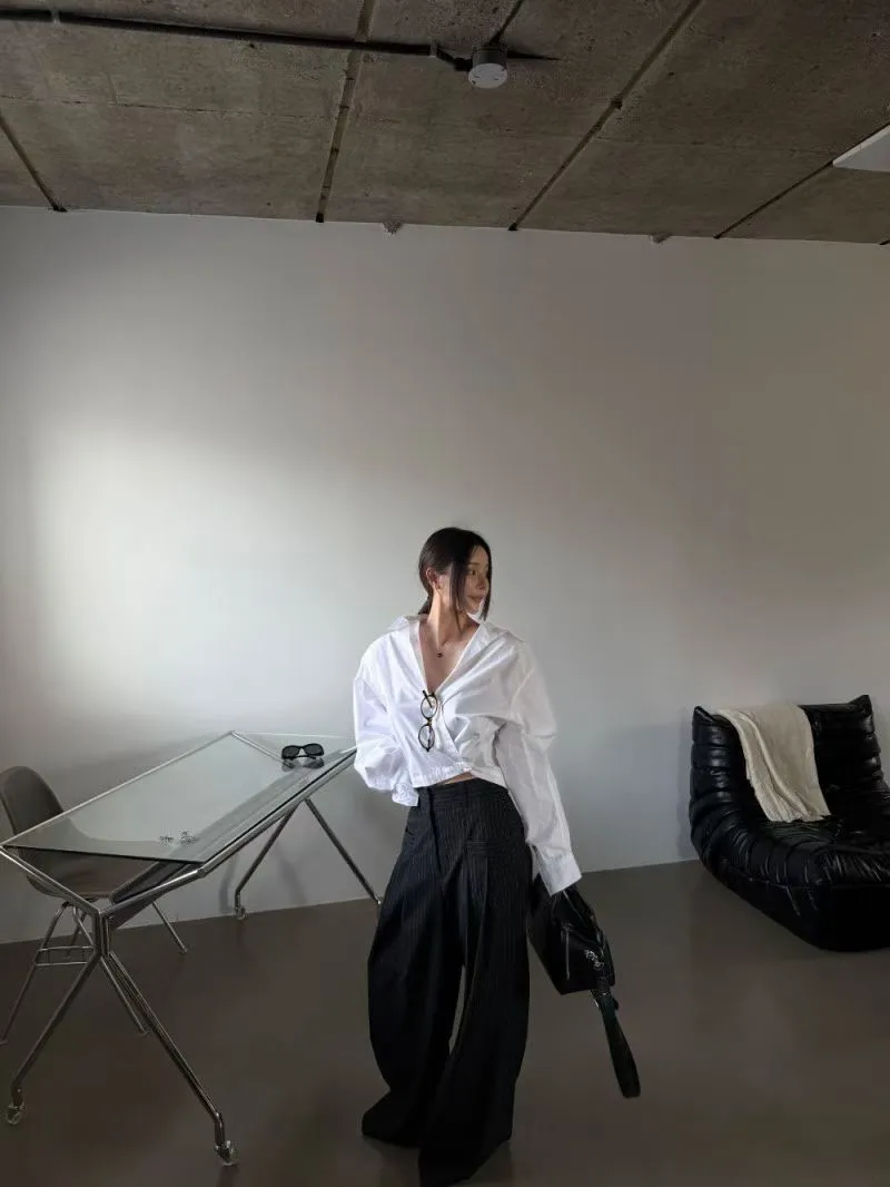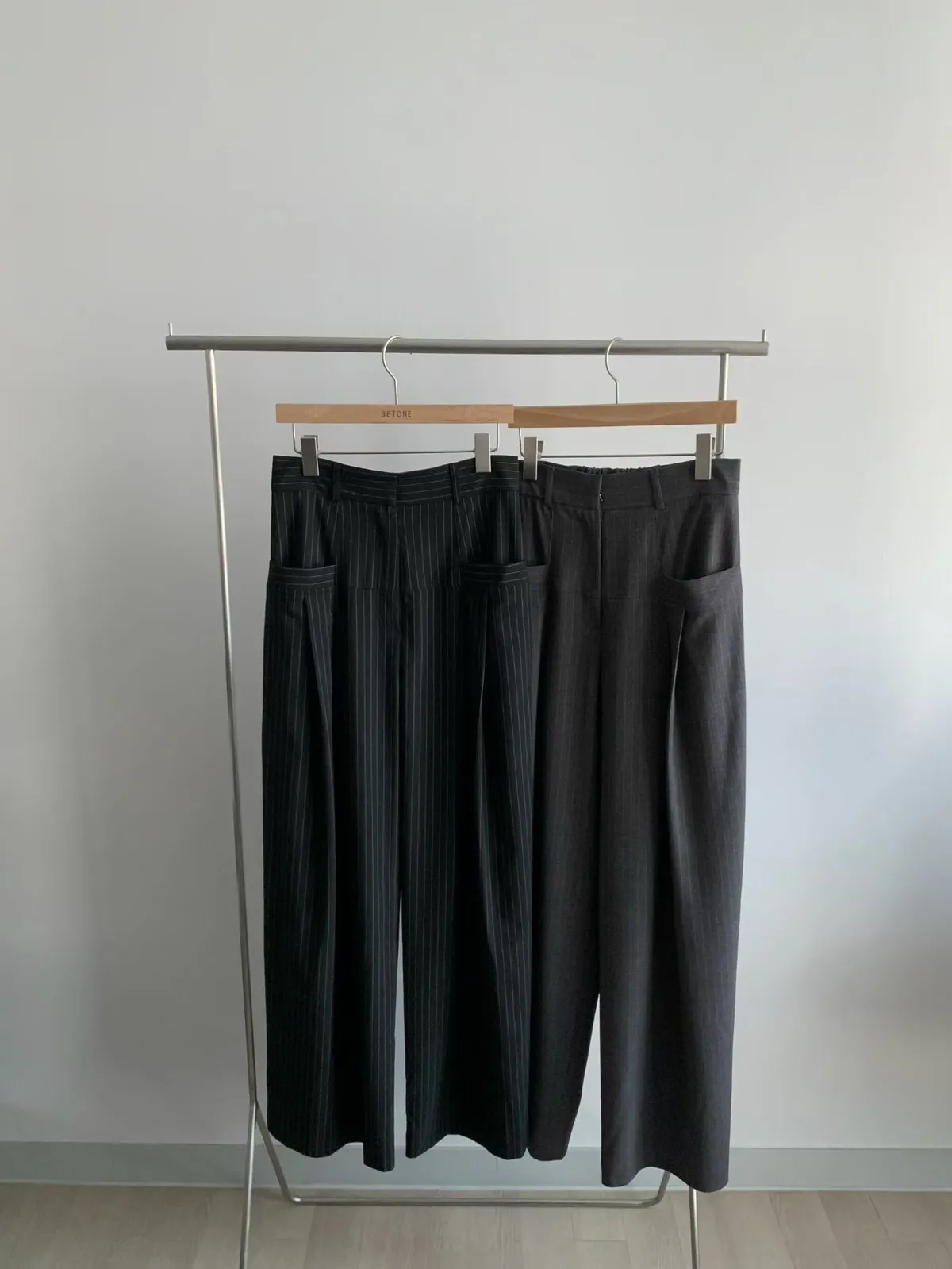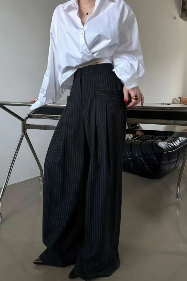 後鬆緊直紋西裝長褲