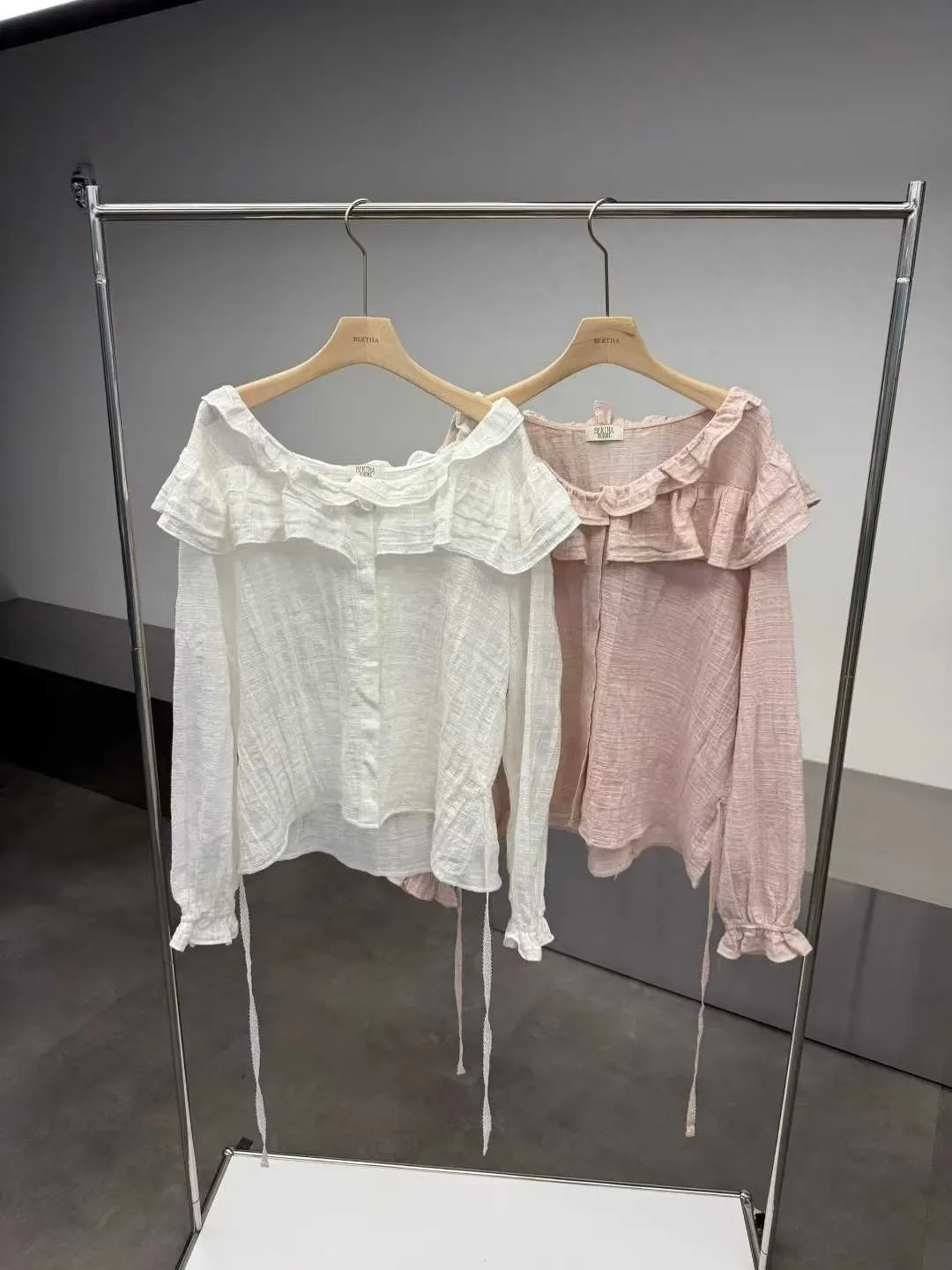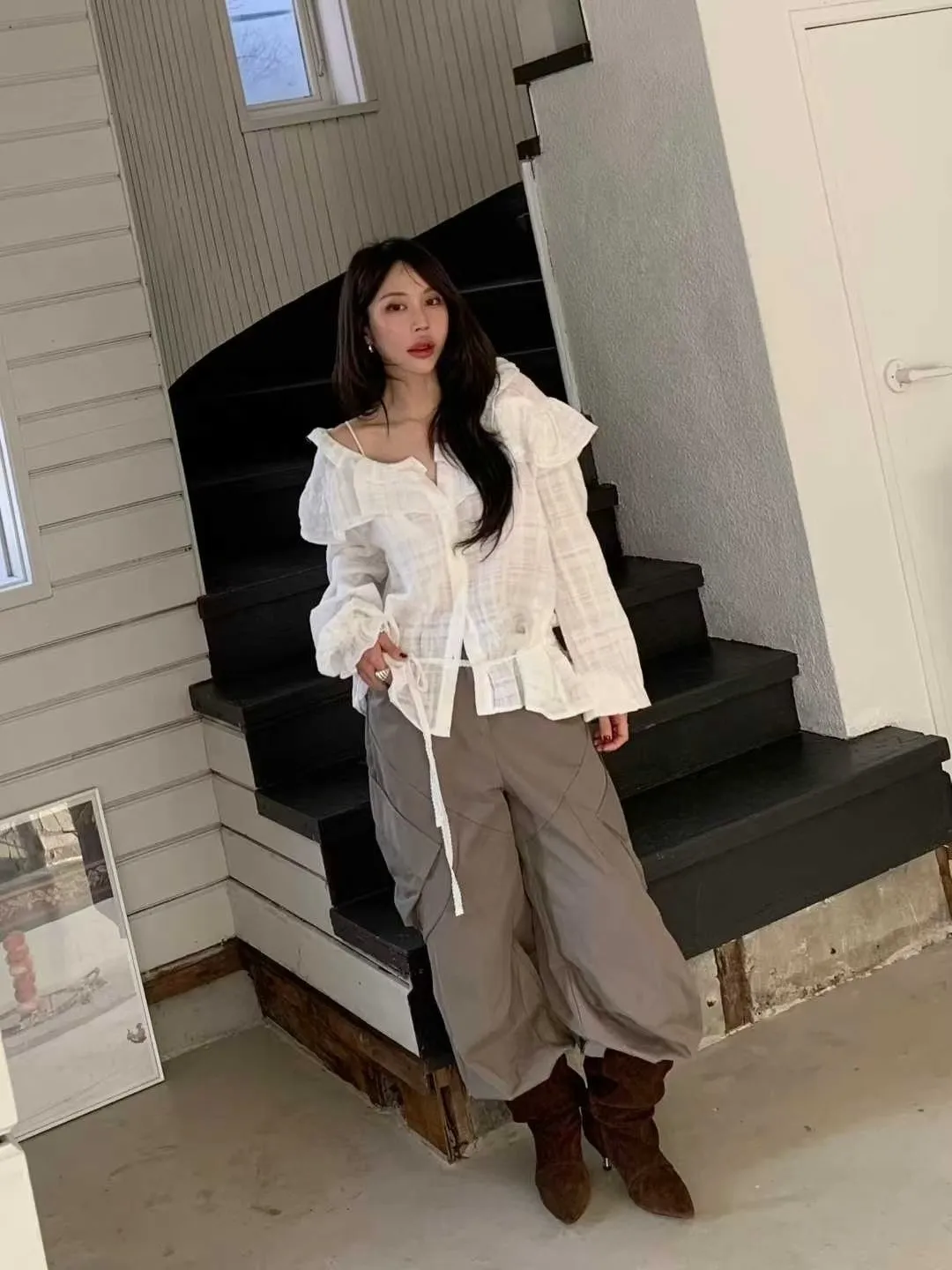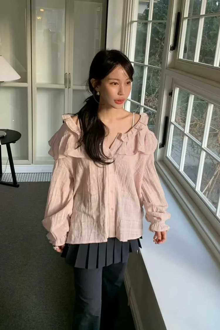 荷葉領下綁帶襯衫