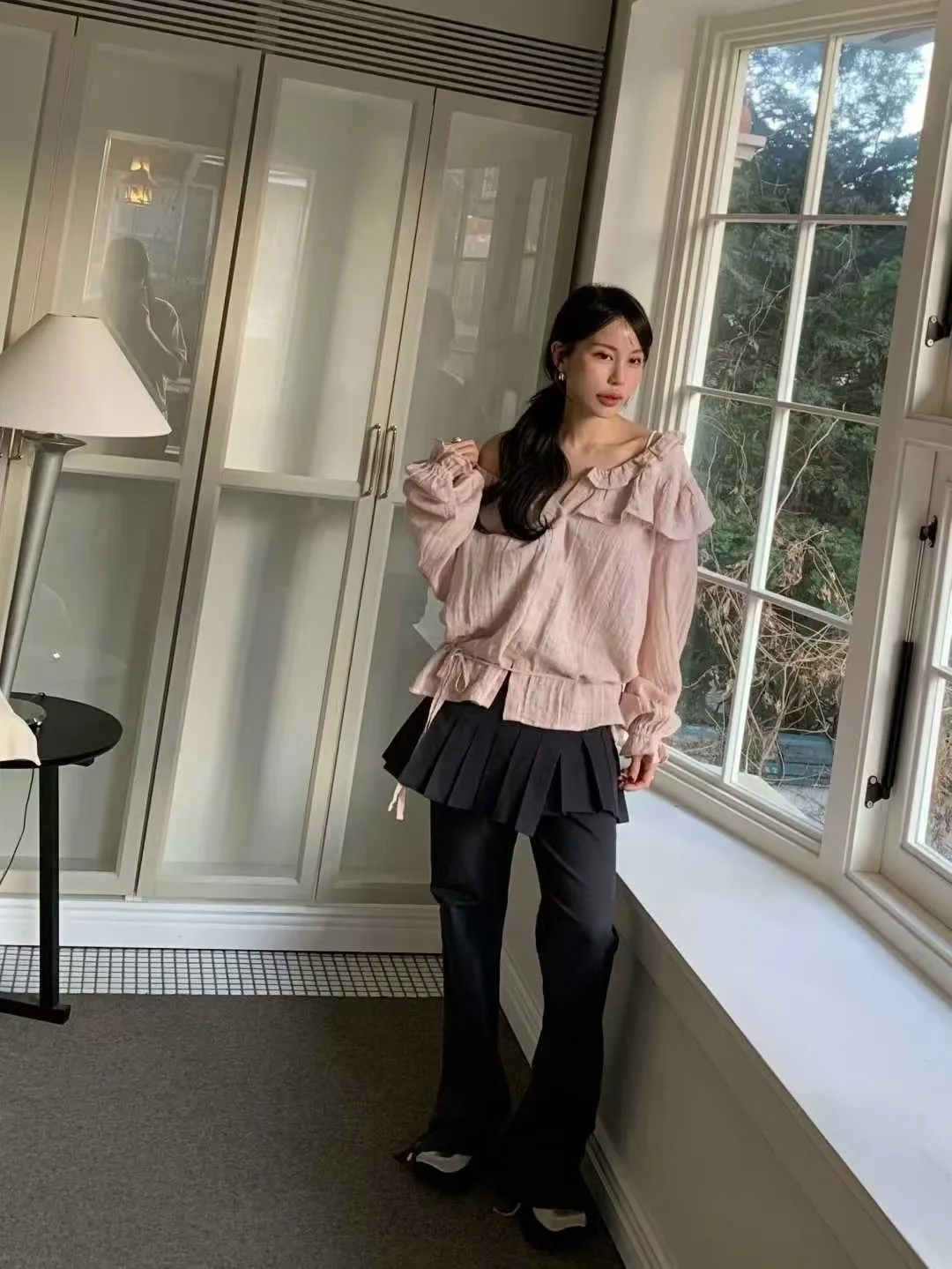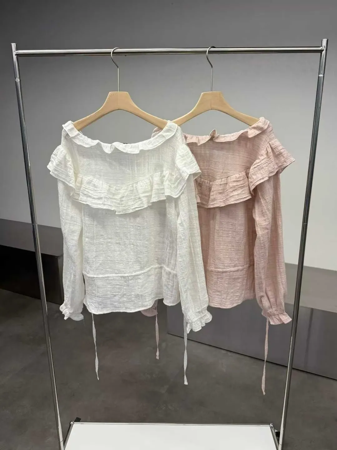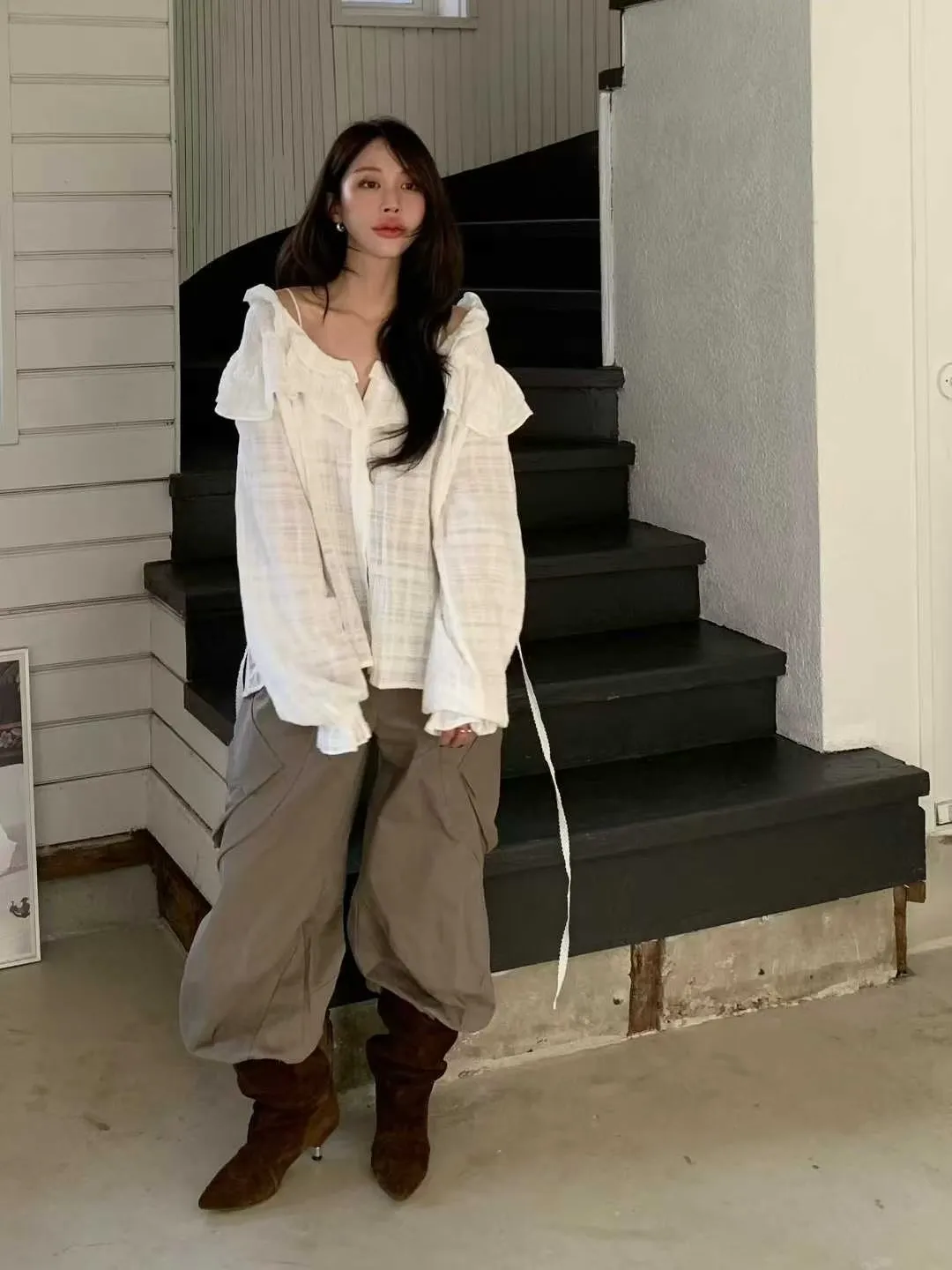 荷葉領下綁帶襯衫