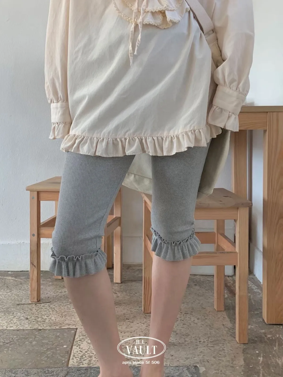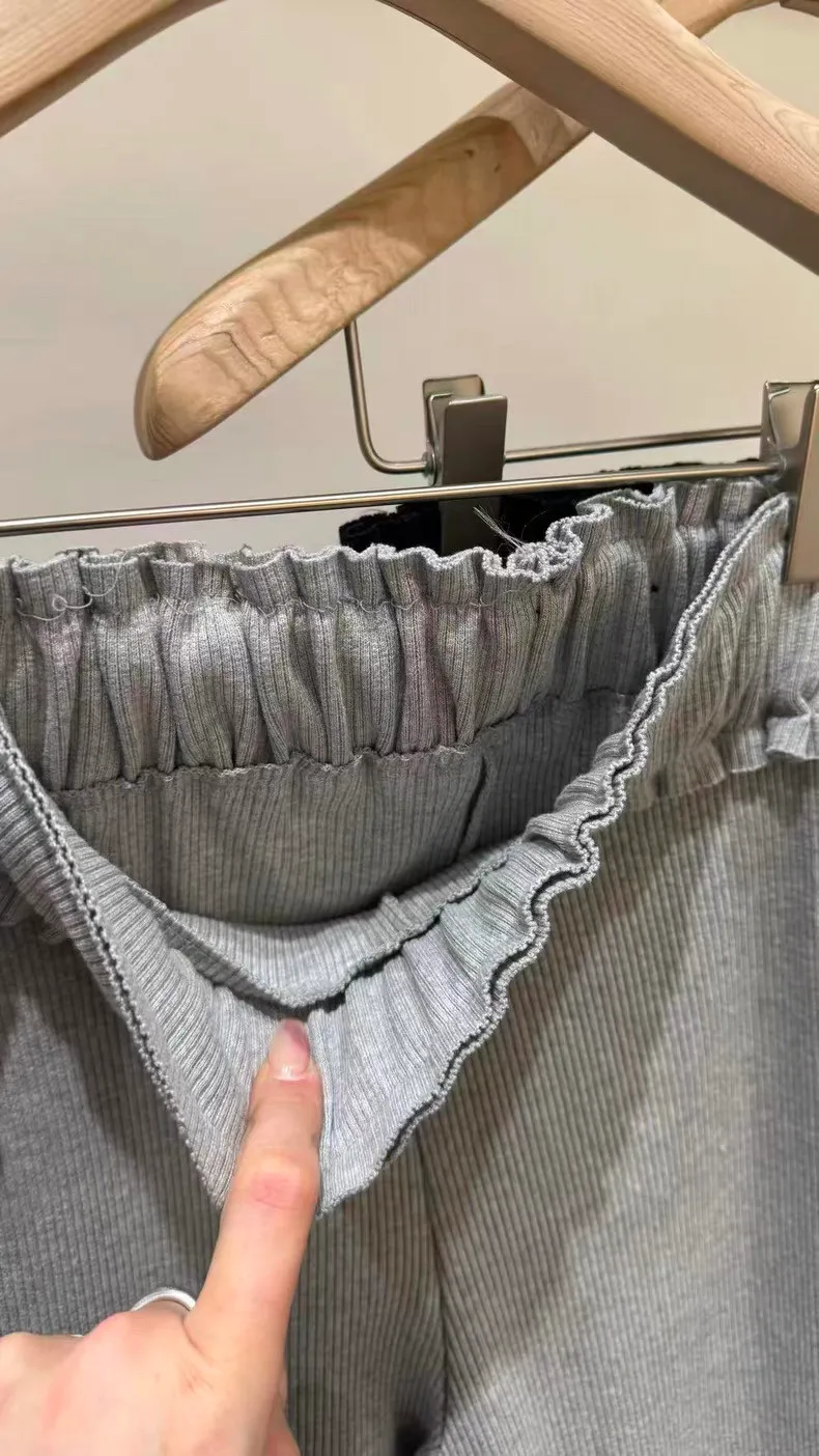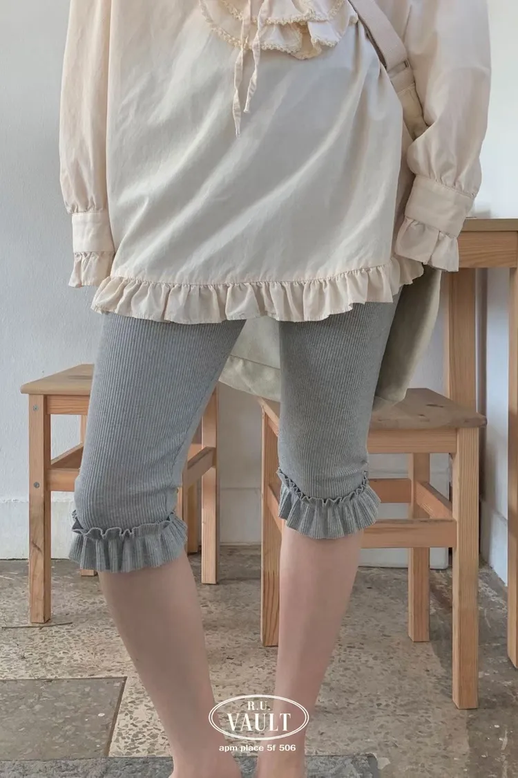 鬆緊摺邊羅紋5分褲