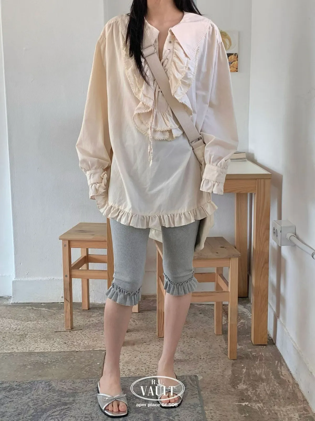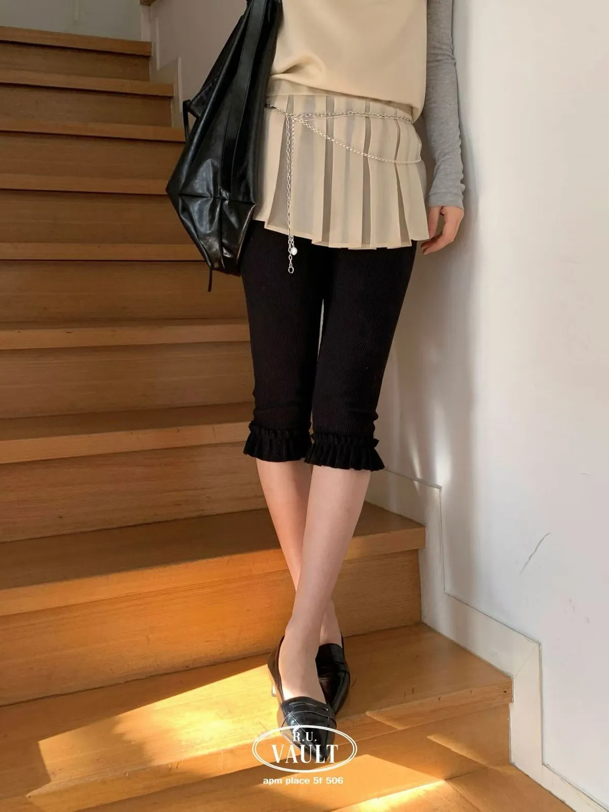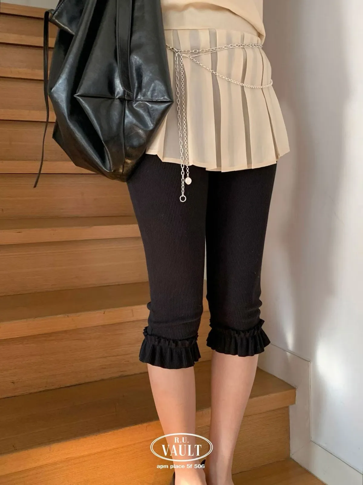 鬆緊摺邊羅紋5分褲