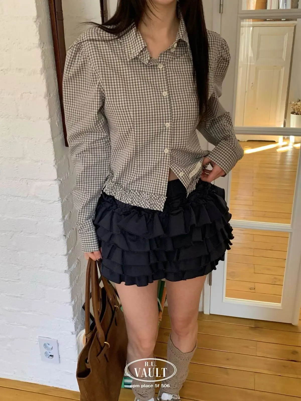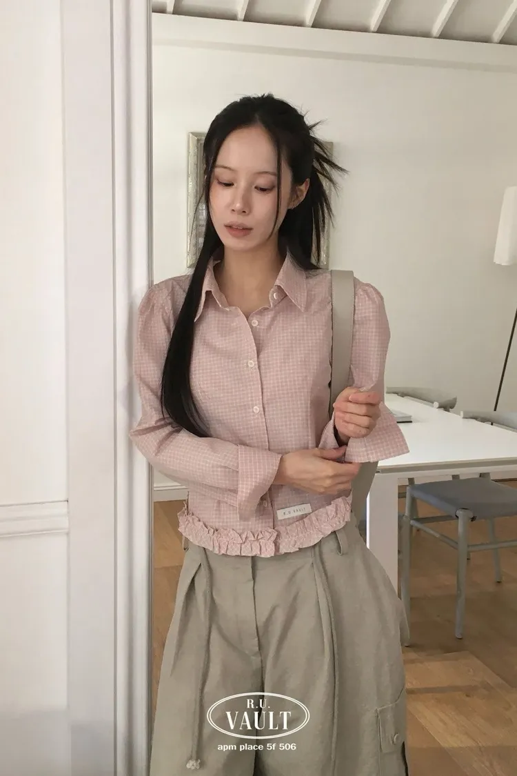 下花邊微短版襯衫